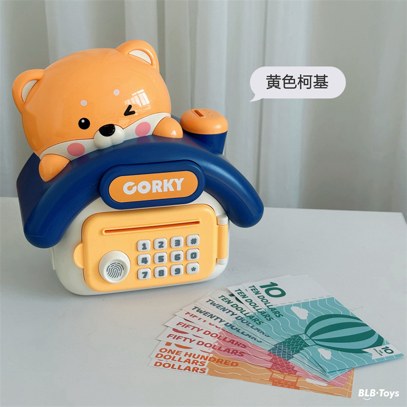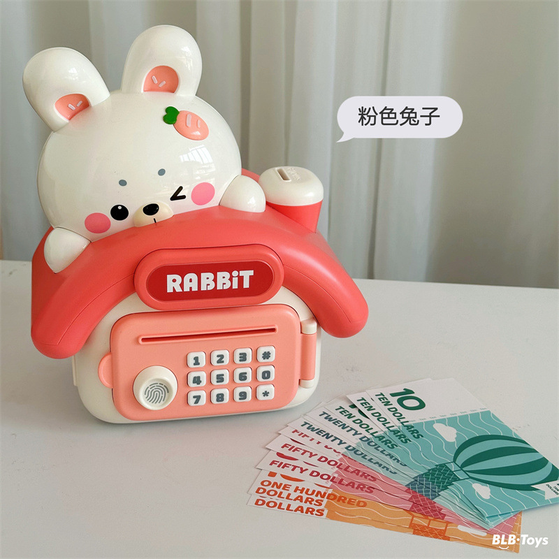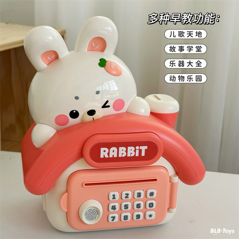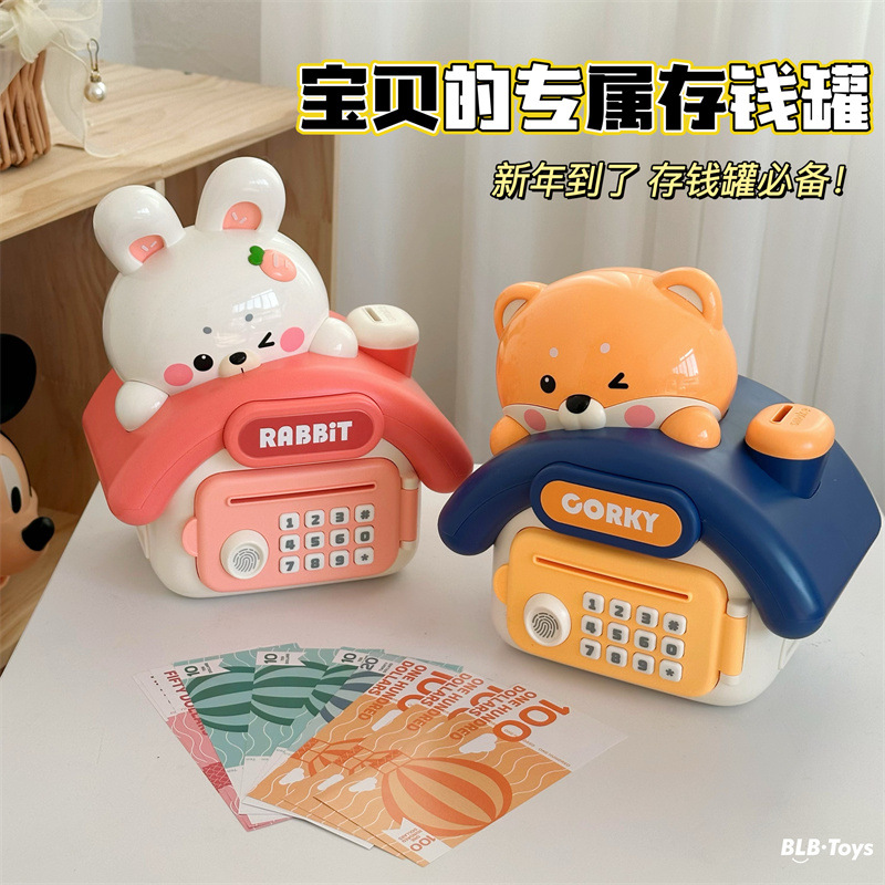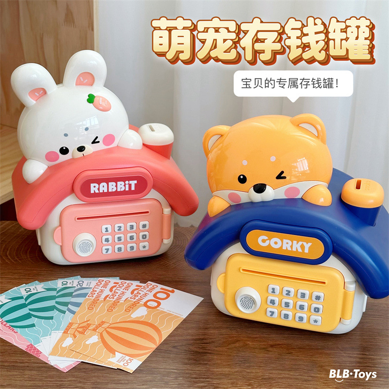 어린이 돼지 저금통 귀여운 토끼 코기 돼지 저금통 장난감 자동 돈 롤 지문 잠금 해제 이야기 음악 기관 선물스토어 가기