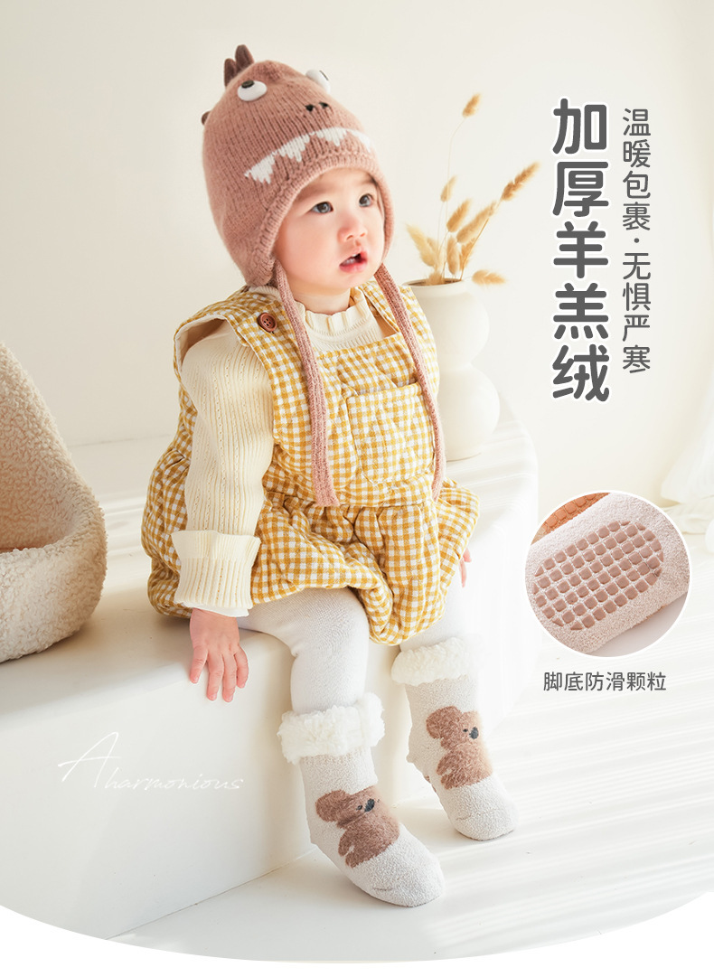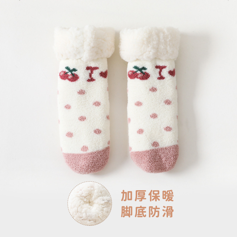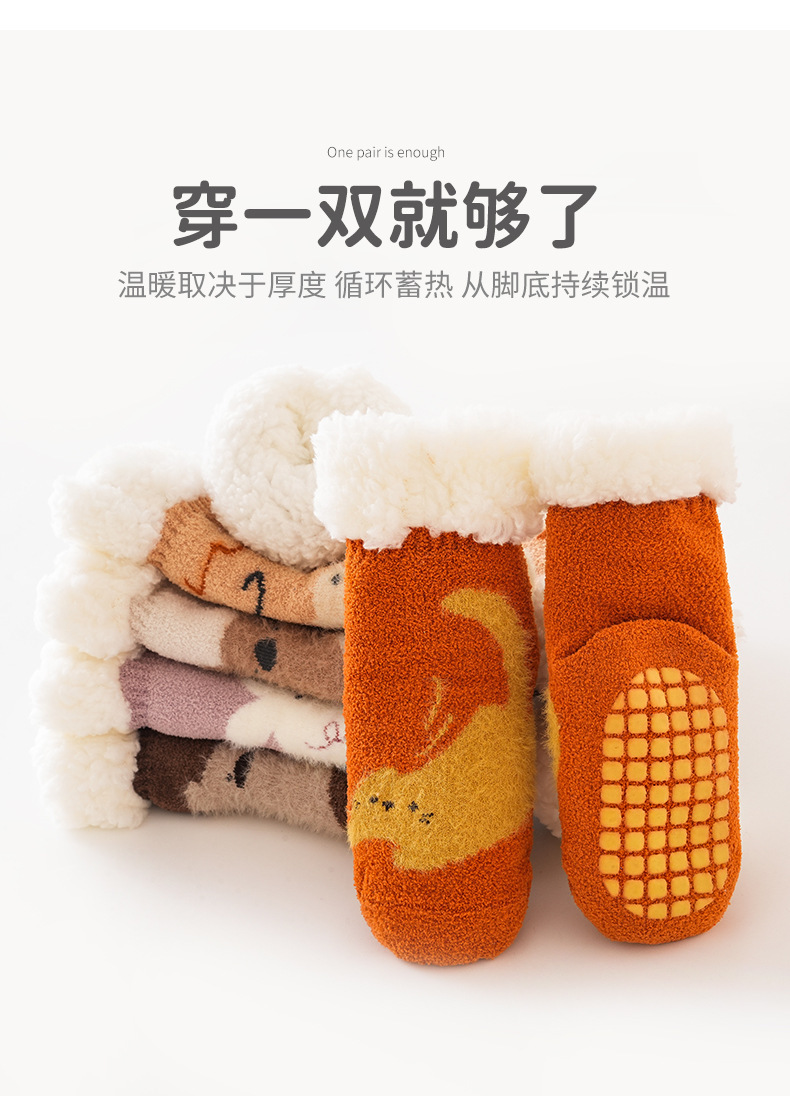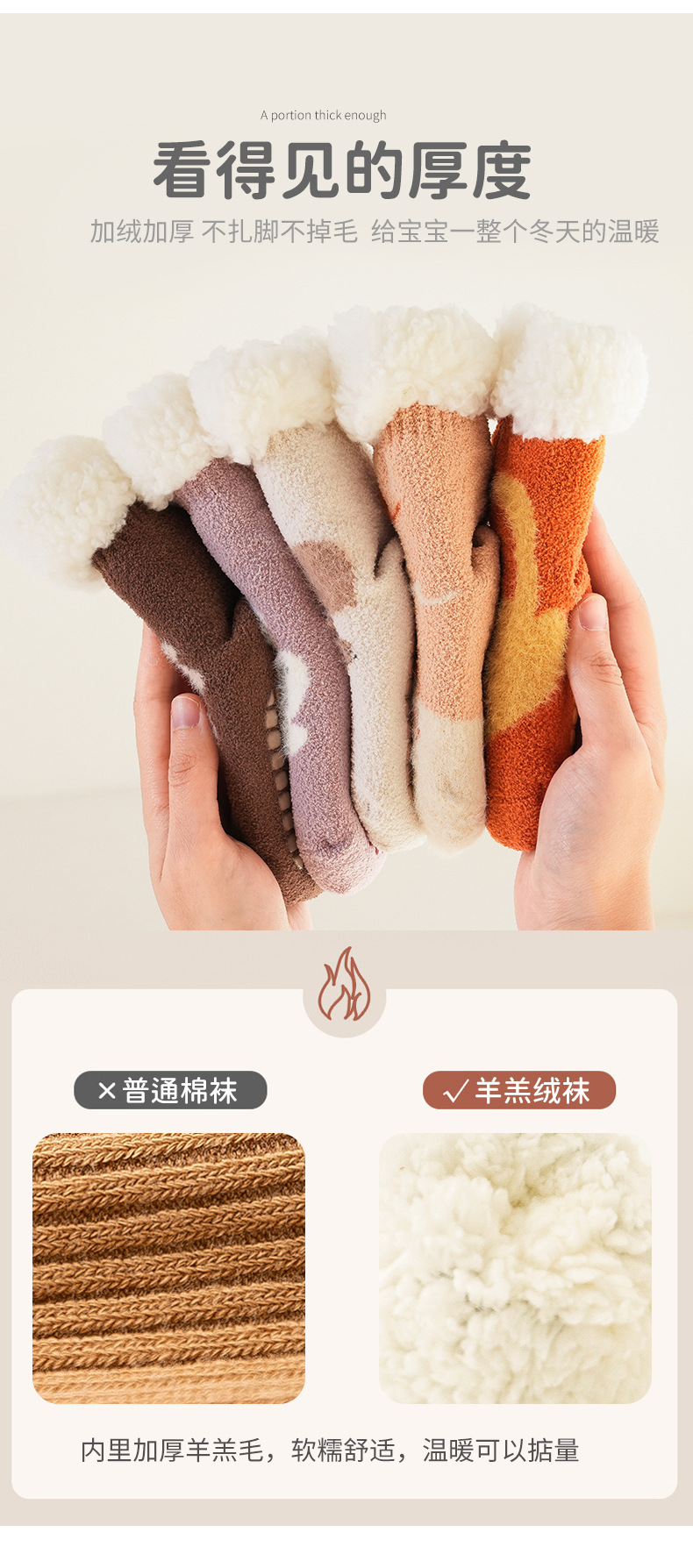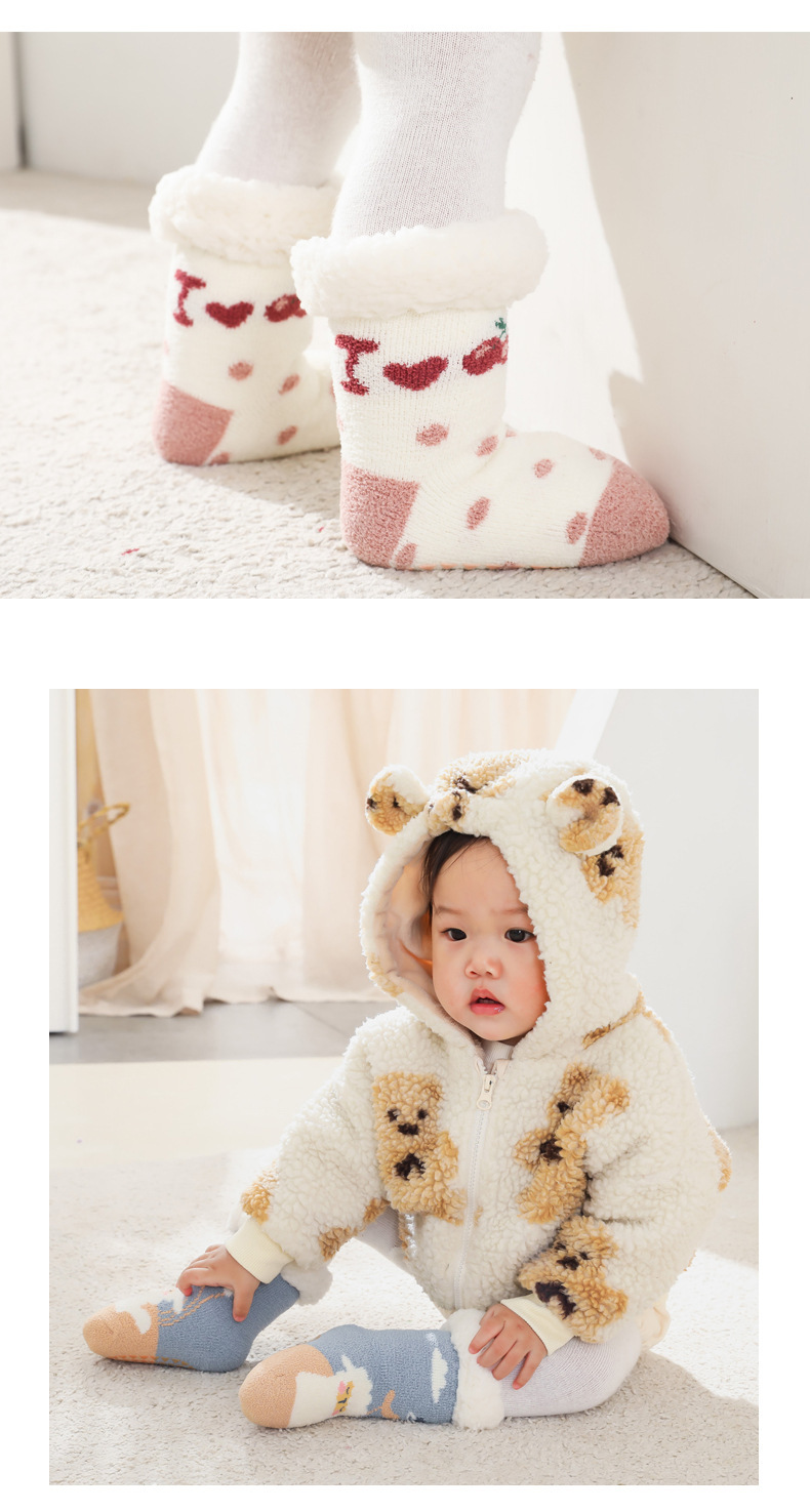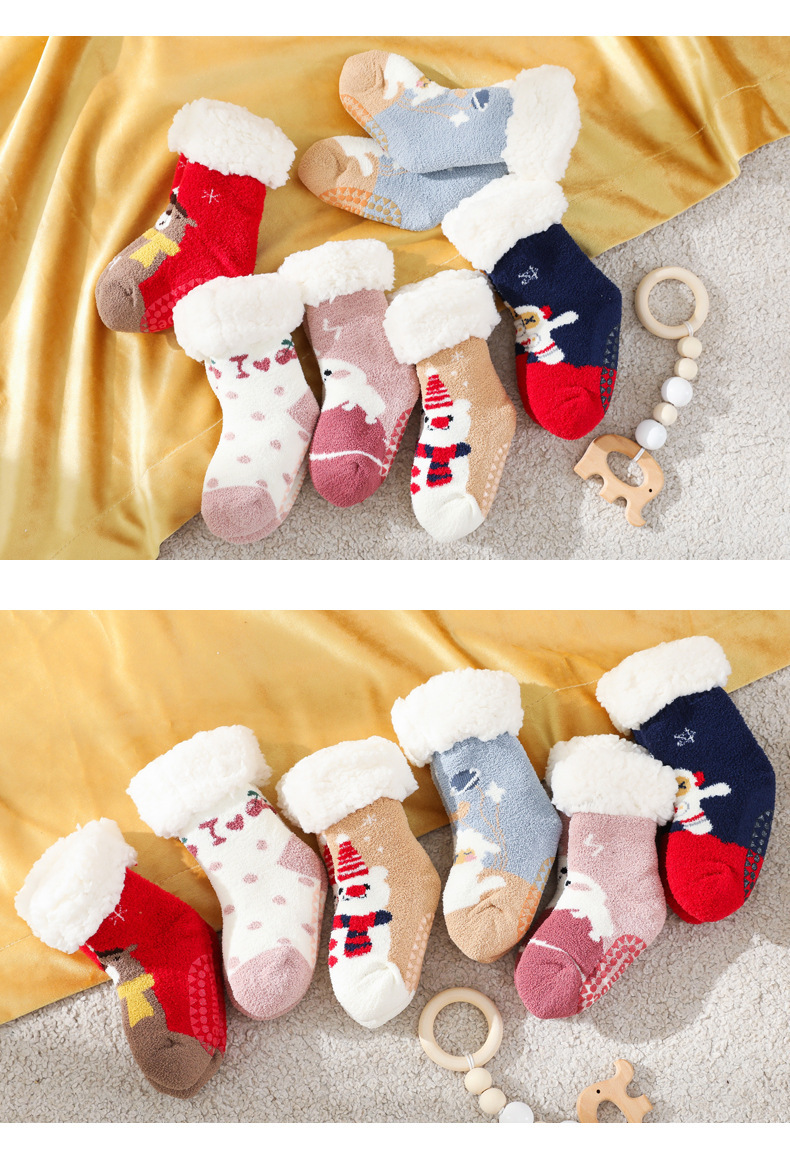 가을과 겨울 기모 두꺼운 lambswool 산호 양털 아기 양말 미끄럼 방지 아기 양말 어린이 홈 바닥 양말 패션스토어 가기