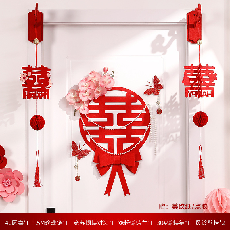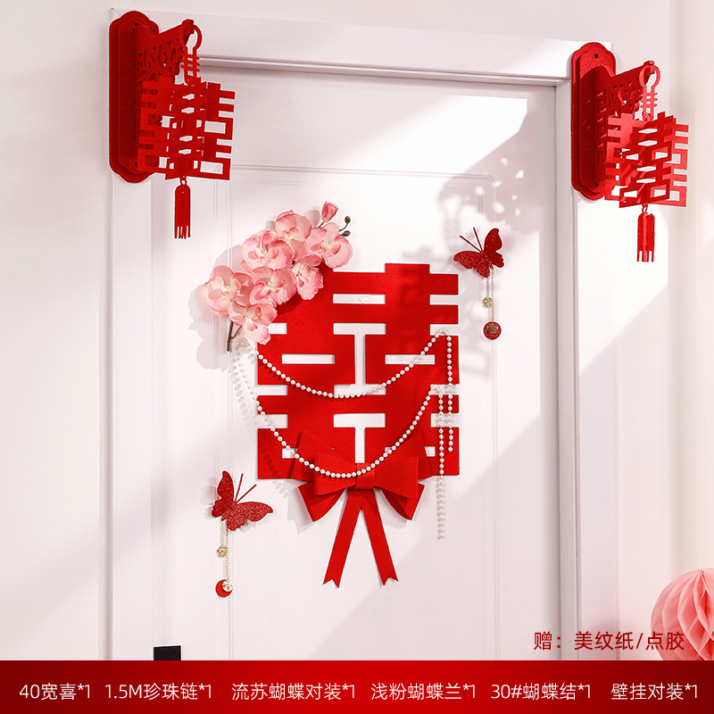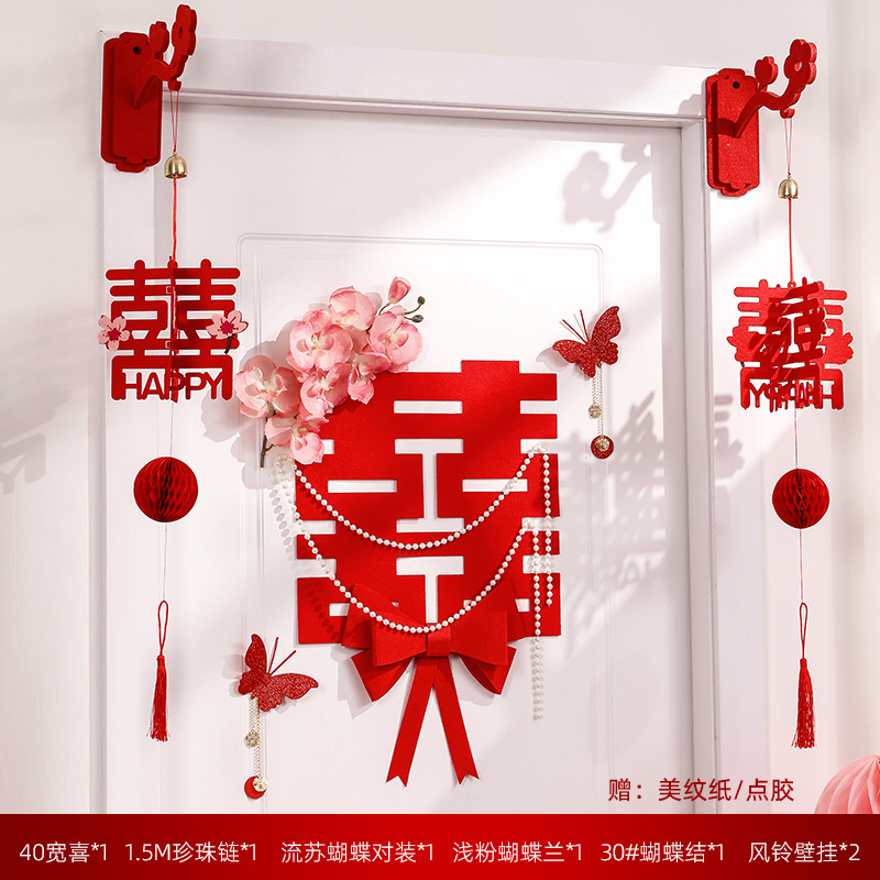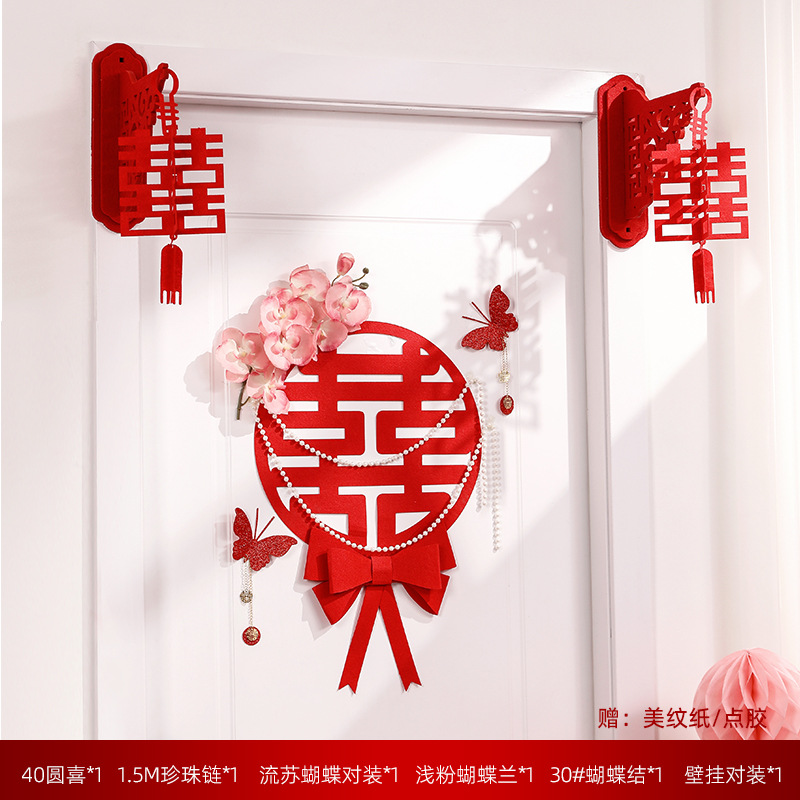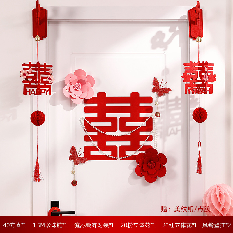 웨딩 룸 레이아웃 세트 그물 빨간 문 Xi 캐릭터 린텔 여성 침실 웨딩 룸 도어 커튼 장식