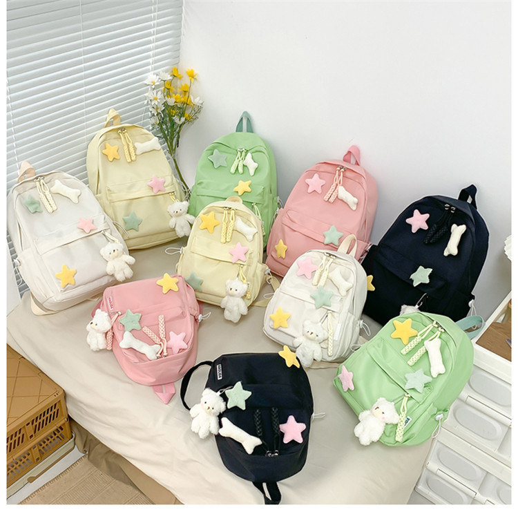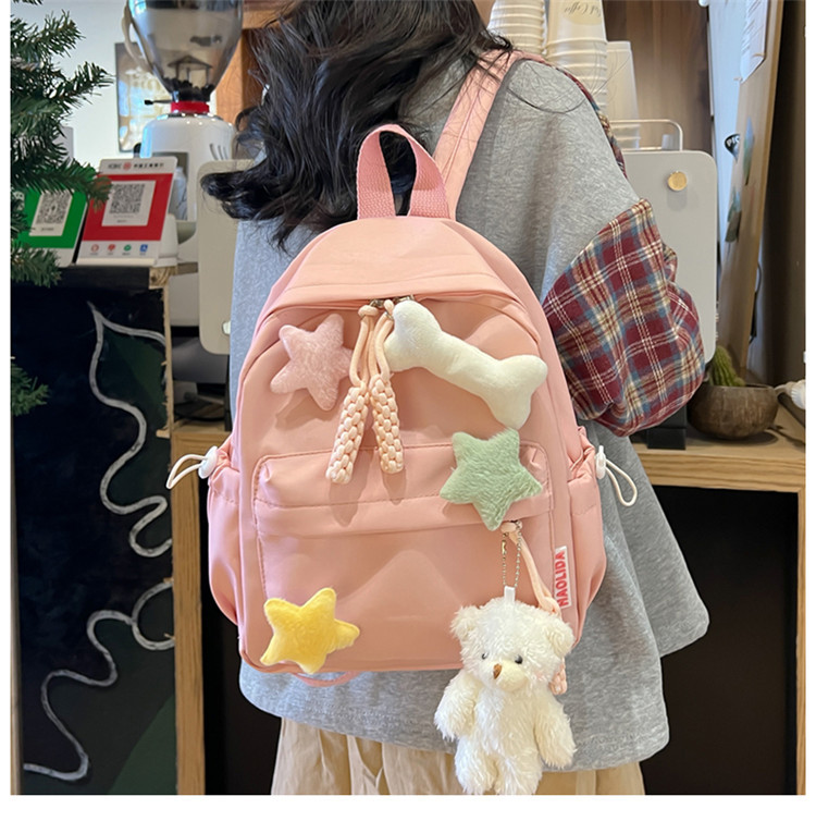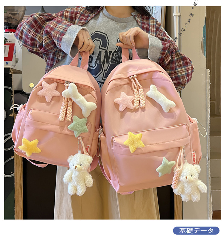 Ins 귀여운 Schoolbag 여성의 새로운 만화 액세서리 배낭 대용량 신선한 소녀 배낭 초등학생을위한 학교 가방