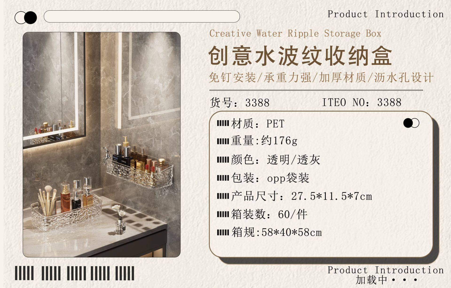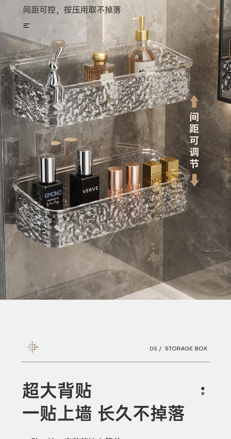 YZ3388 라이트 럭셔리 빙하 무늬 데스크탑 수납 선반 욕실 세면대 무타공 벽걸이형 수납 선반