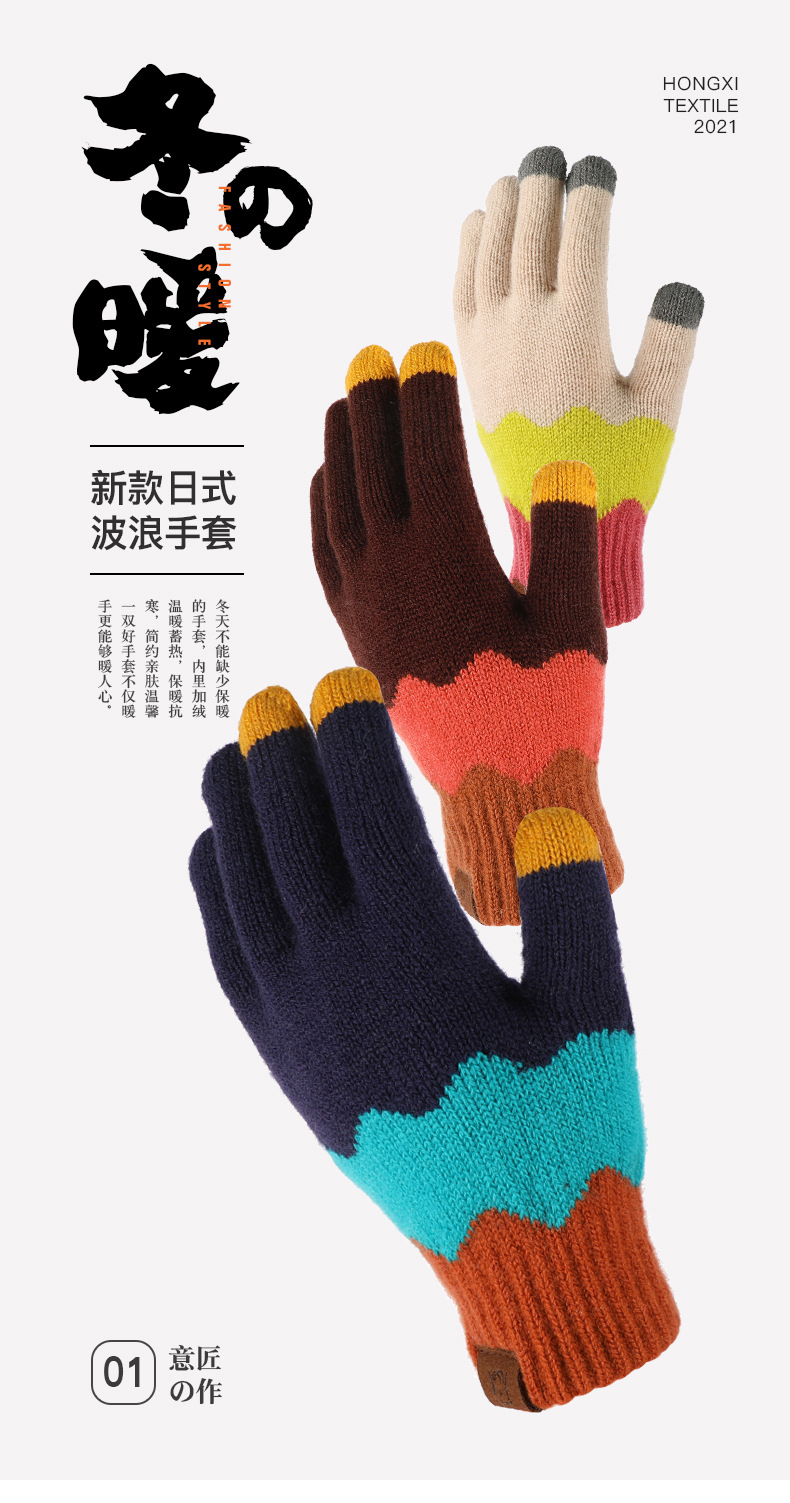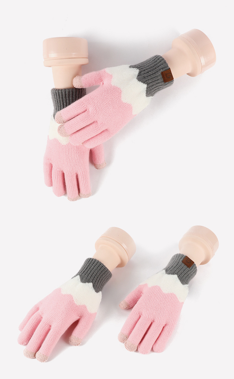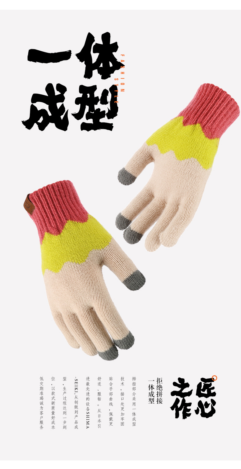 겨울 방한을 위한 크로스보더 공장 터치스크린 니트 장갑, 두껍고 창의적인 컬러 매칭 그라데이션 모조 캐시미어 혼합 직접 공급스토어 가기