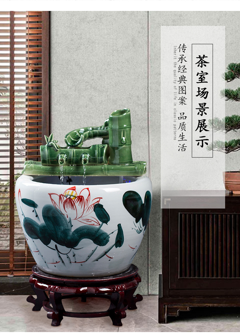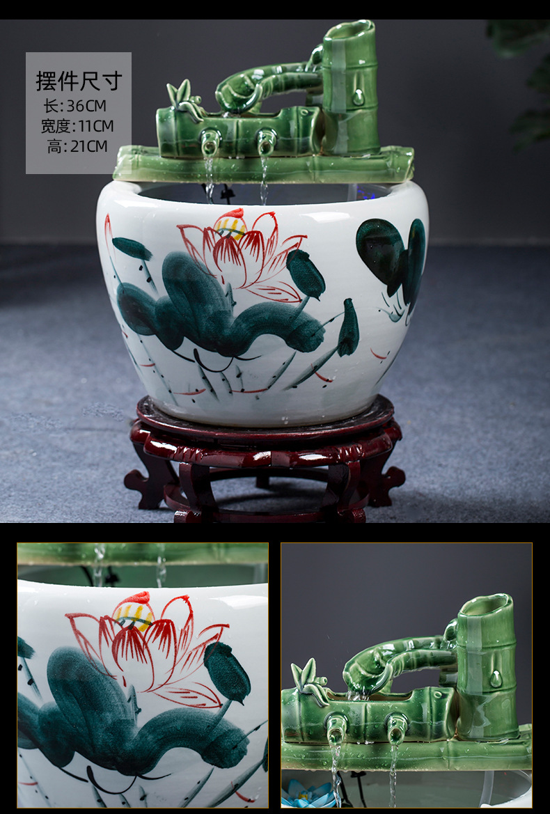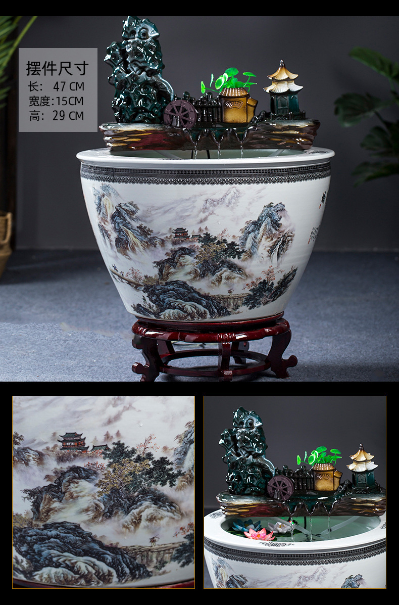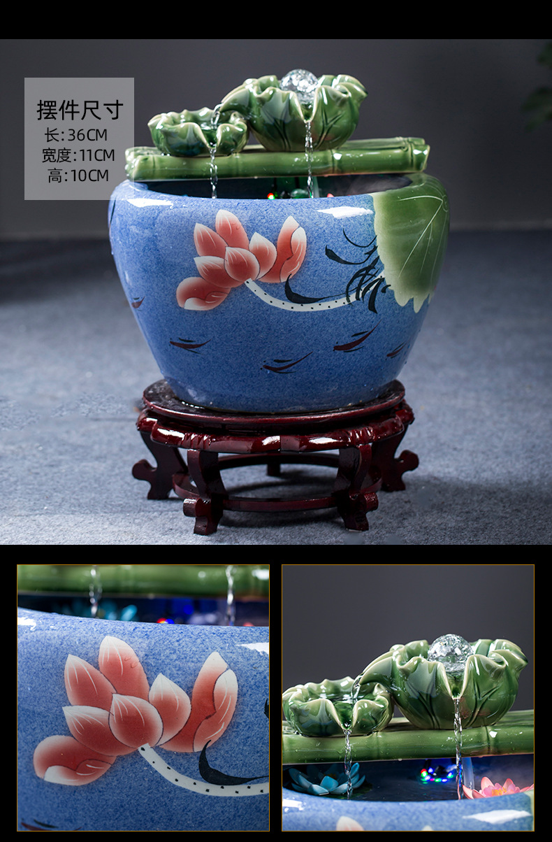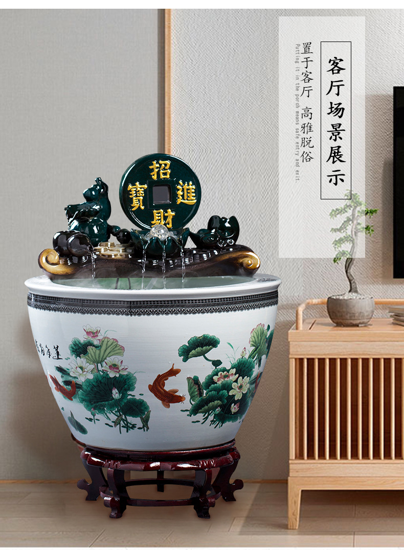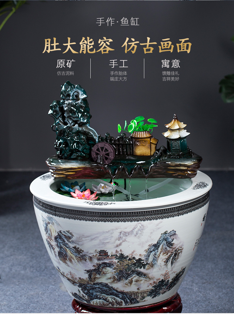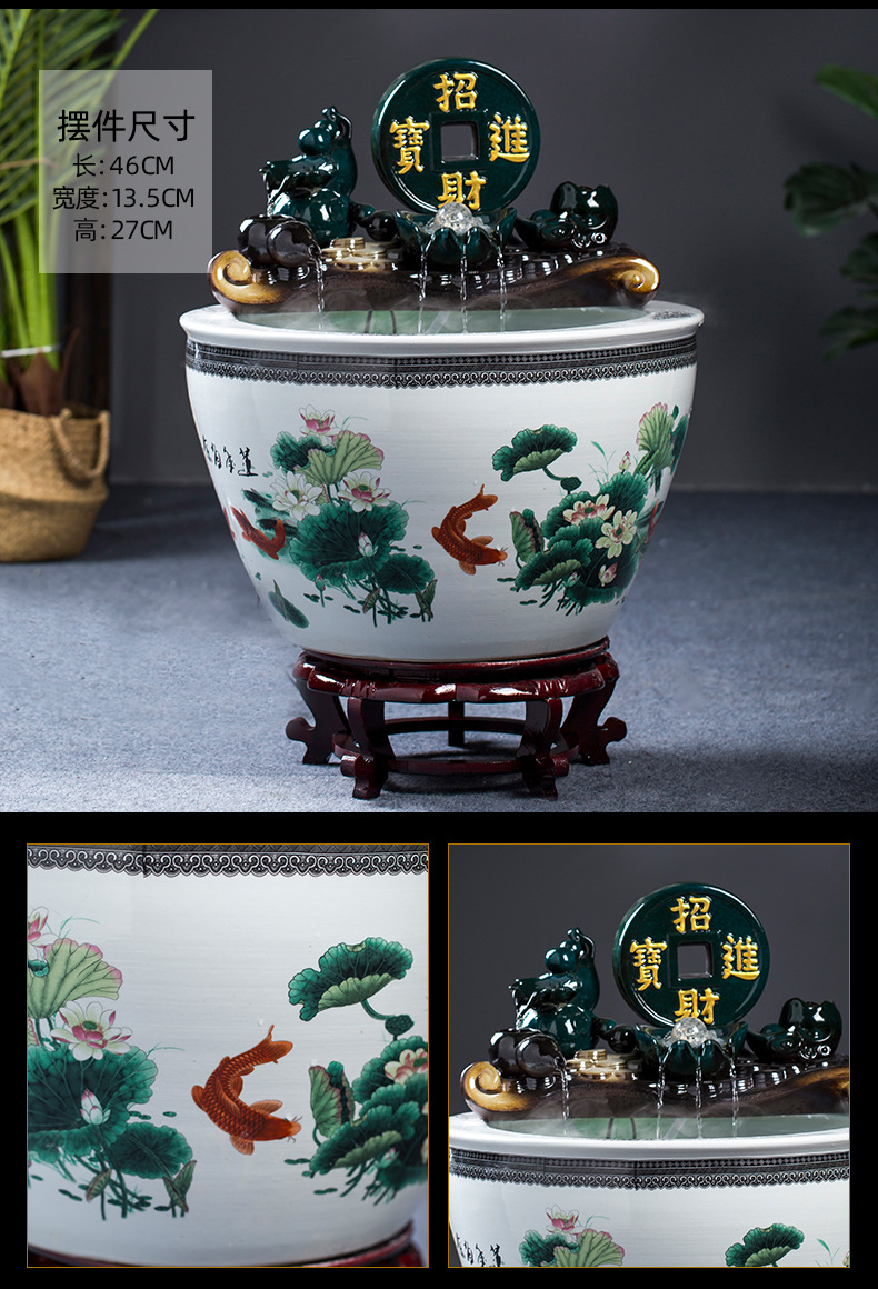 Jingdezhen 세라믹 어항 초대형 필터 순환 흐름 물 장치 물고기 사육 거실 장식 분수 연꽃 물 유역스토어 가기