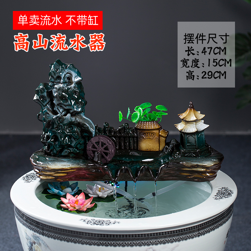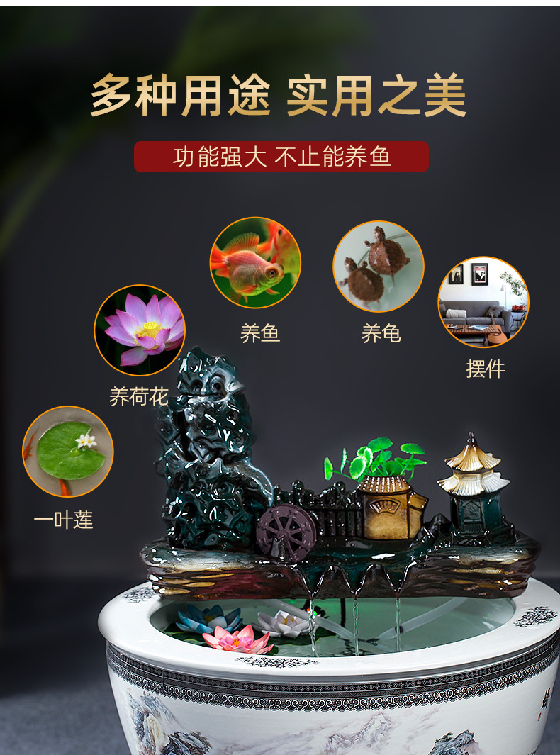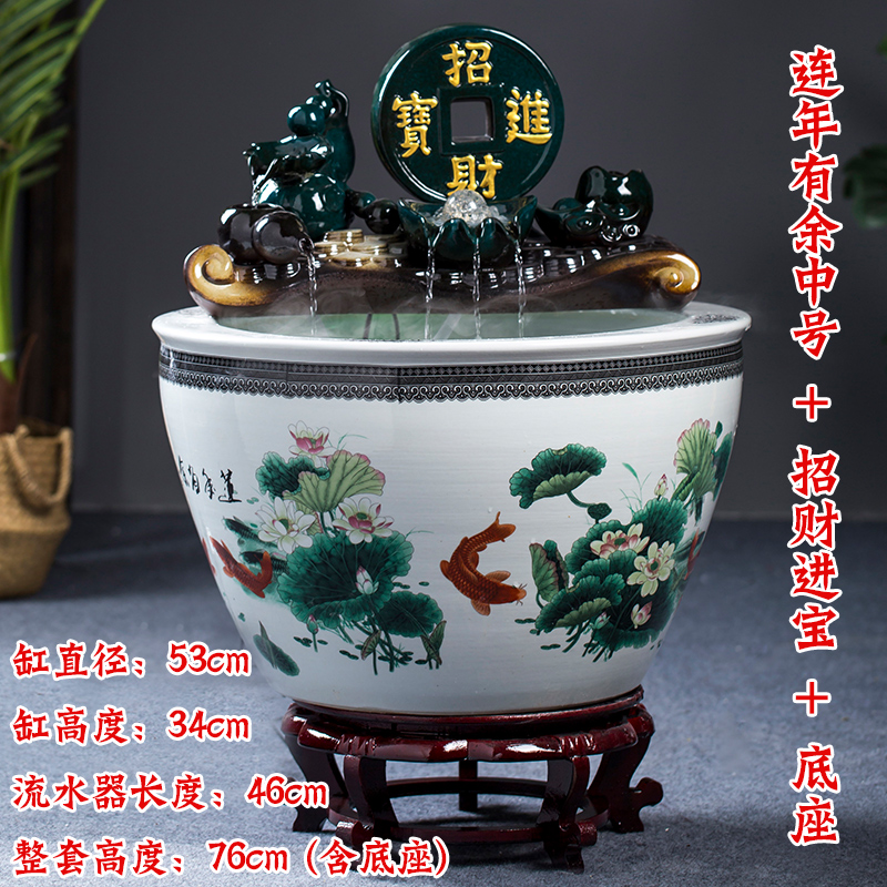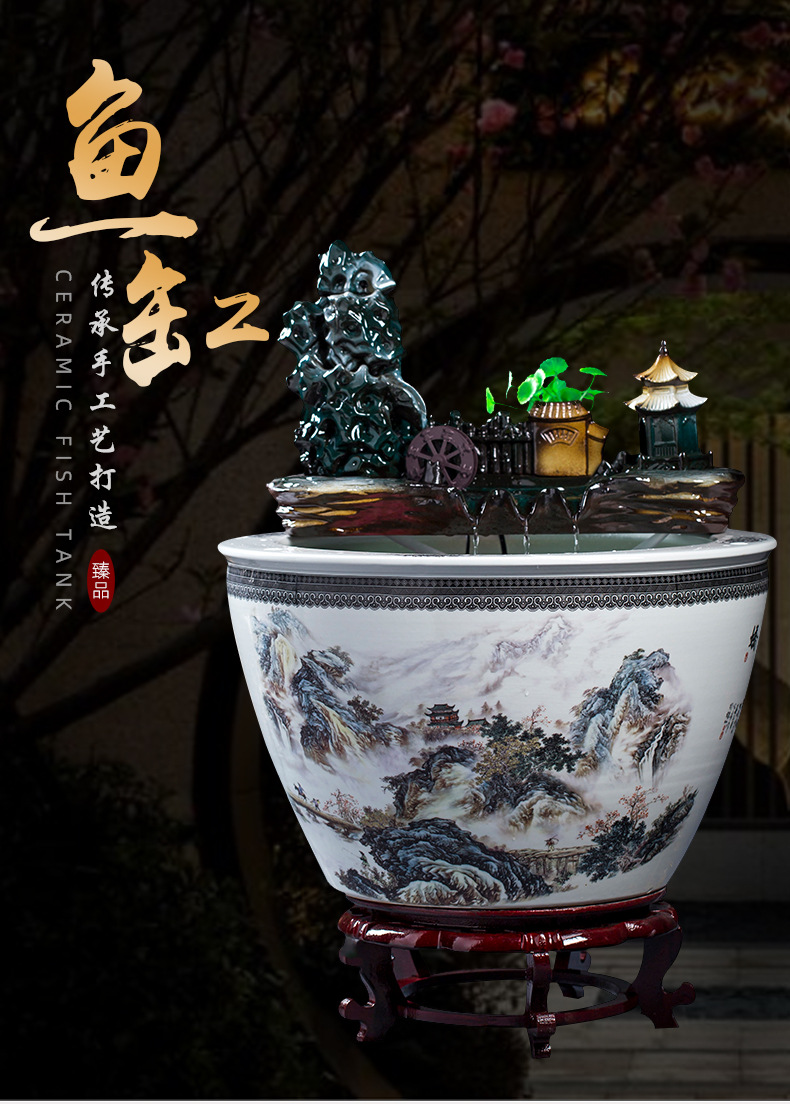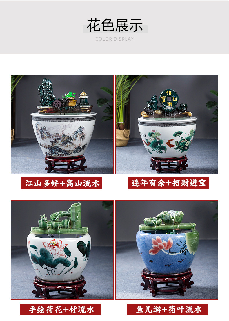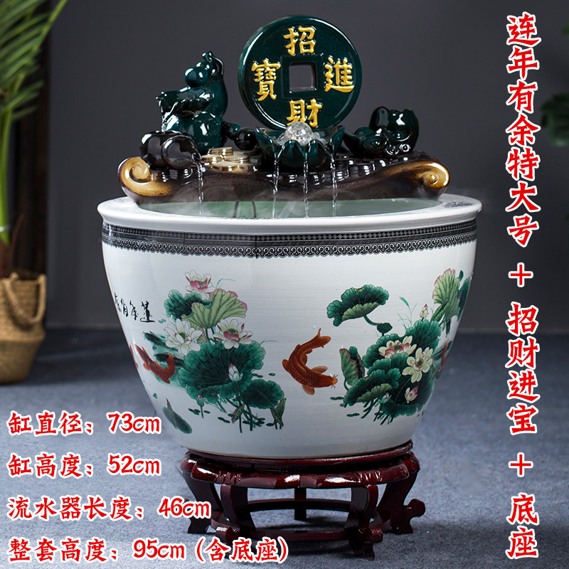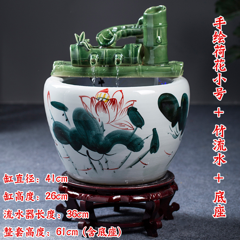 Jingdezhen 세라믹 어항 초대형 필터 순환 흐름 물 장치 물고기 사육 거실 장식 분수 연꽃 물 유역스토어 가기