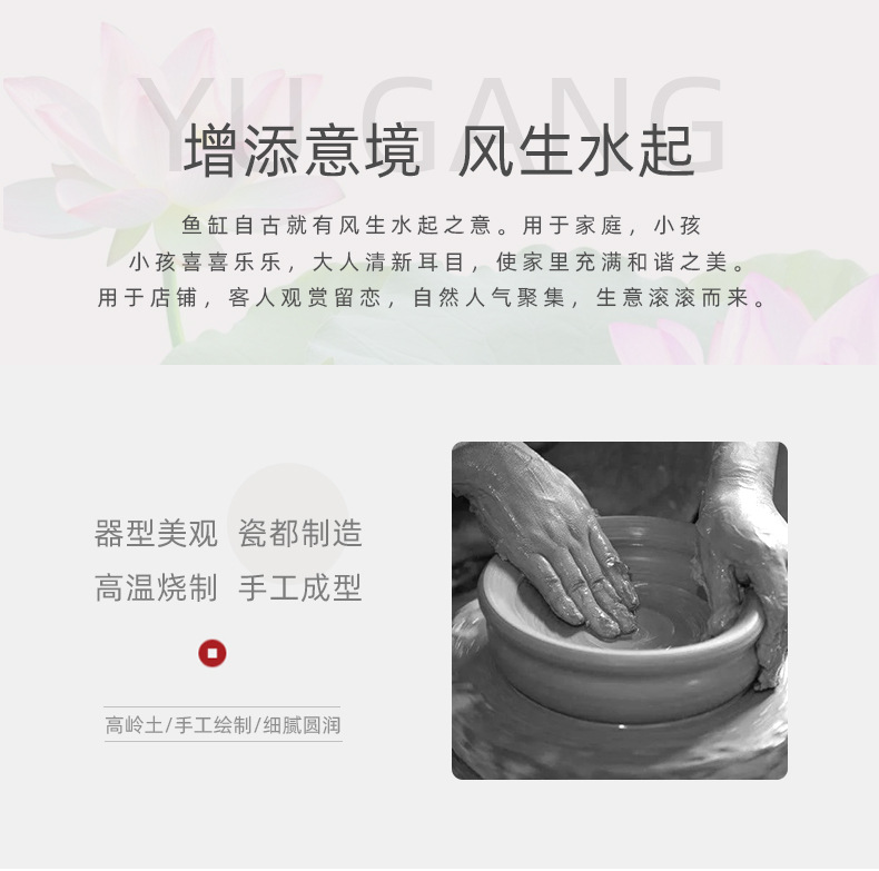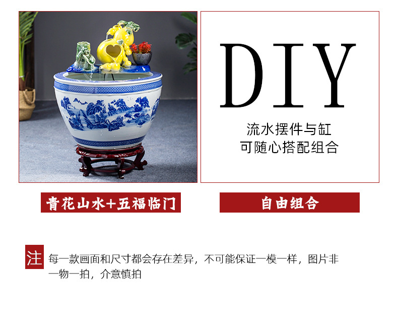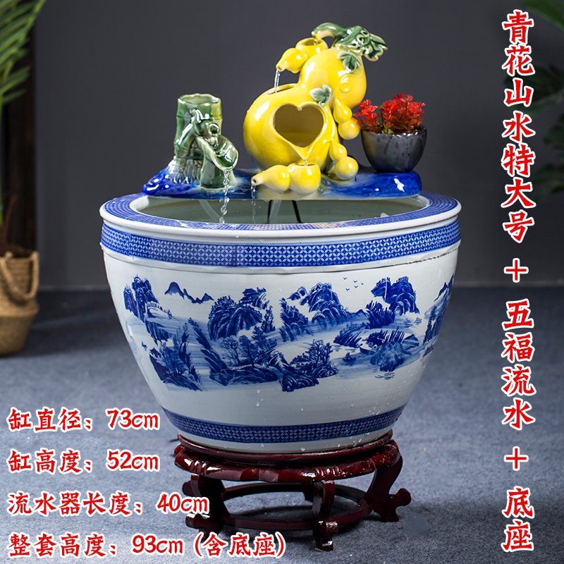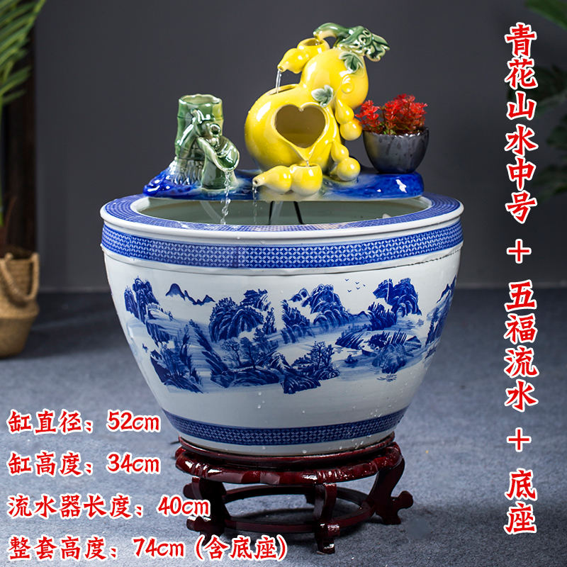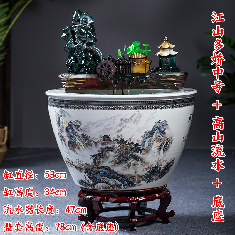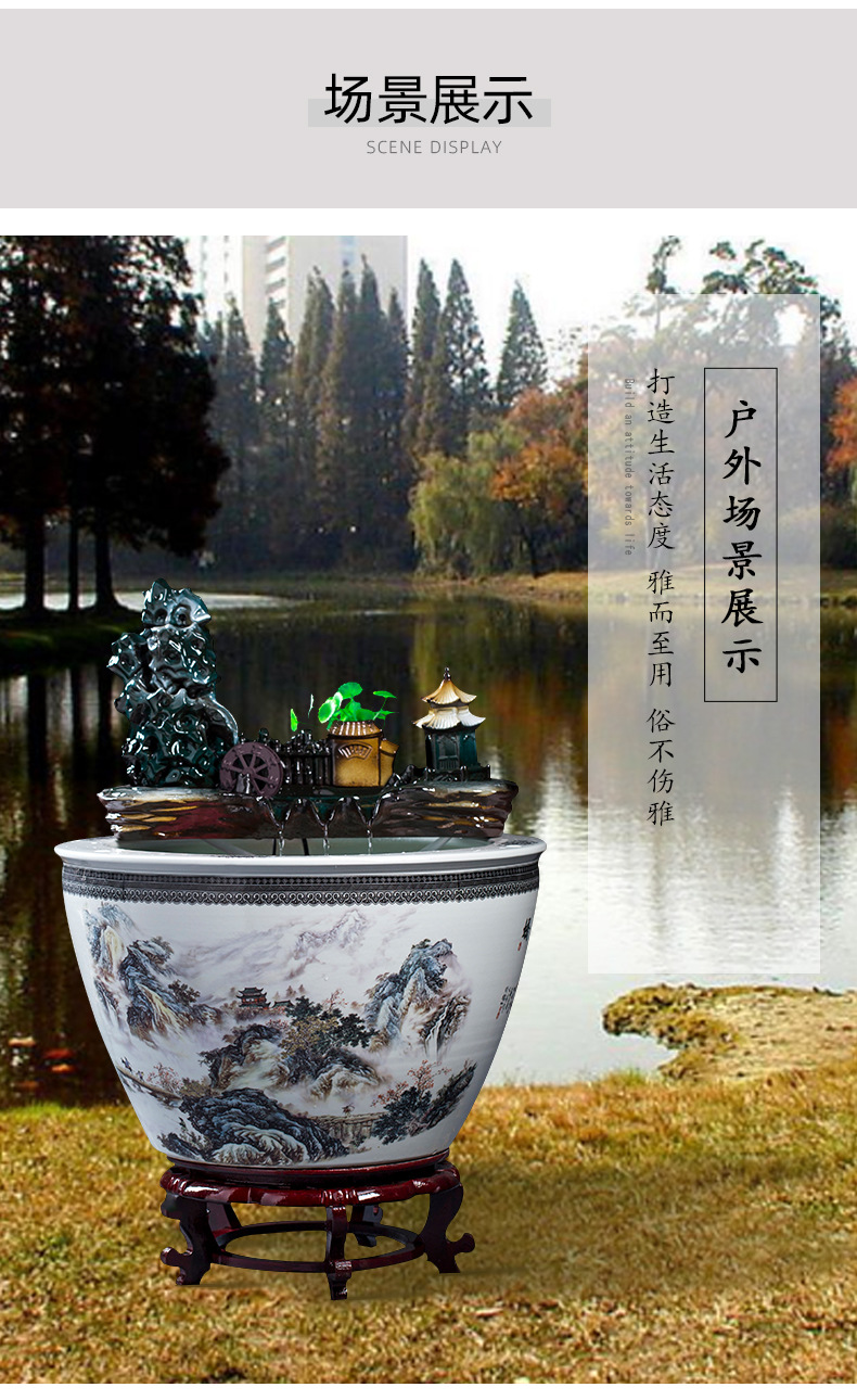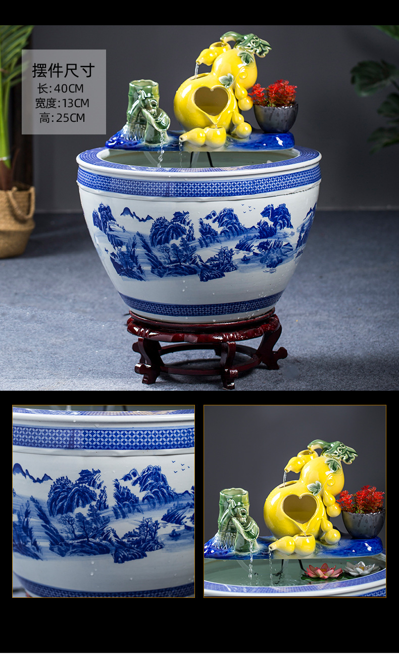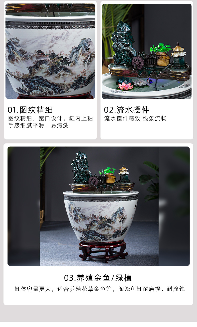 Jingdezhen 세라믹 어항 초대형 필터 순환 흐름 물 장치 물고기 사육 거실 장식 분수 연꽃 물 유역스토어 가기