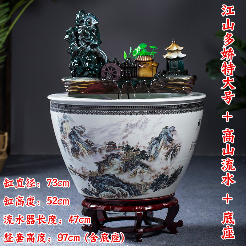 Jingdezhen 세라믹 어항 초대형 필터 순환 흐름 물 장치 물고기 사육 거실 장식 분수 연꽃 물 유역