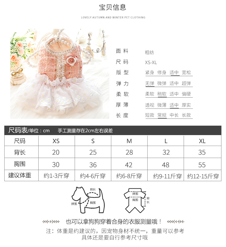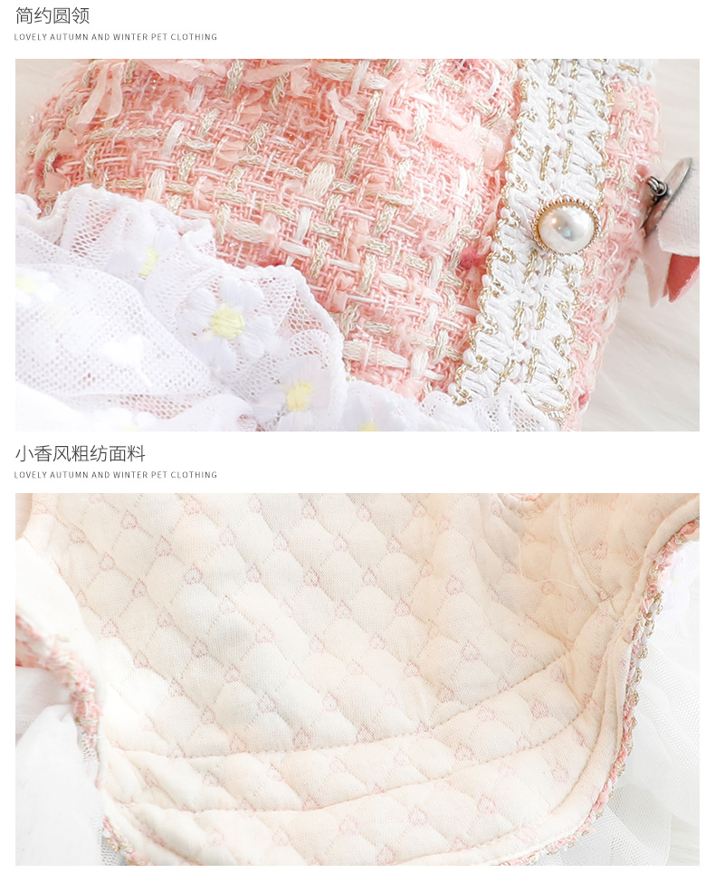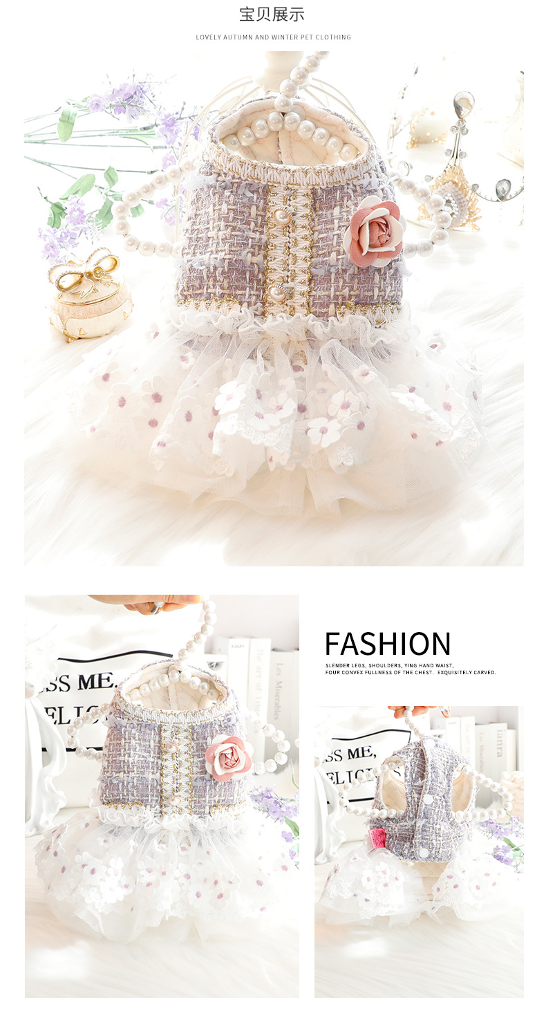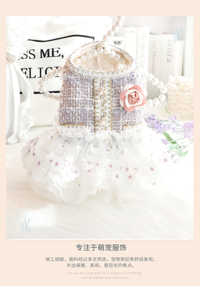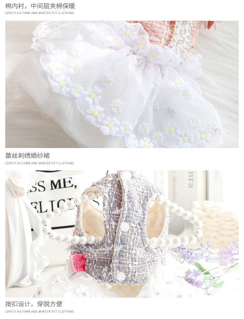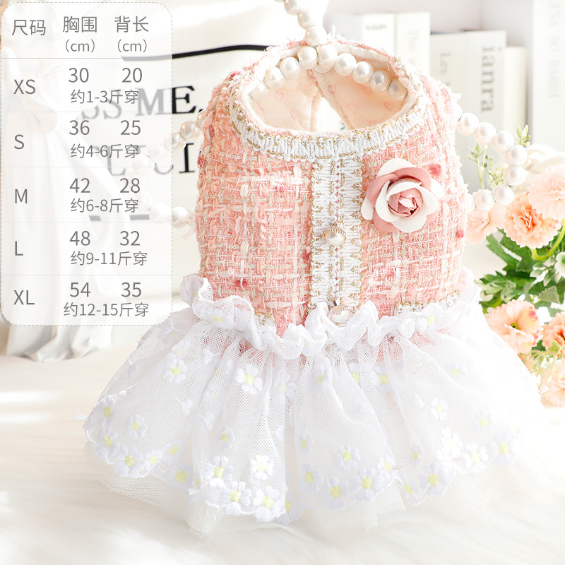 개 옷 가을과 겨울 고양이 공주 원피스 샤넬 스타일 레이스 자수 결혼식 원피스 작은 개 테디 애완 동물 5532