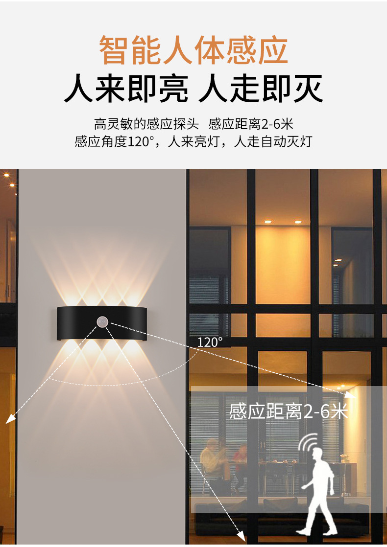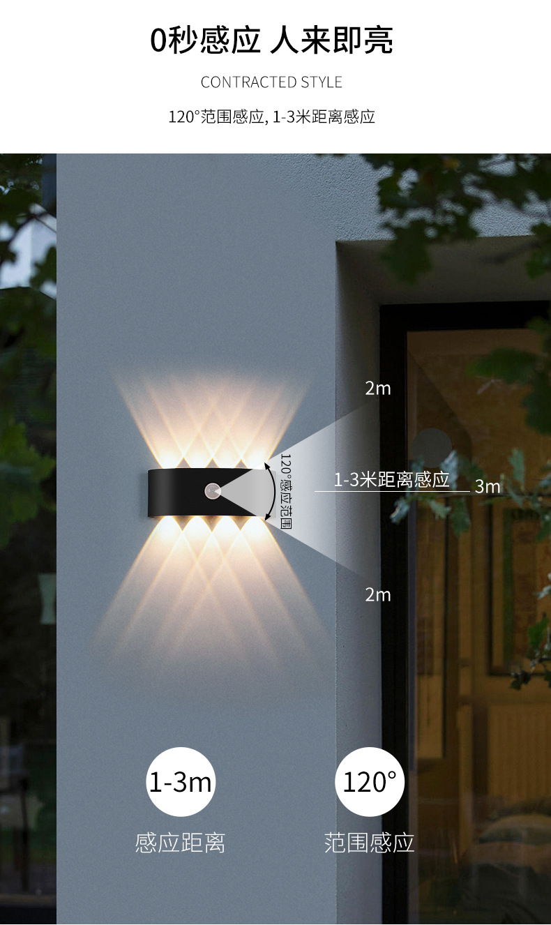 실내 및 실외 보도 램프 방수 벽 램프 유도 램프 인체 발코니 안뜰 외벽 테라스 레이더 유도스토어 가기
