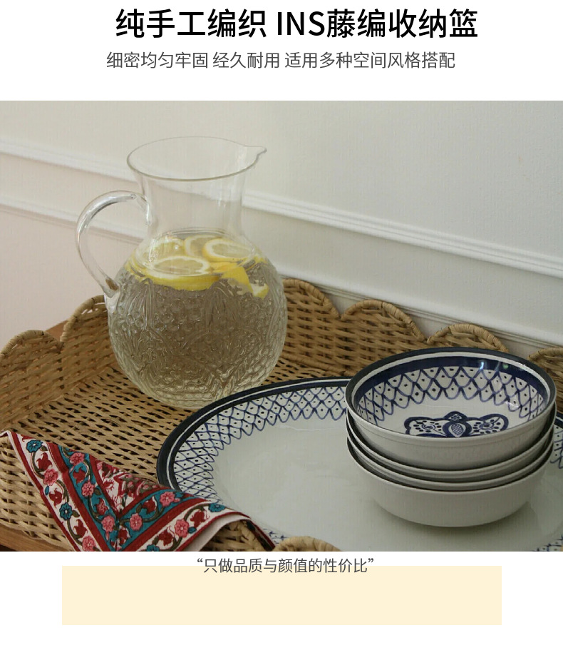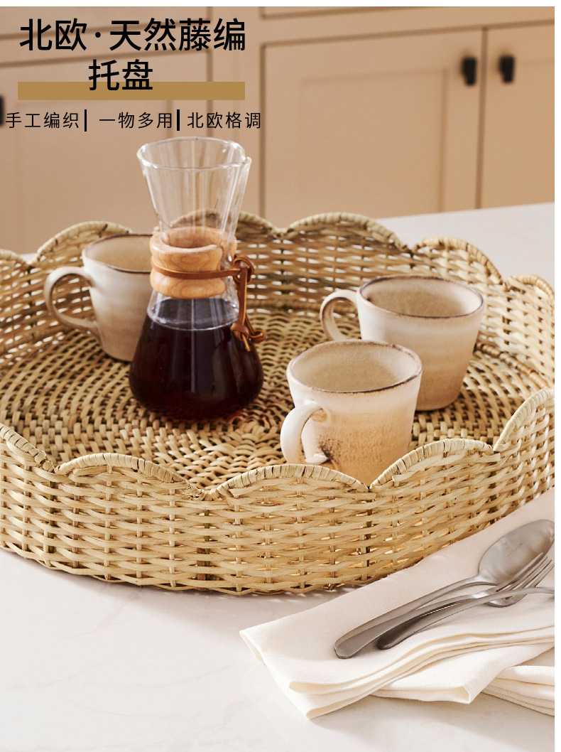 등나무 트레이 티 트레이 가정용 테이블 저장 트레이 물 컵 티 컵 트레이 일본 거실 티 트레이 스낵 과일 트레이
