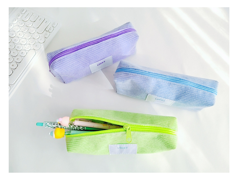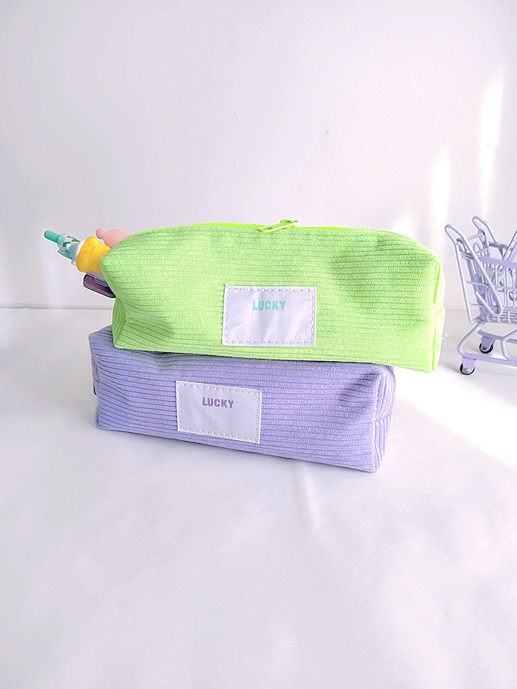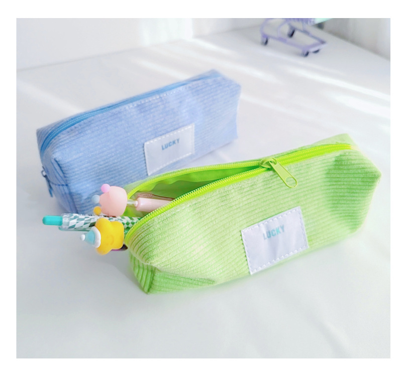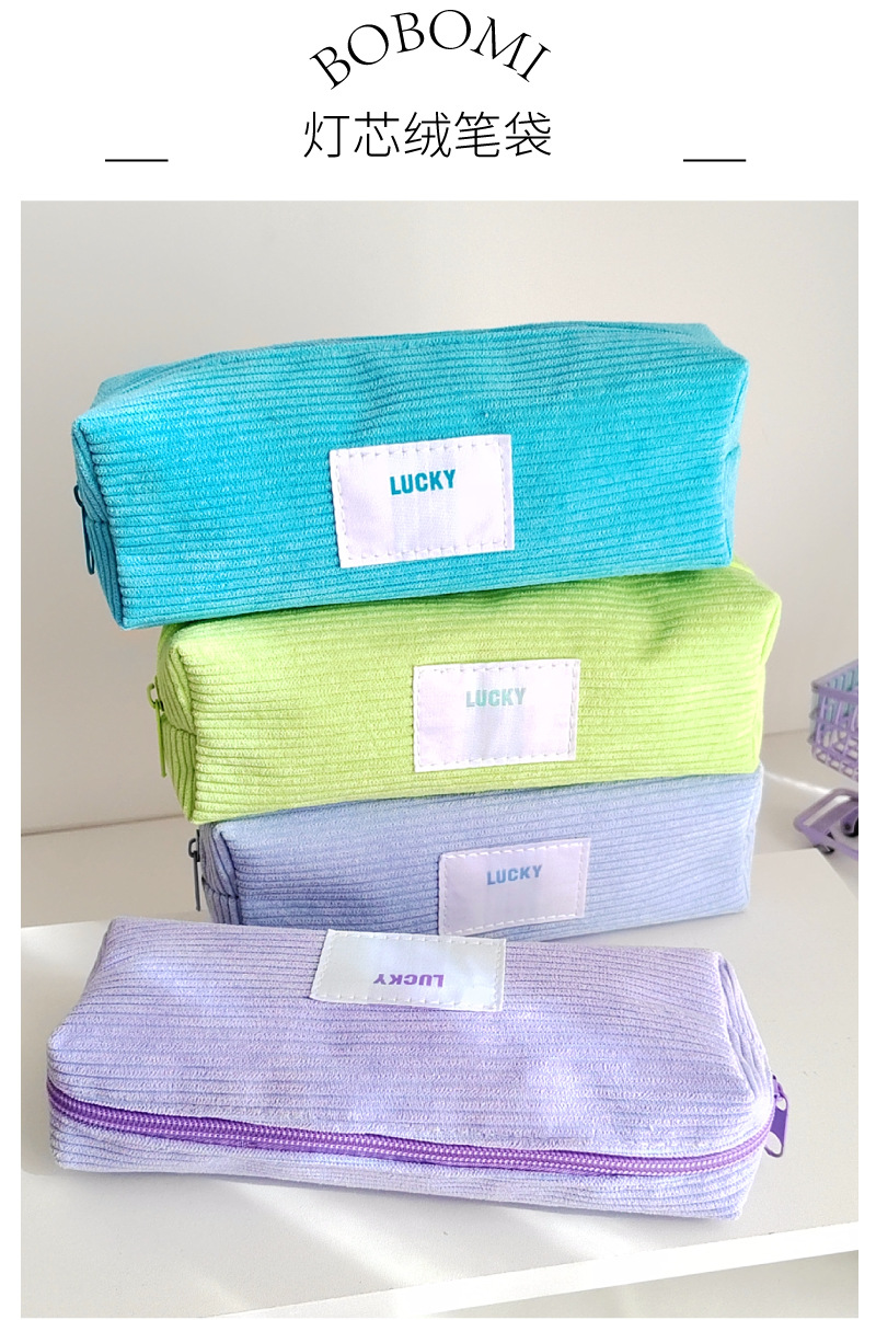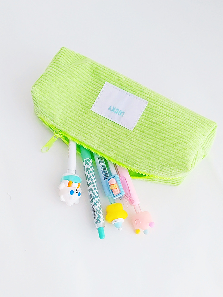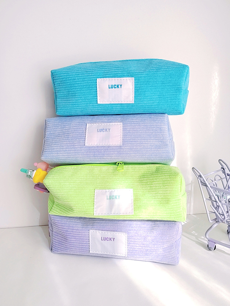 고급 캔디 컬러 코듀로이 연필 케이스 일본 소년 소녀 고등학교 학생 대용량 연필 케이스 문구스토어 가기