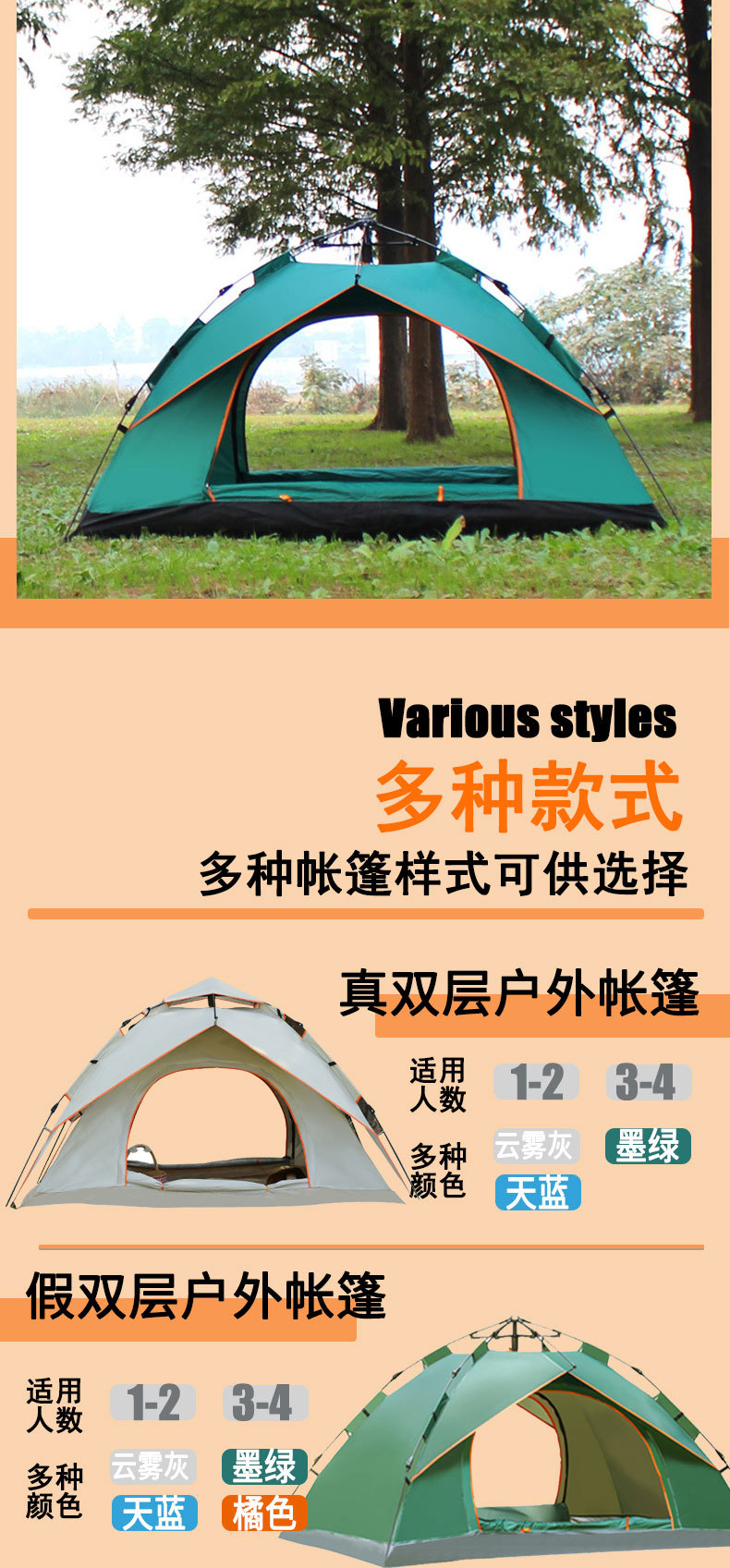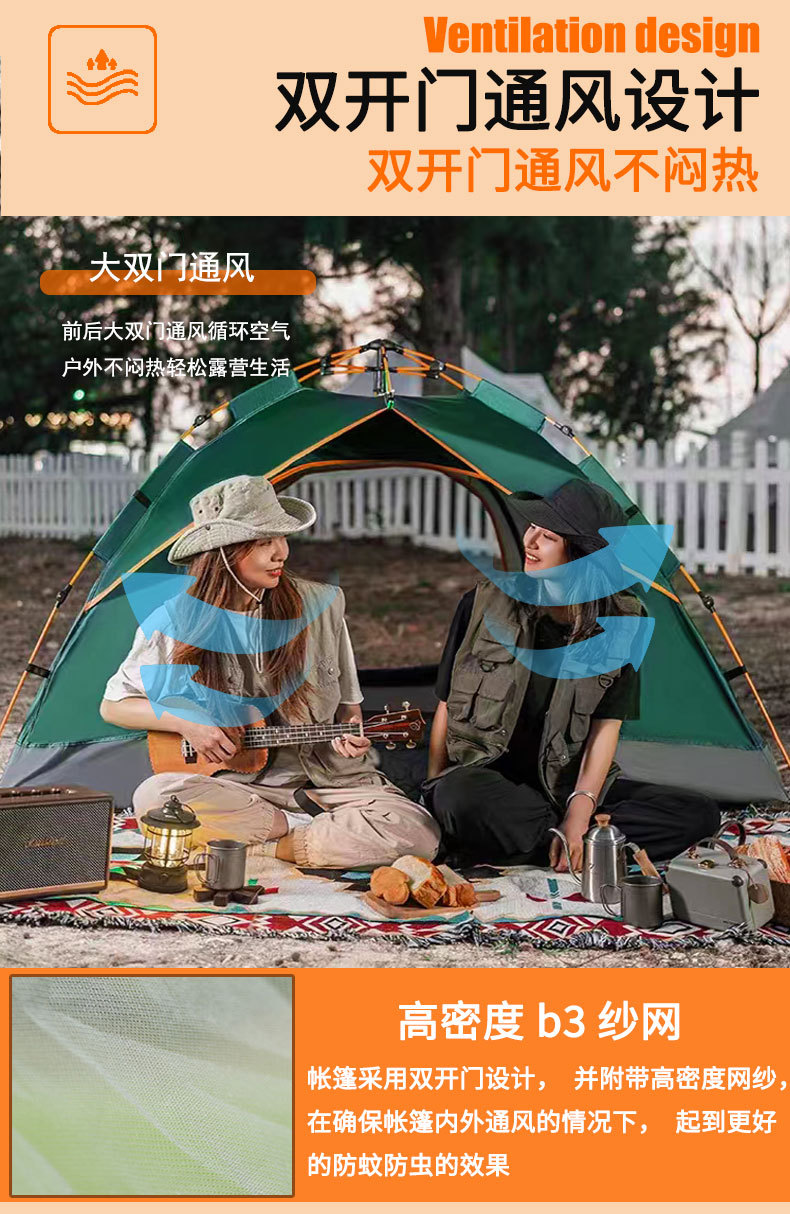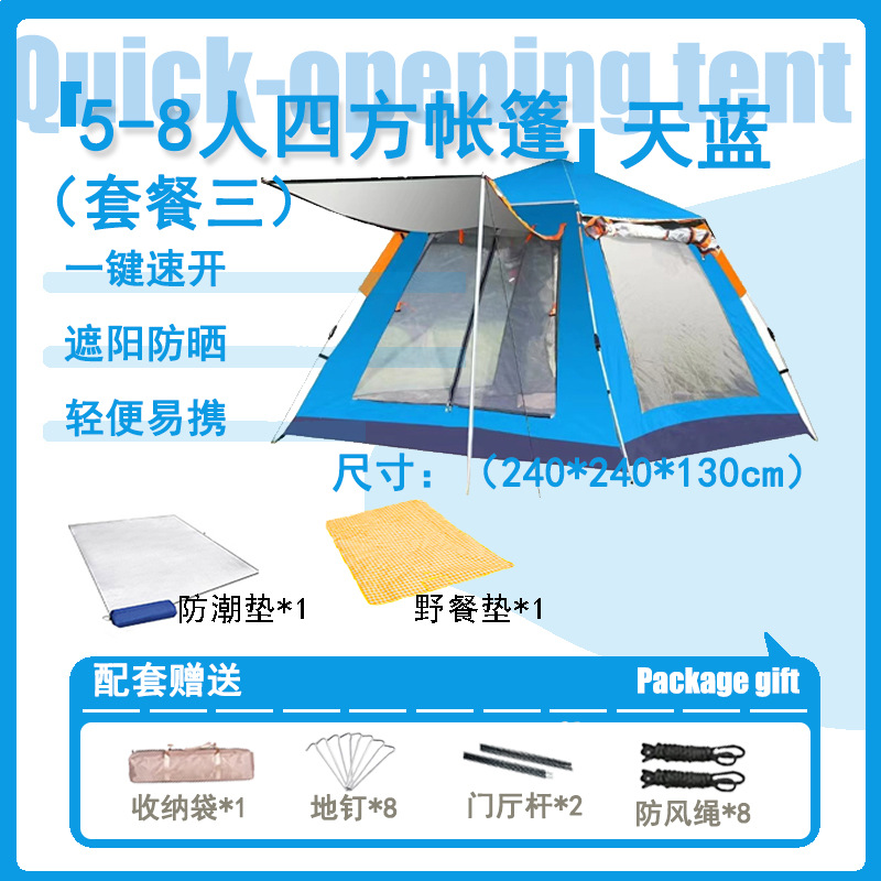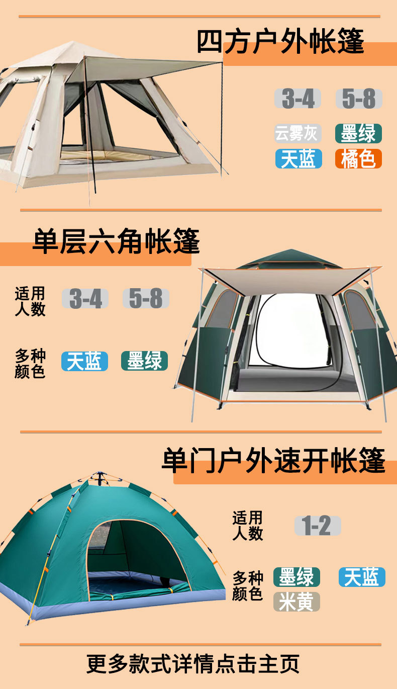 텐트 야외 접이식 자동 캠핑 해변 단일 레이어 빠른 캠핑 두꺼운 방수 풀 세트 장비 도매스토어 가기