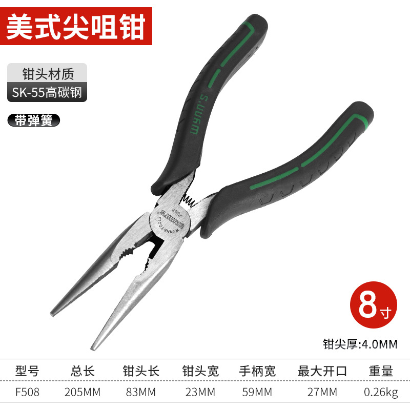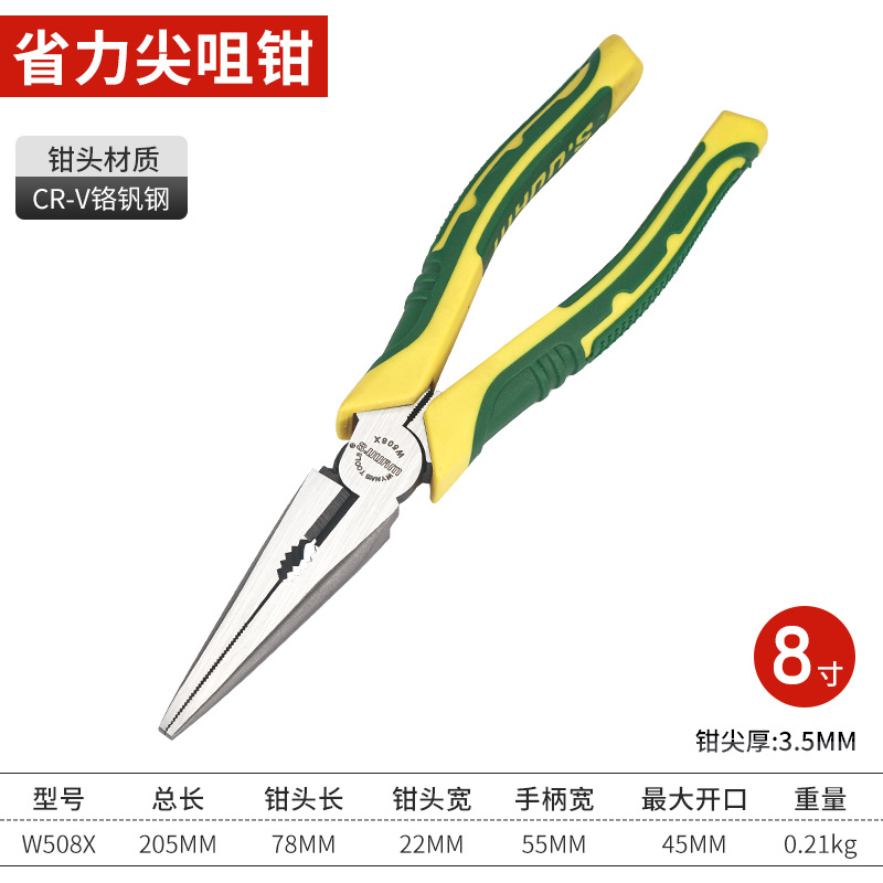 • 8 인치 노동 절약 바늘 코 펜치 (크롬 바나듐 강철 노동 절약) W508X