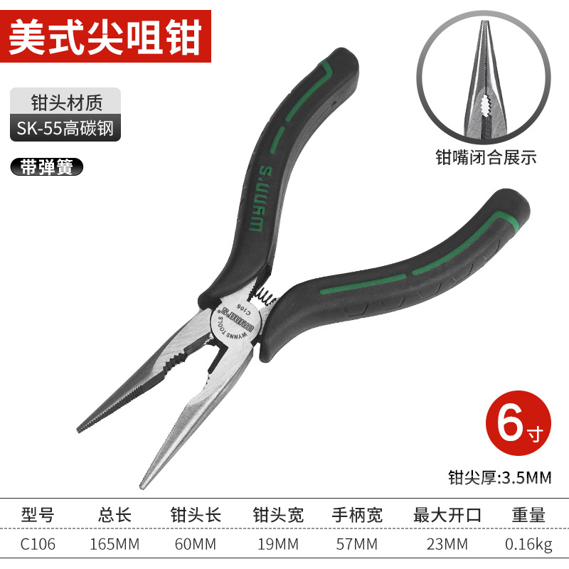 • 6 인치 노동 절약 바늘 코 펜치 (크롬 바나듐 강철 노동 절약) W106X