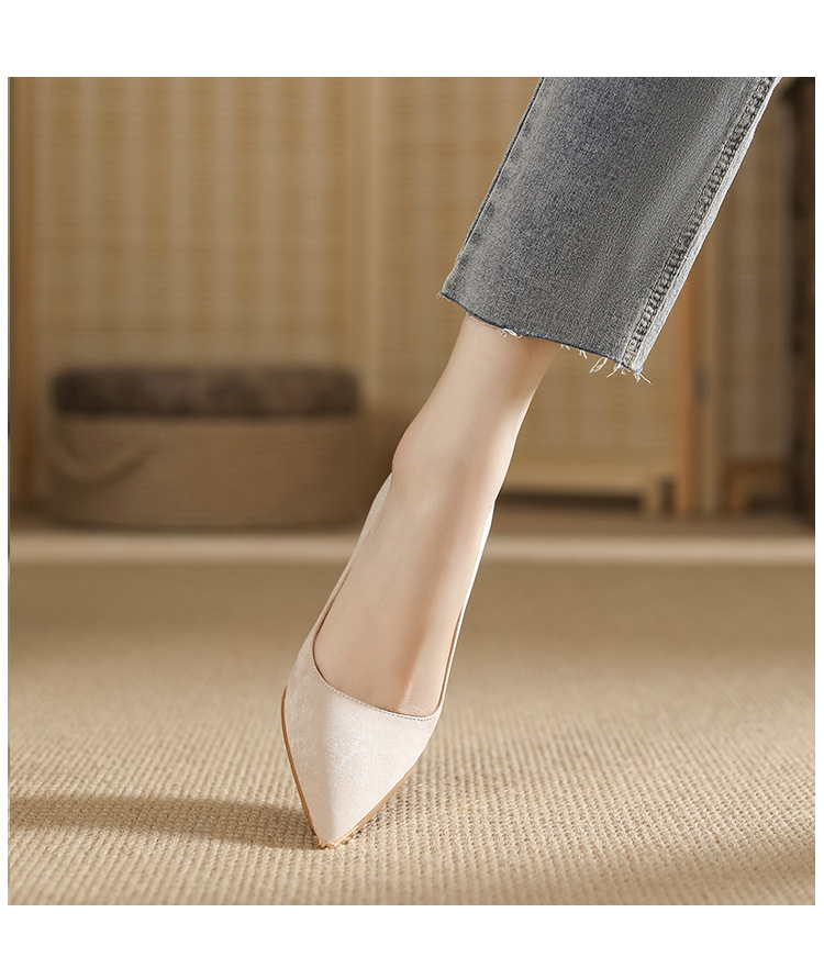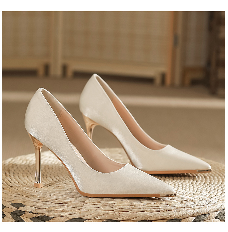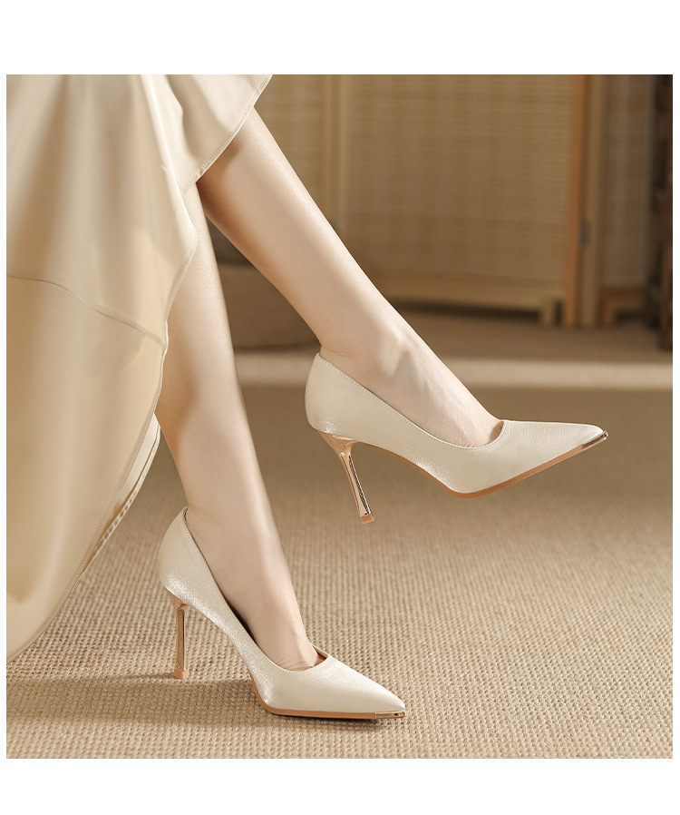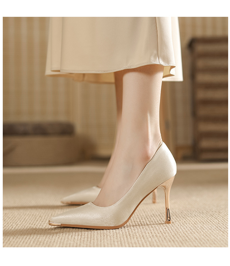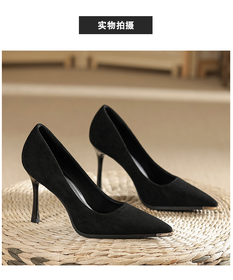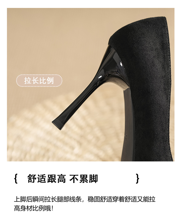 금속 발가락 안티 킥 뾰족한 스틸레토 스웨이드 새틴 하이힐 여성의 단색 통근 플랫폼 작업 뒤꿈치 신발스토어 가기