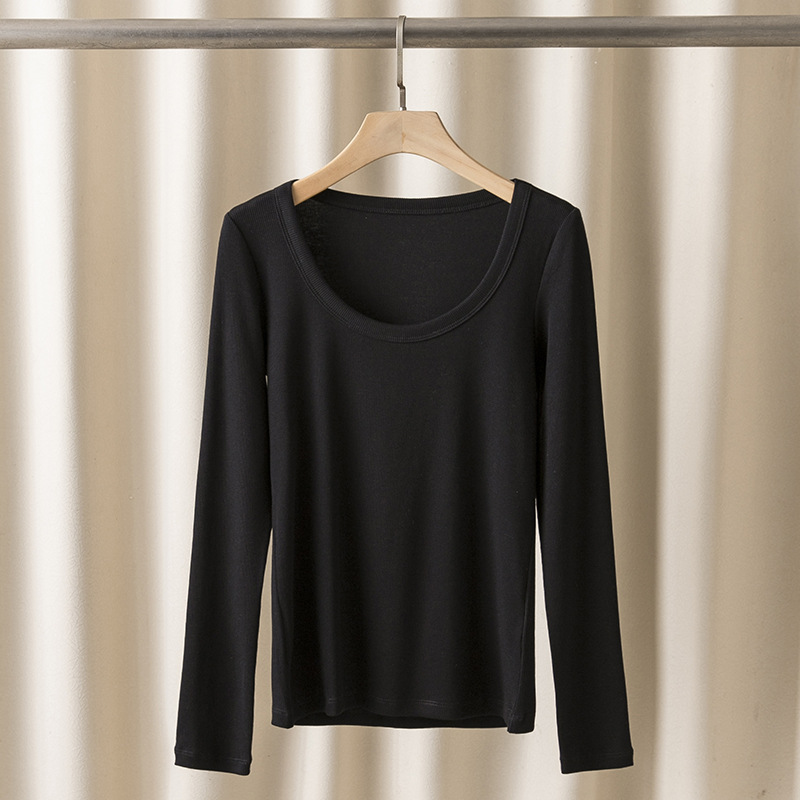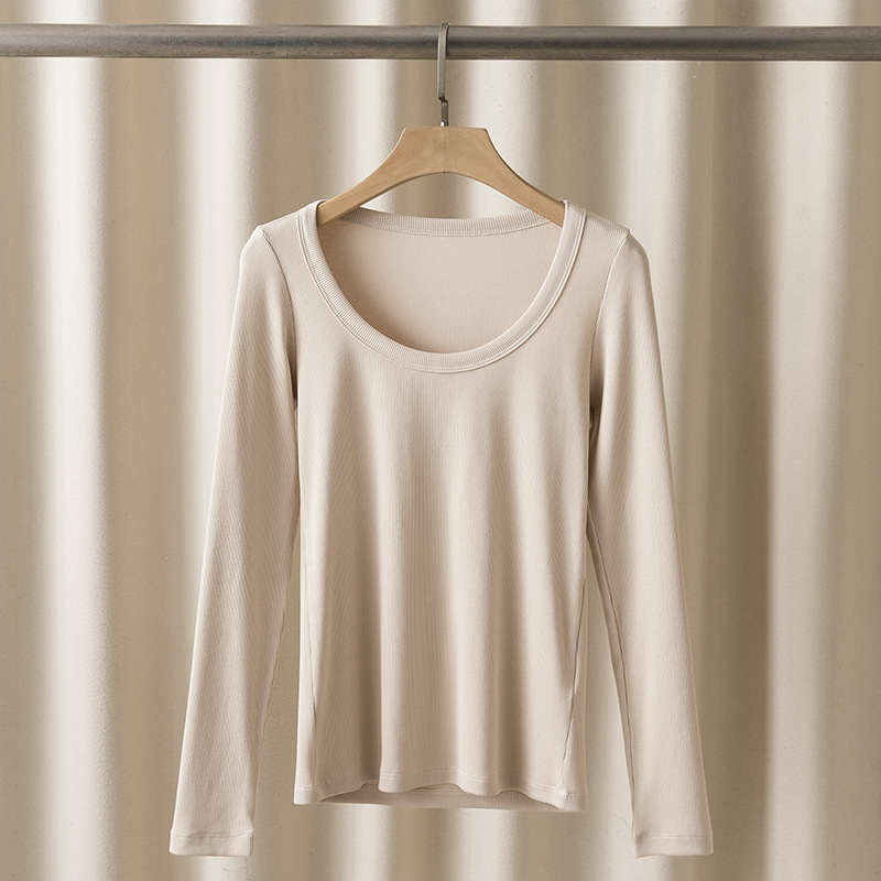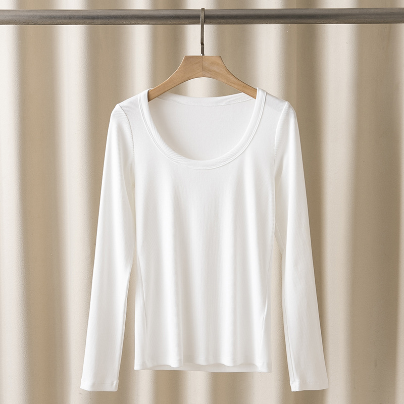 TOT24 봄/여름 여러 사람들을위한 새로운 갈비뼈 스트레치 슬림형 유기농면 u-칼라 긴팔 탑