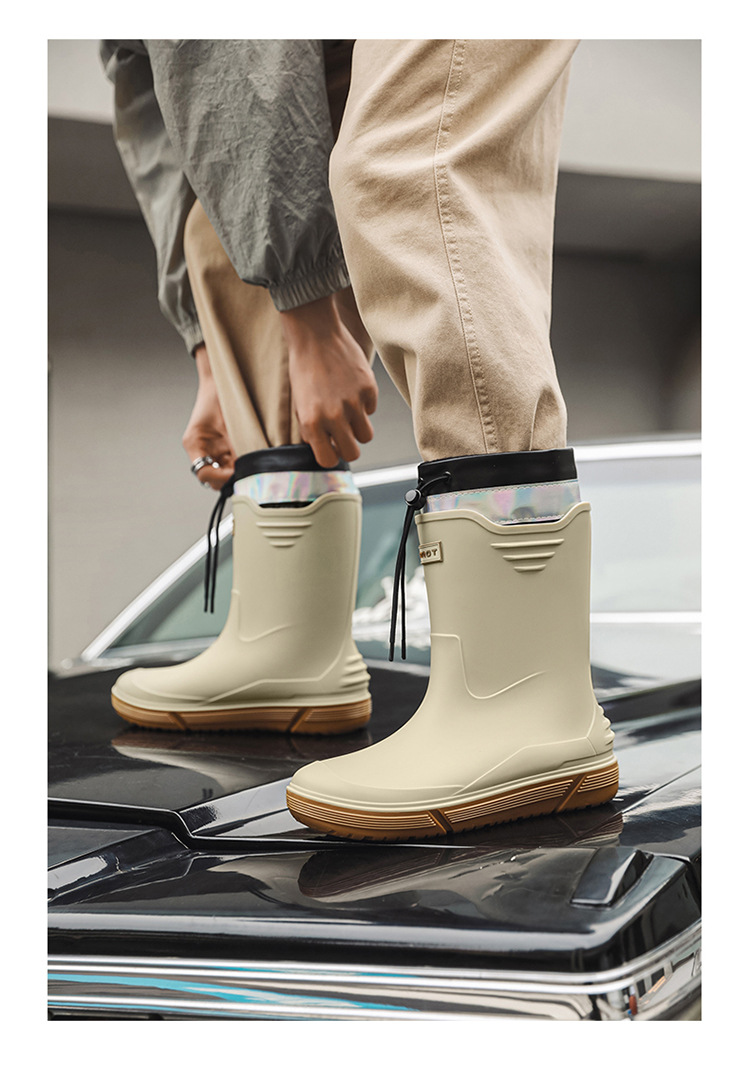 워터 신발 폐쇄 남성용 송아지 미끄럼 방지 방수 신발 새로운 패션 야외 워터 부츠 따뜻한 짧은 고무 신발 배달 배치스토어 가기