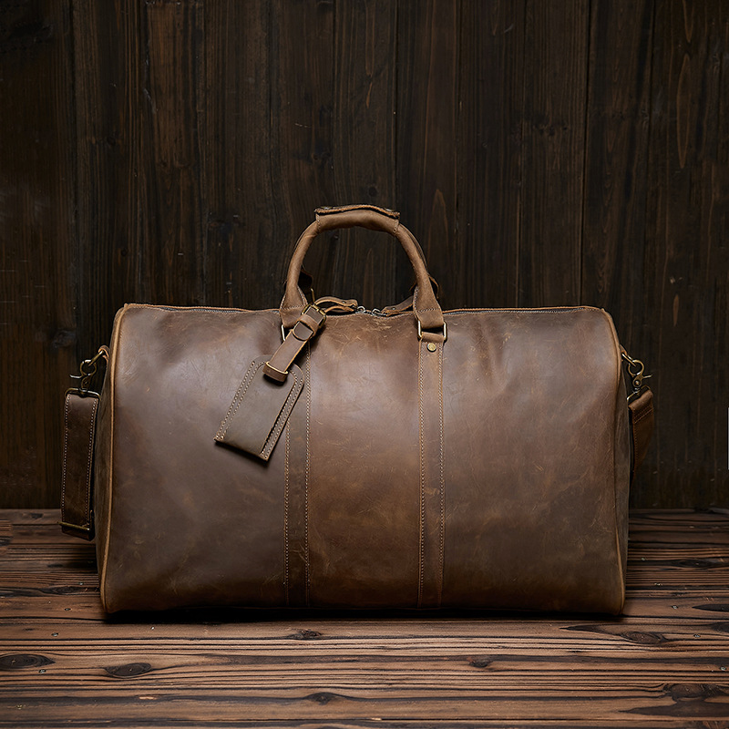 레트로 크레이지 호스 가죽 여행 가방 남성 출장 대용량 첫 번째 레이어 소 가죽 휴대용 수하물 가방 정품 가죽 피트니스 가방스토어 가기