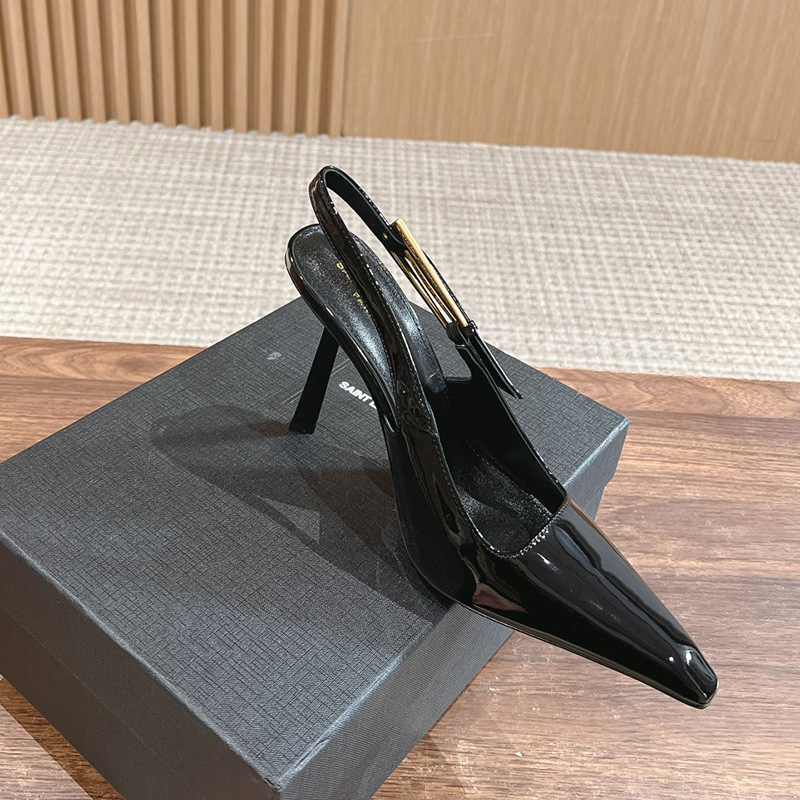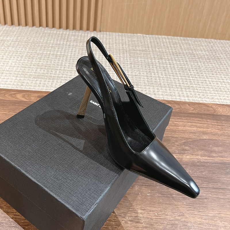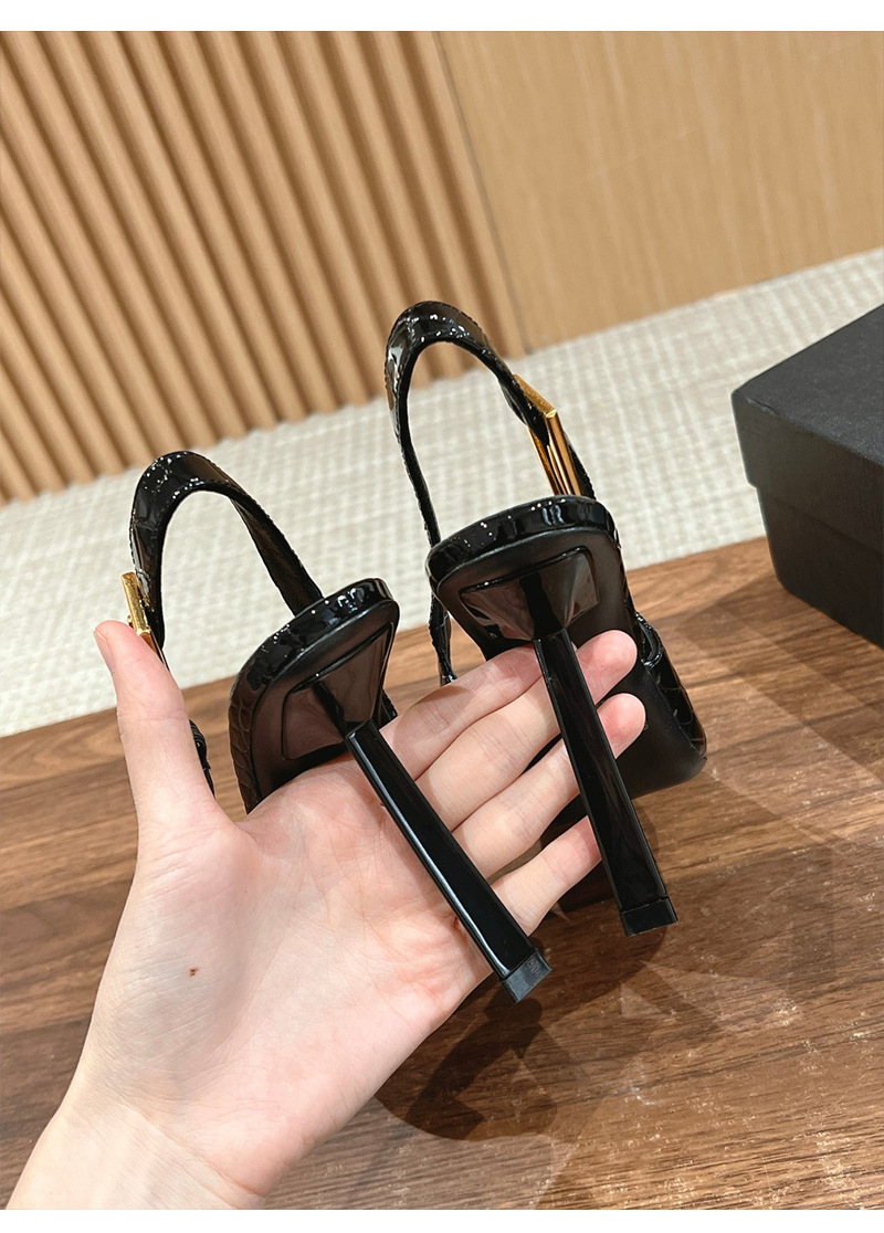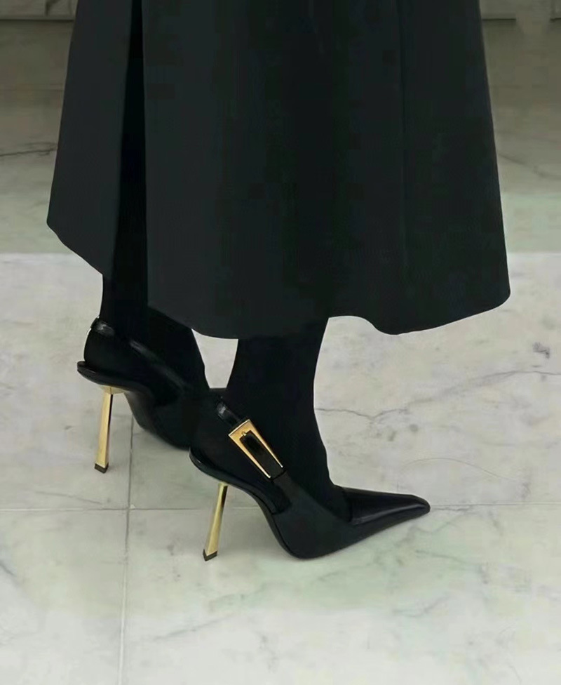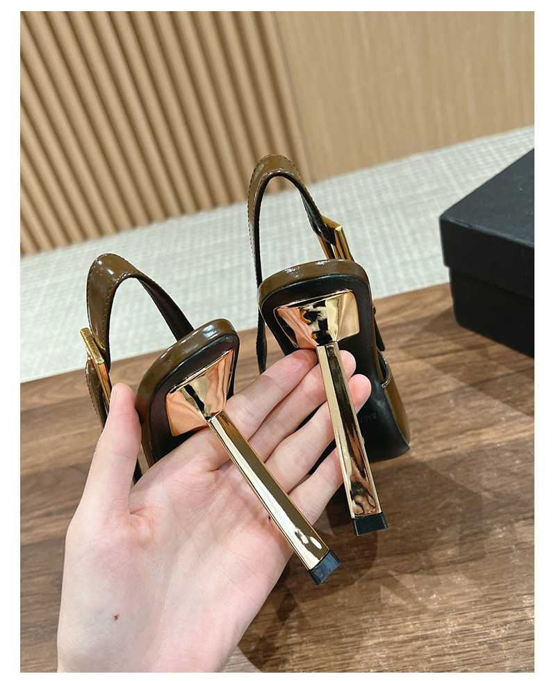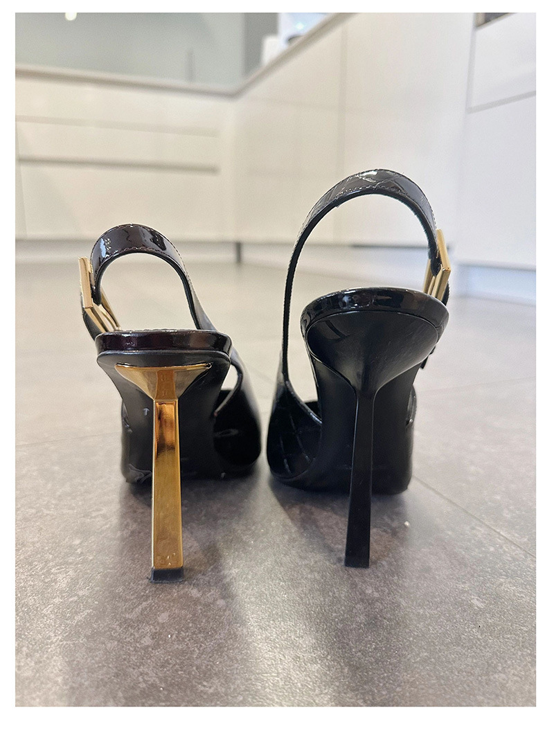 최고의 소스 ~ 양슐린 작은 금 뒤꿈치 신발 여성의 섹시한 우아한 뾰족한 빈 금속 버클 얇은 힐 바오 터우 샌들