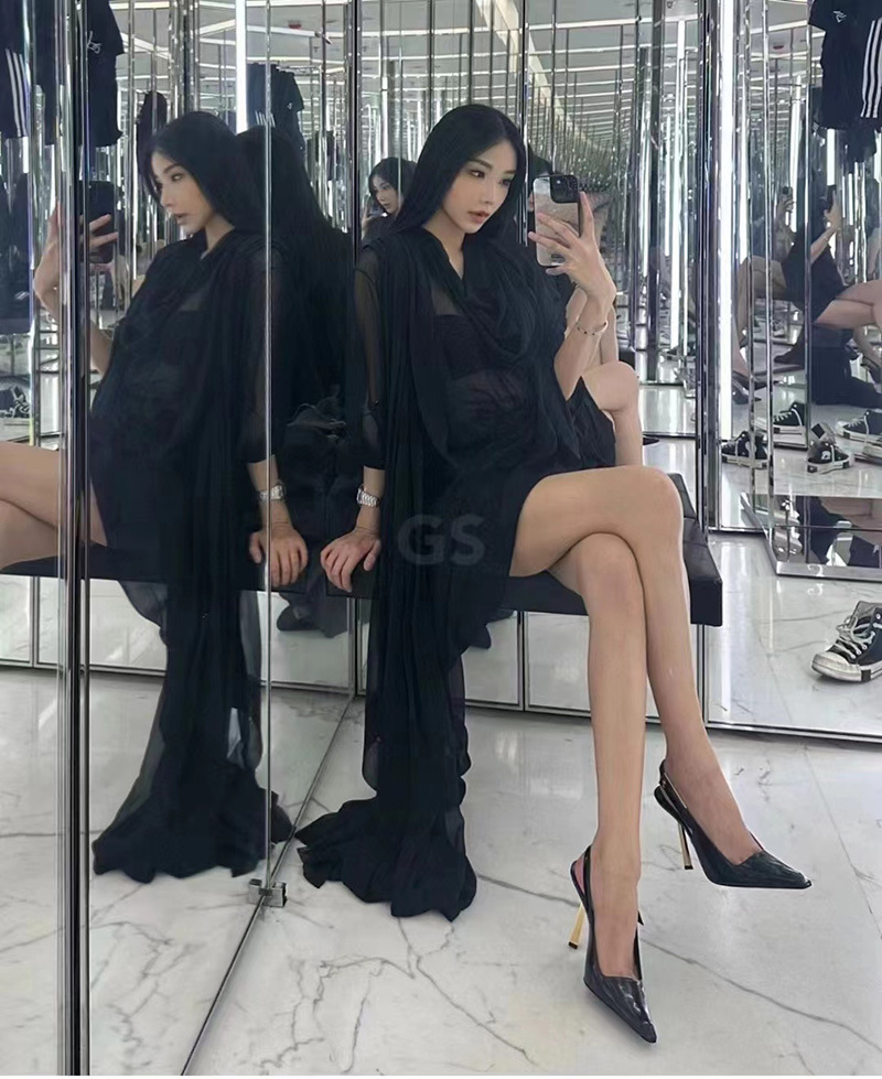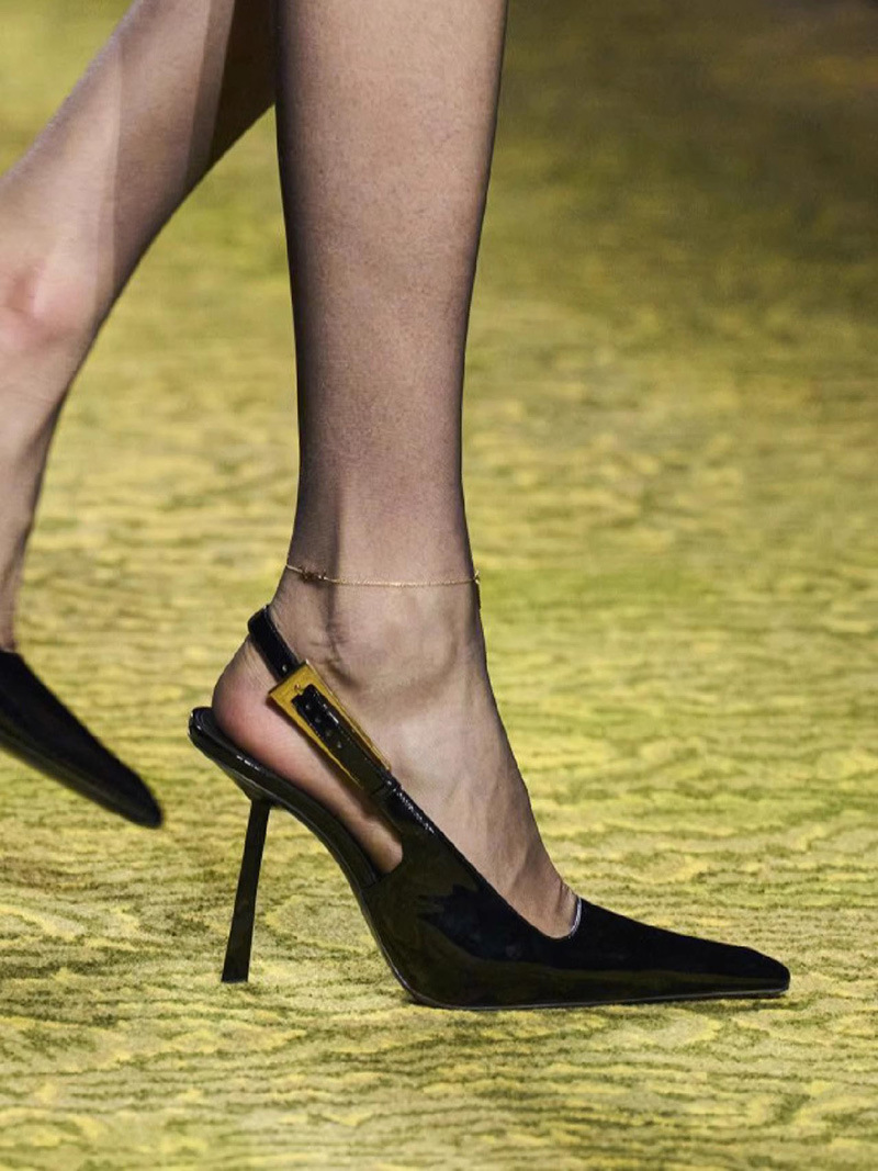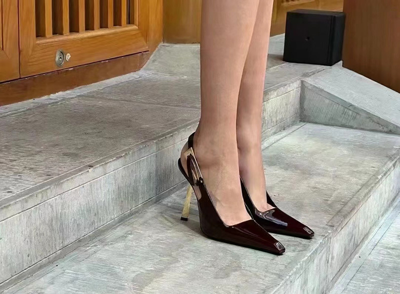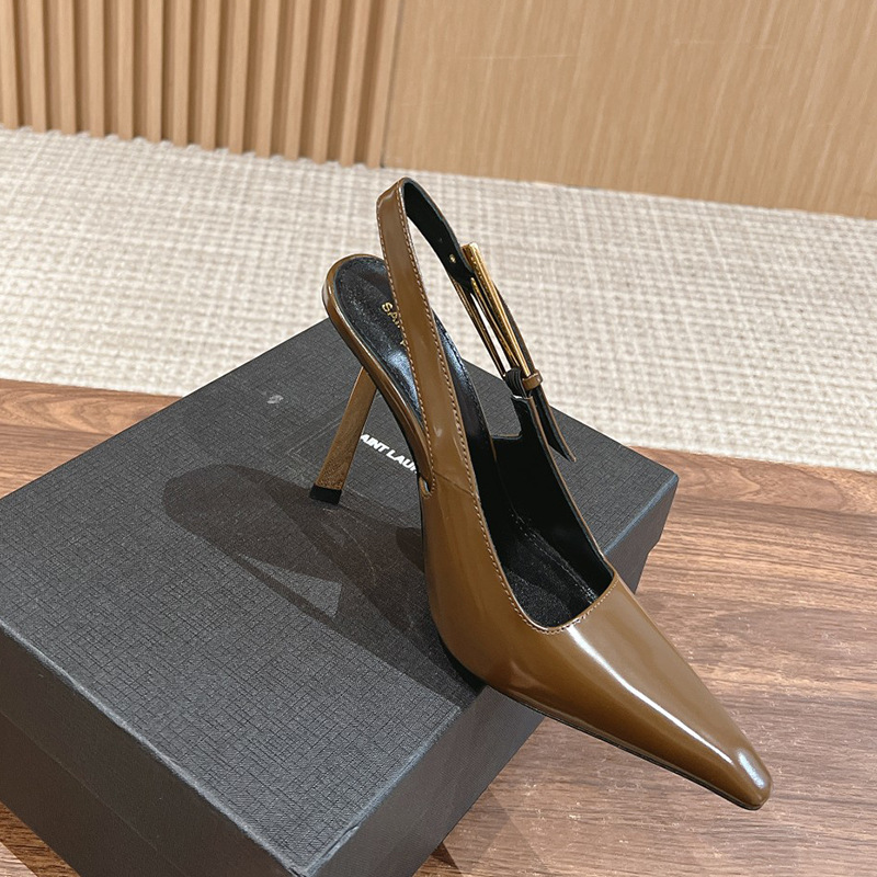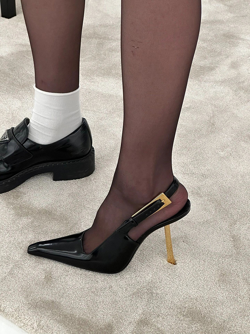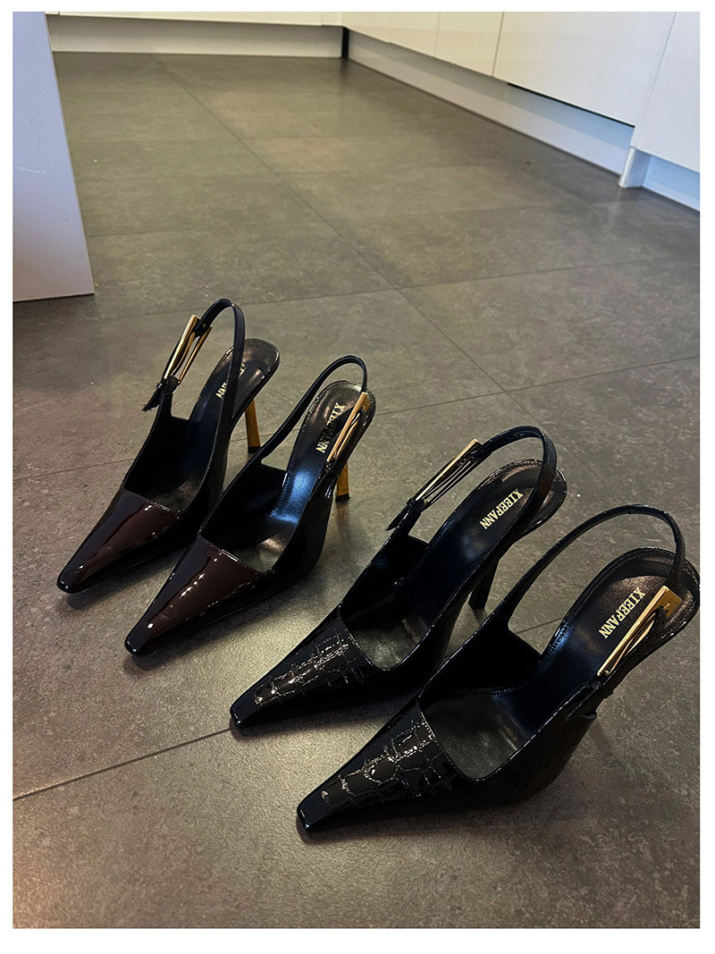 최고의 소스 ~ 양슐린 작은 금 뒤꿈치 신발 여성의 섹시한 우아한 뾰족한 빈 금속 버클 얇은 힐 바오 터우 샌들