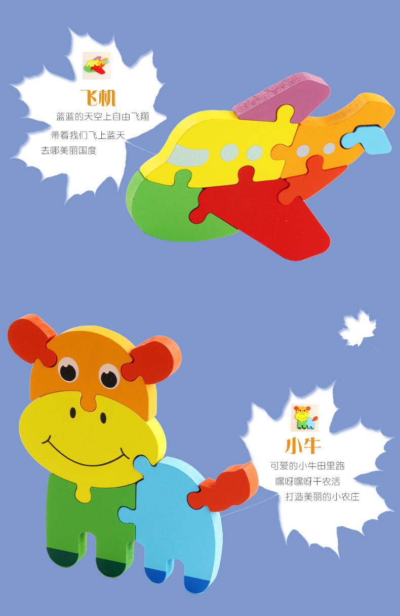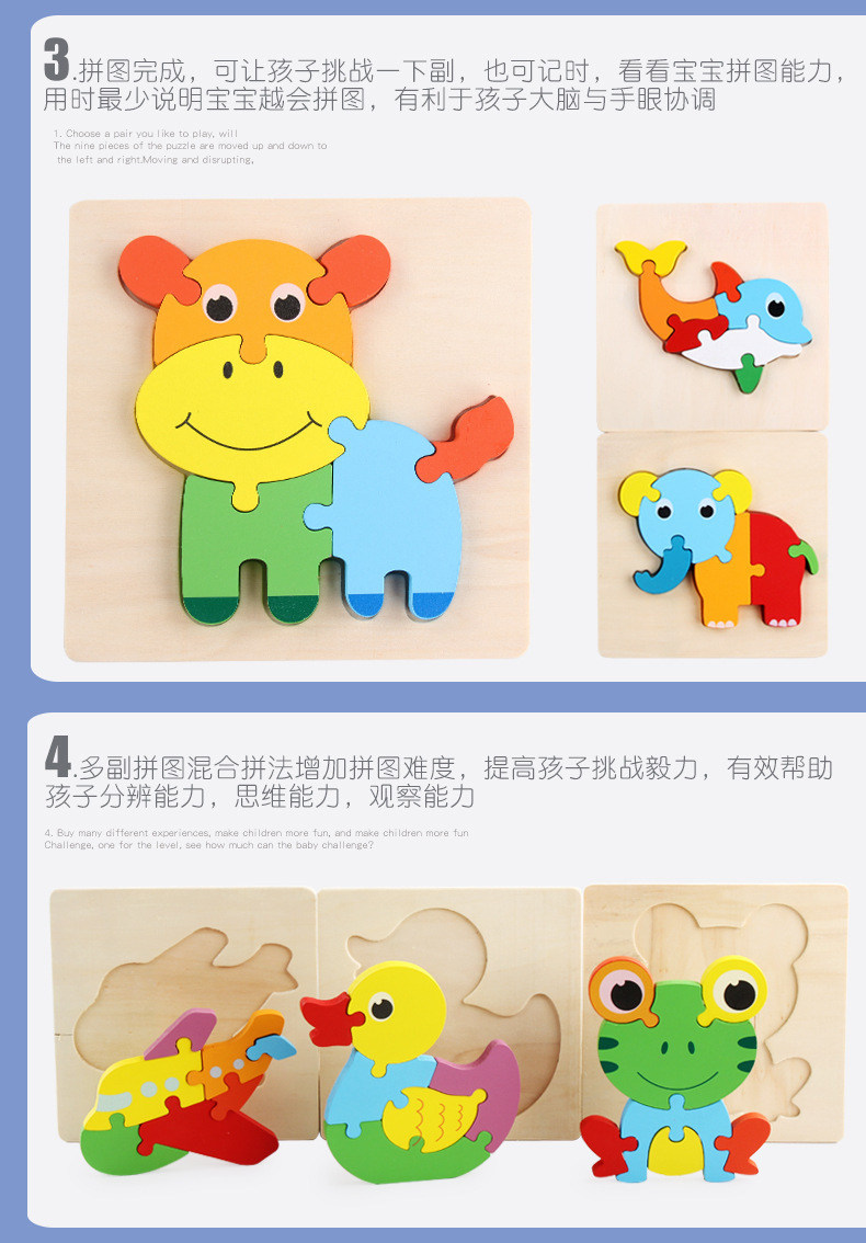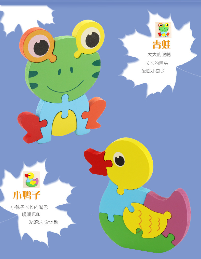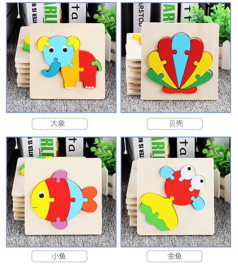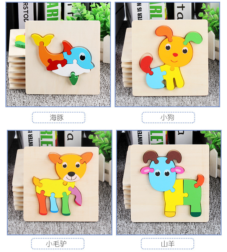 어린이용 나무 만화 동물 입체 퍼즐 유아 조기 교육 두꺼운 퍼즐 블록 장난감 제조업체 도매스토어 가기