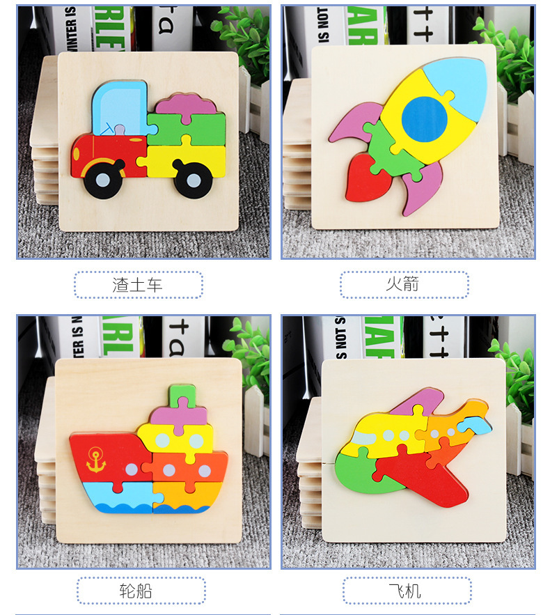 어린이용 나무 만화 동물 입체 퍼즐 유아 조기 교육 두꺼운 퍼즐 블록 장난감 제조업체 도매