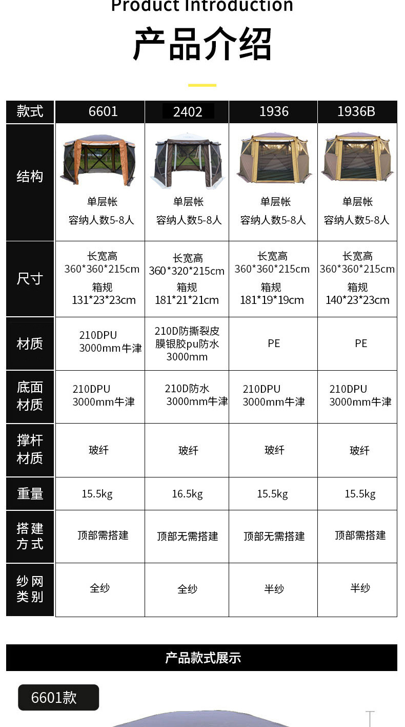 도매 육각형 자동 빠른 오프닝 캠핑 텐트 야외 접이식 텐트 몽골 가방 캠핑 장비 5-8 명스토어 가기