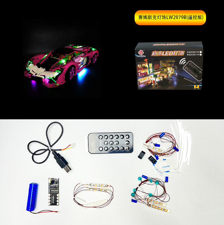 레고 K 박스 10246 람보 사이버 펑크 기술 럭셔리카 로고 원격 제어 조명과 호환되는 DIY 빌딩 블록 조명스토어 가기