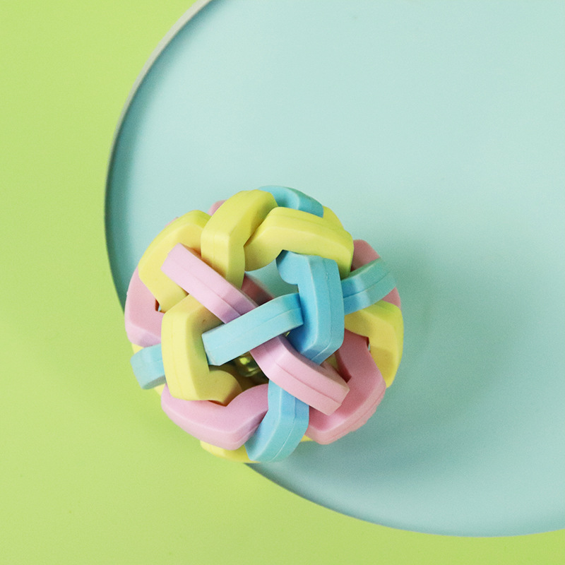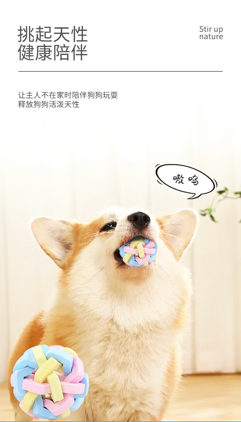 개 장난감 물린 소리 다채로운 벨 볼 애완 동물 어금니 장난감 매체 및 작은 개 자체-안녕 답답한 개 장난감 완화