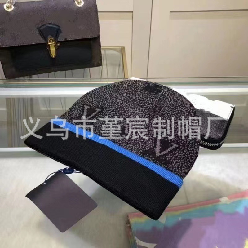 국경 간 대외 무역 가을과 겨울 L 컬링 울 모자 여성 그물 붉은 올 매치 콜드 모자 따뜻한 풀 프린트 니트 모자 남성