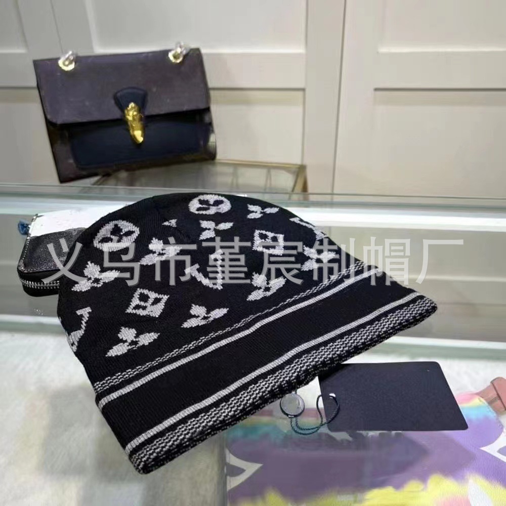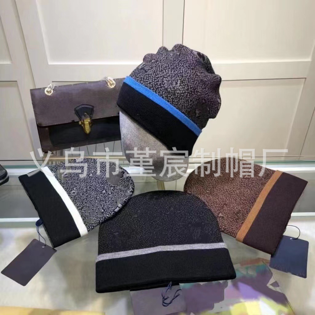 국경 간 대외 무역 가을과 겨울 L 컬링 울 모자 여성 그물 붉은 올 매치 콜드 모자 따뜻한 풀 프린트 니트 모자 남성스토어 가기