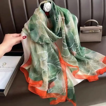 Yourou 원사 프린트 스카프 여성용 올 매치 패셔너블 오버 사이즈 비치 타월 롱 숄 스카프 듀얼 사용 서양식 스카프스토어 가기