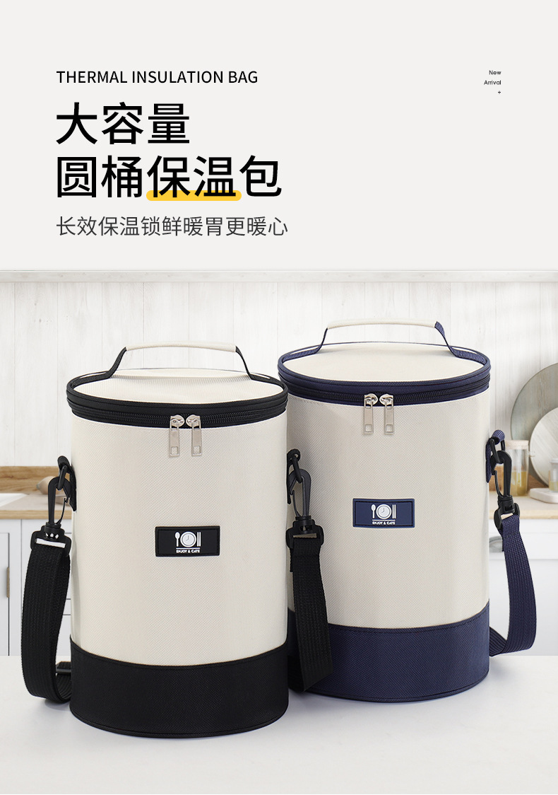 새로운 대용량 점심 가방 알루미늄 호일 절연 도시락 가방 라운드 버킷 백 크로스 바디 스트랩과 쌀 가방 대외 무역 폭발스토어 가기