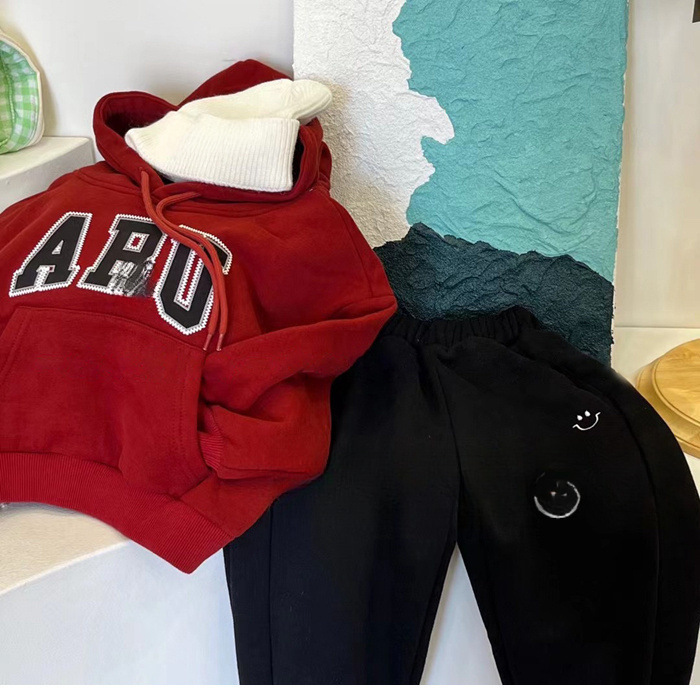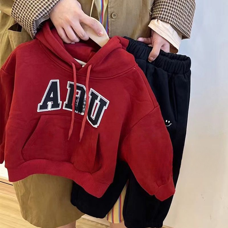 가을과 겨울 후드 레드 레터 인쇄 유행 두꺼운 스웨터 올매치 느슨한 트렌디 탑 소년 소녀스토어 가기