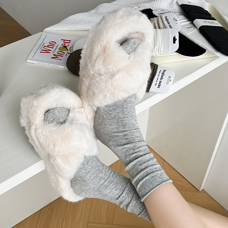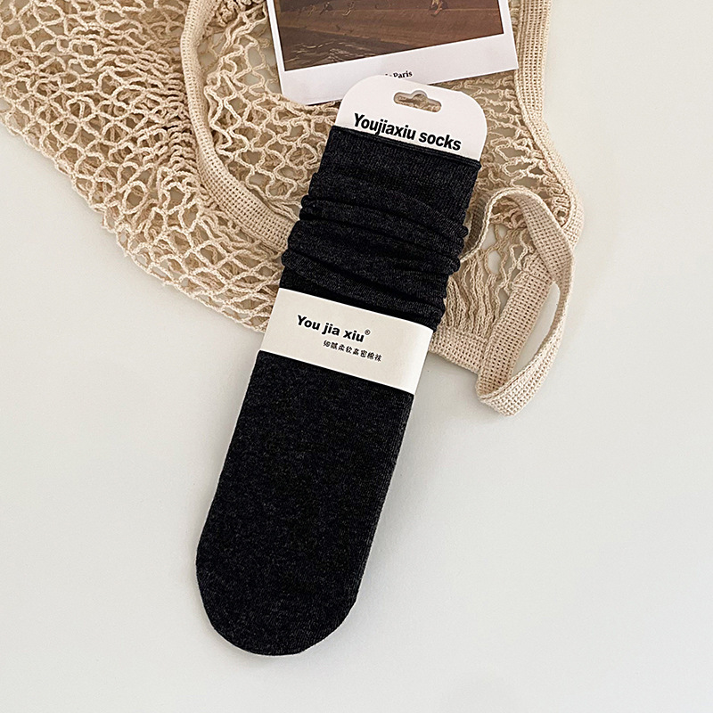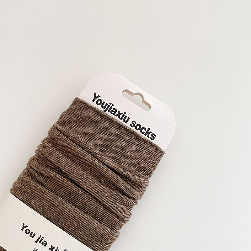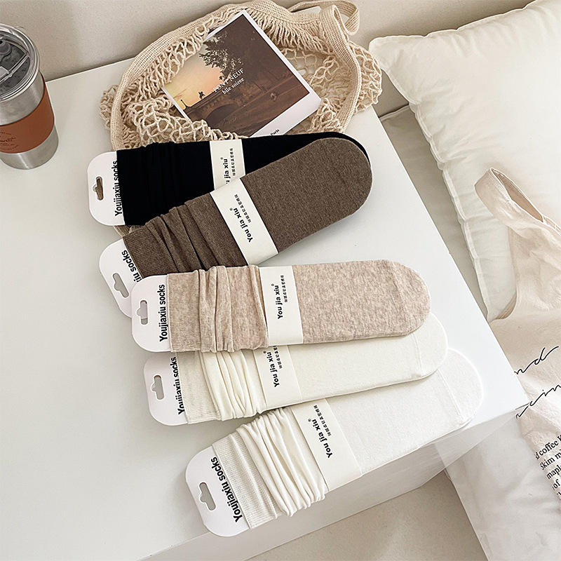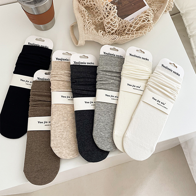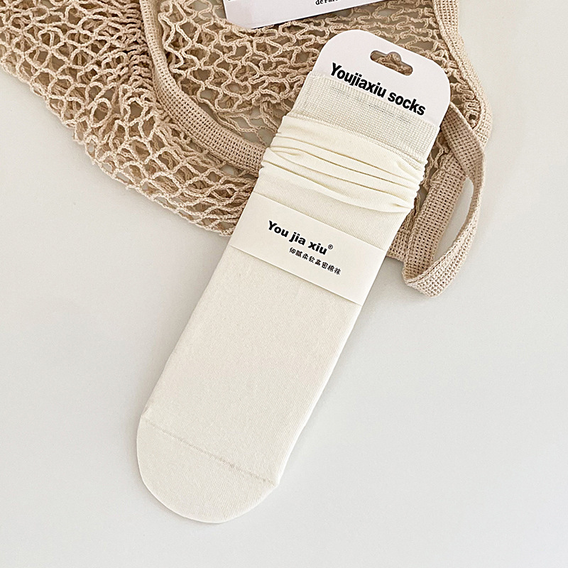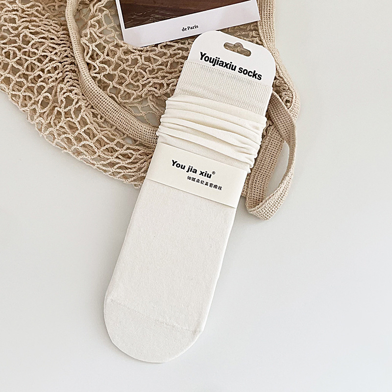 파일 양말 여성 일본식 간단한 단색 올 매치 중간 종아리 길이 양말, 봄과 가을 겉옷 인터넷 유명 인사 스타일 유백색 스타킹스토어 가기