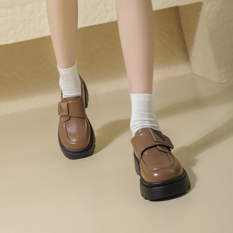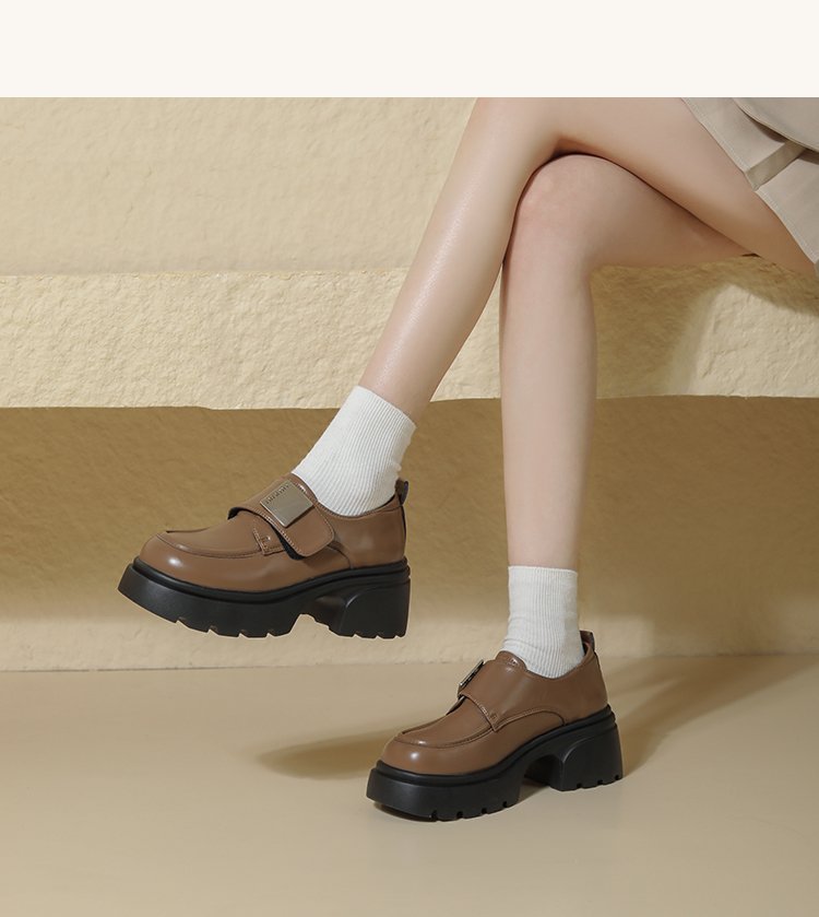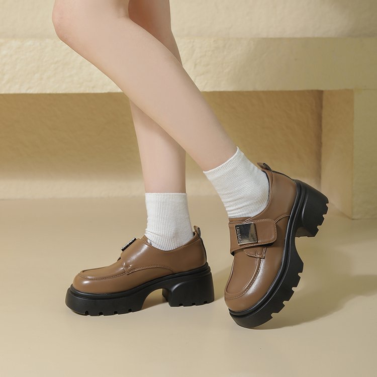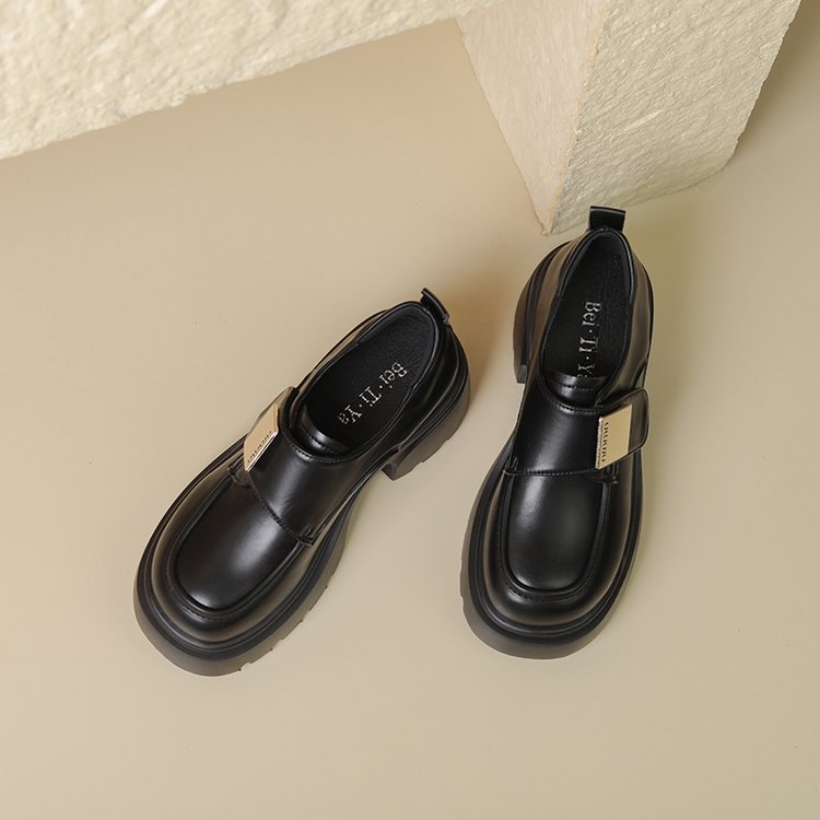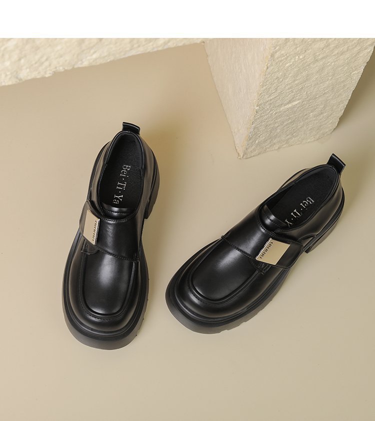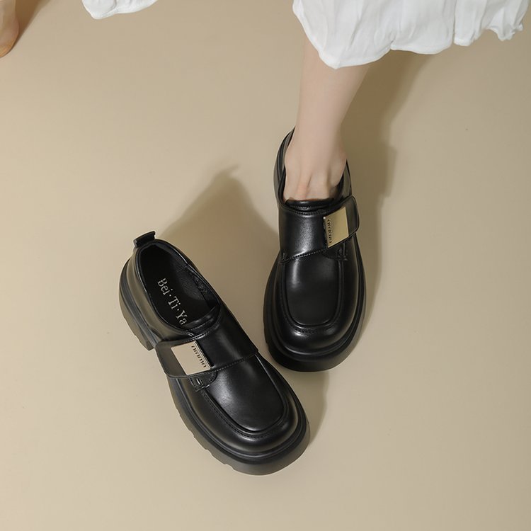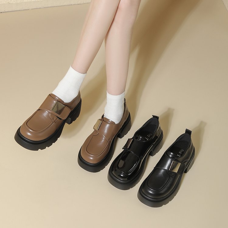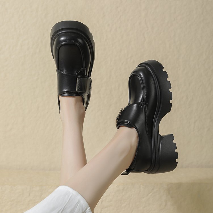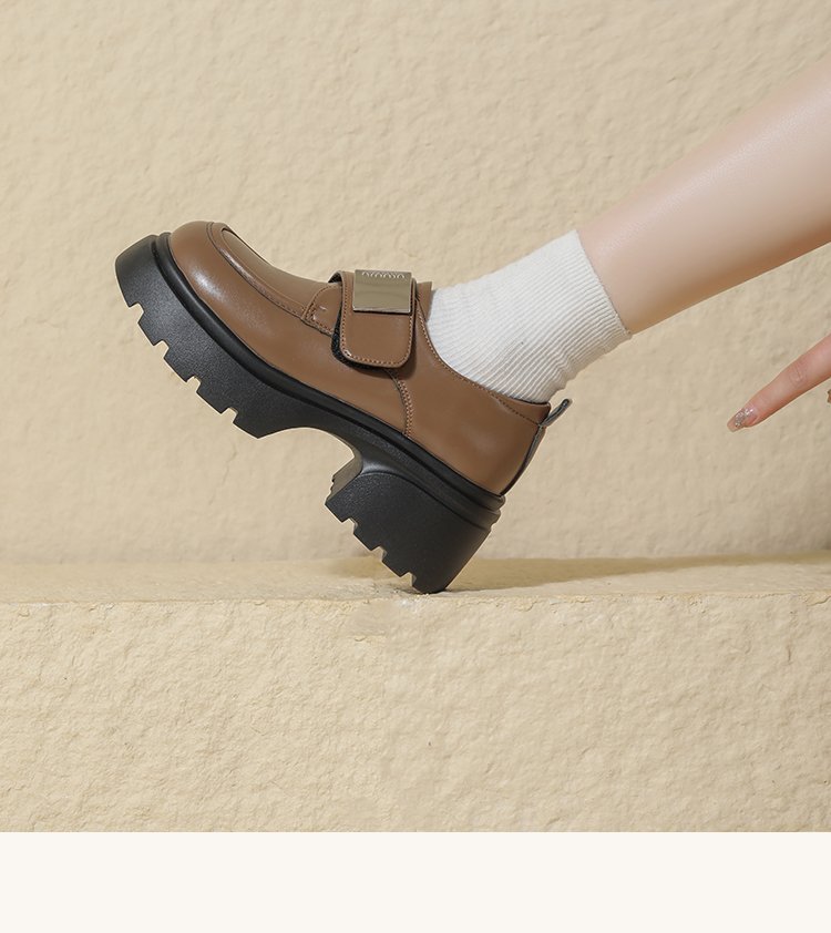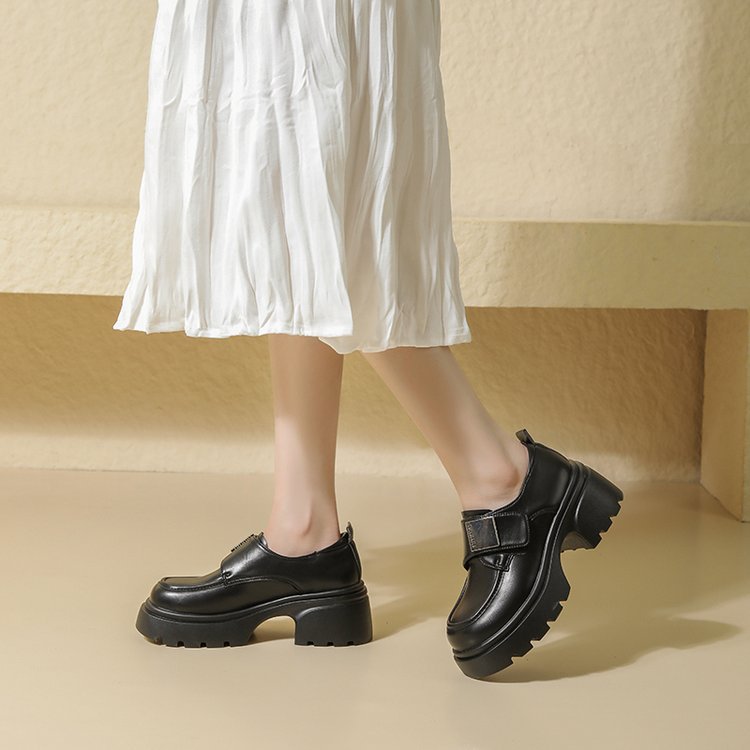 여성을위한 진짜 부드러운 가죽 가죽 신발 2024 봄 새로운 로퍼 영국 스타일의 작은 두꺼운 바닥 올 매치 높이 증가 신발스토어 가기