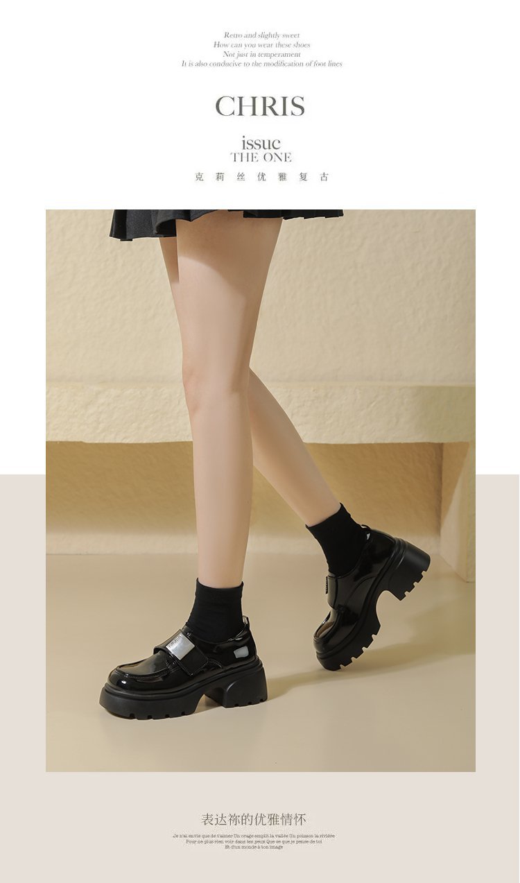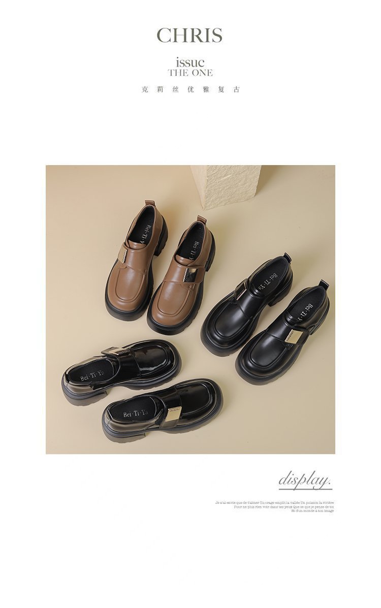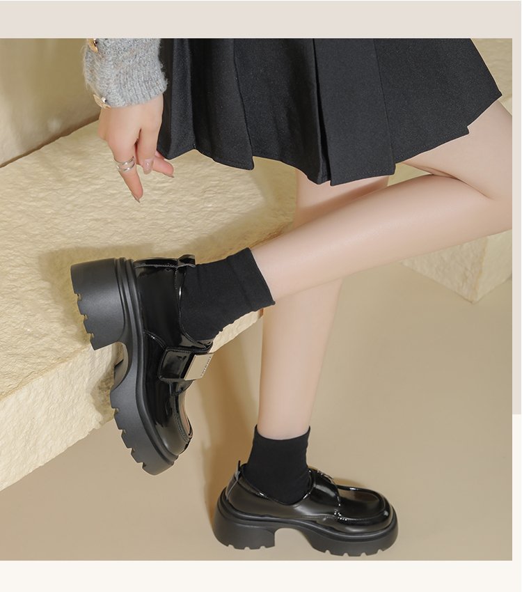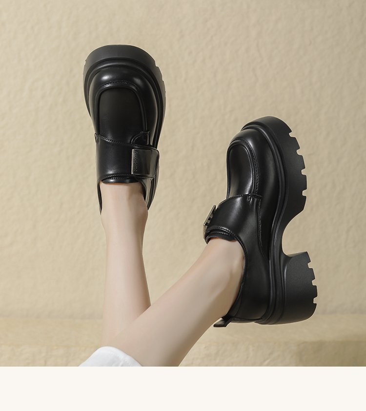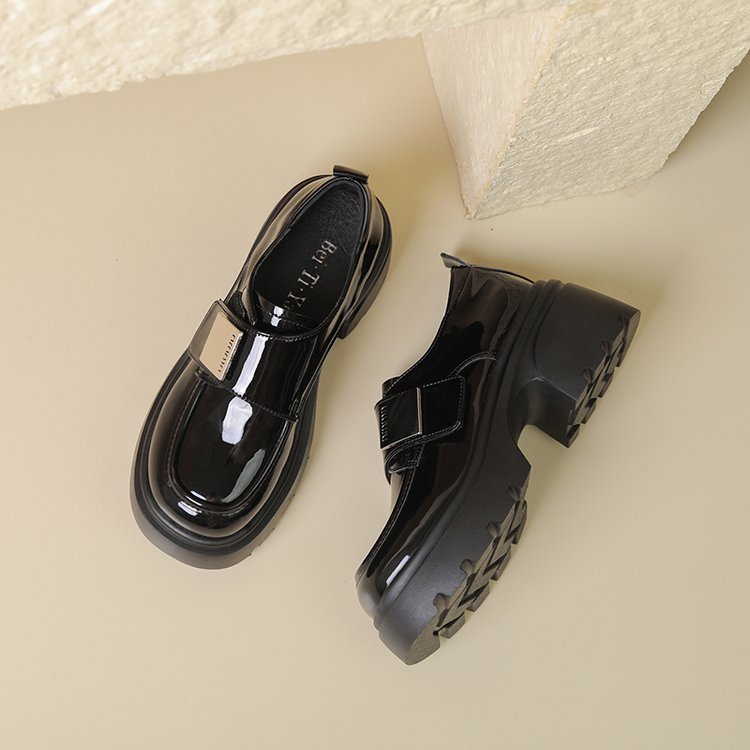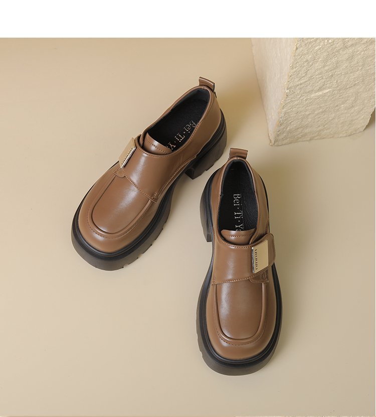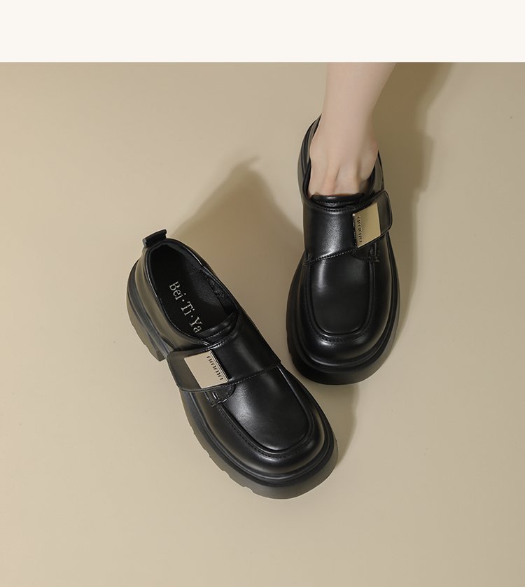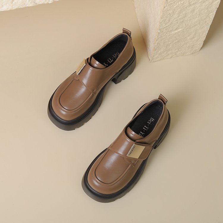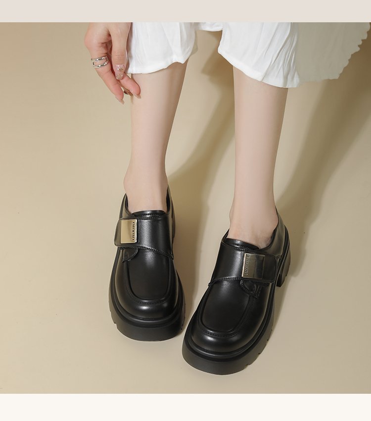 여성을위한 진짜 부드러운 가죽 가죽 신발 2024 봄 새로운 로퍼 영국 스타일의 작은 두꺼운 바닥 올 매치 높이 증가 신발스토어 가기