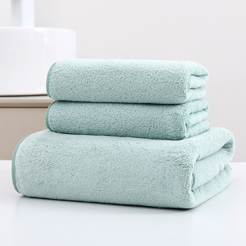 산호 양털 수건 목욕 타월이 두껍게 빠른 건조 3 피스 세트는 로고면 큰 목욕 타월 얼굴 수건 비치 타월을 추가 할 수 있습니다스토어 가기