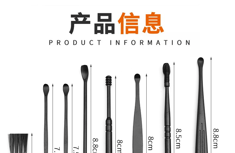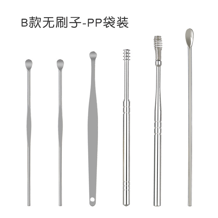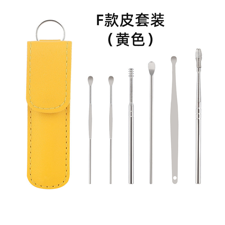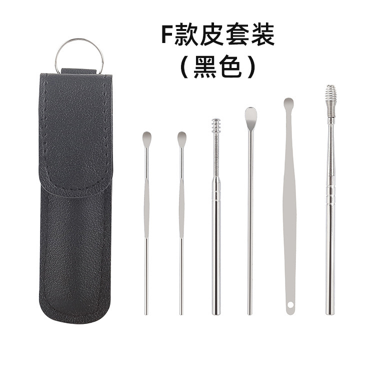 귀 선택 6 조각 세트 가정용 귀 선택 귀 청소 도구 8 조각 세트 지갑 휴대용 스테인레스 스틸 귀 선택스토어 가기