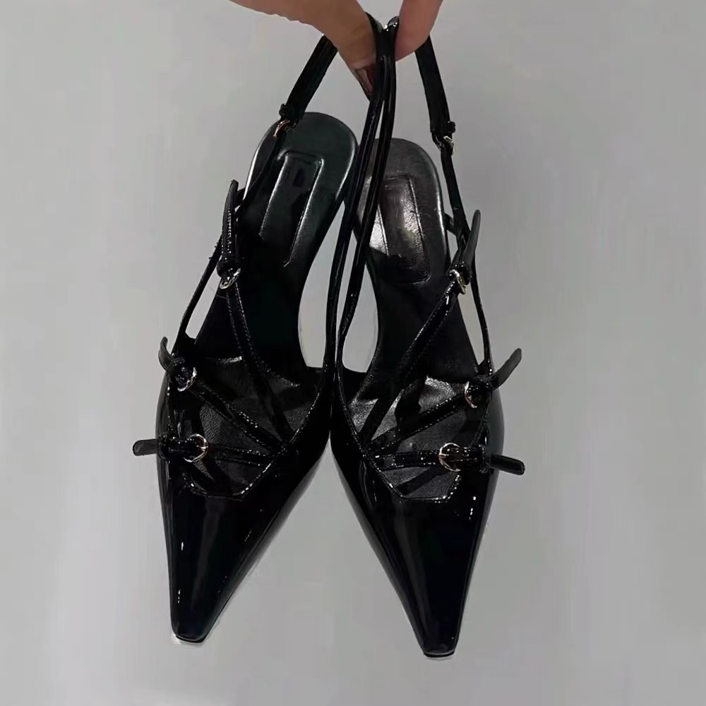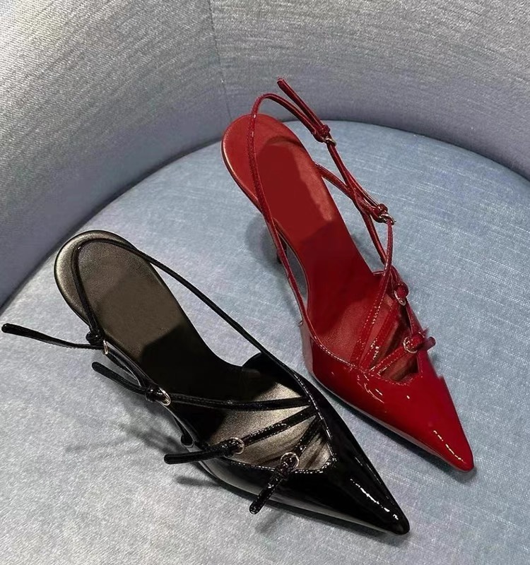 프랑스 하이힐 여성 2024 새로운 우아한 하이 엔드 특허 가죽 신발 섹시한 작은 광장 발가락 얇은 발가락 샌들스토어 가기