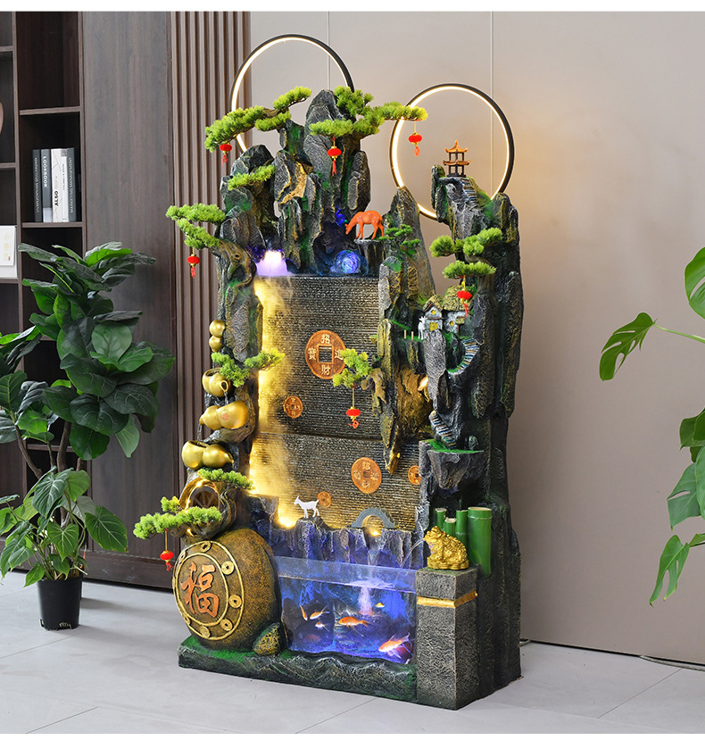 큰 바위 흐르는 물 장식 분수 물고기 탱크 중국 거실 사무실 물 커튼 벽 스크린 순환 물 풍경 장식스토어 가기
