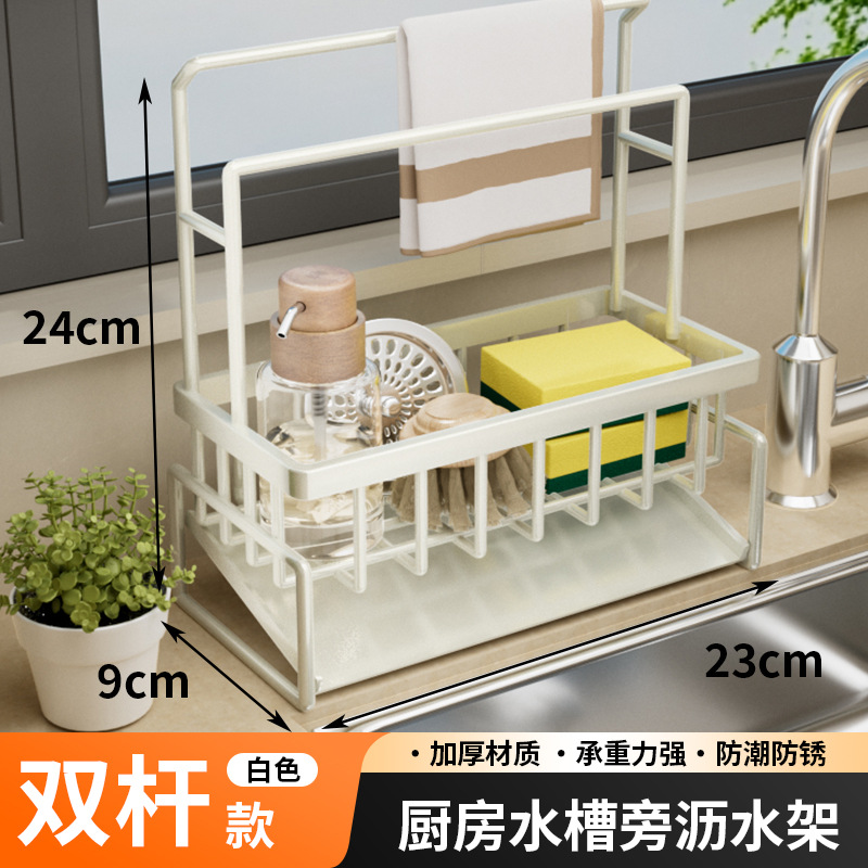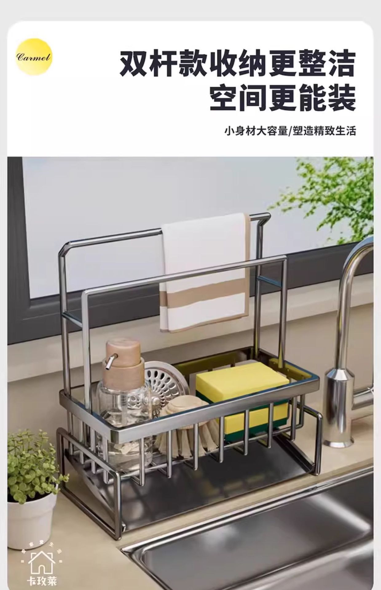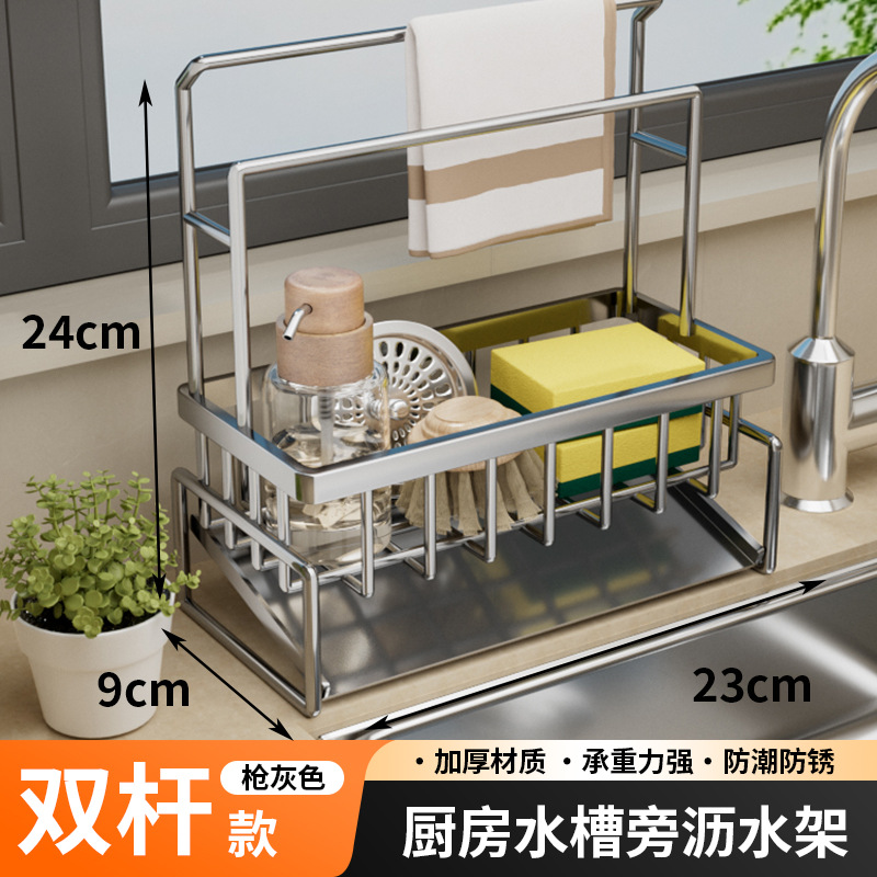 • 신규 업그레이드 [스테인리스 스틸] 물빠짐 선반 + 높이 조절 이중 행거