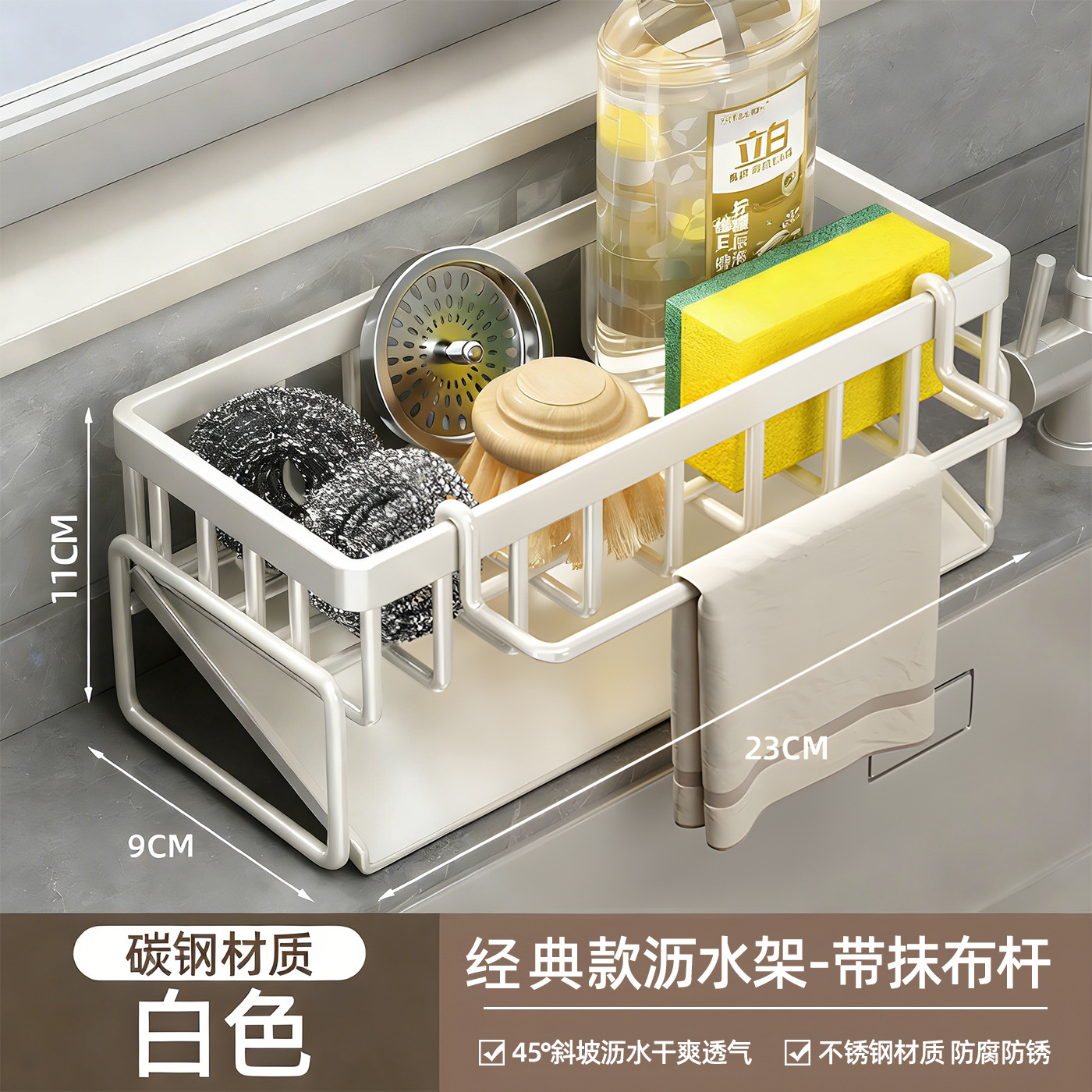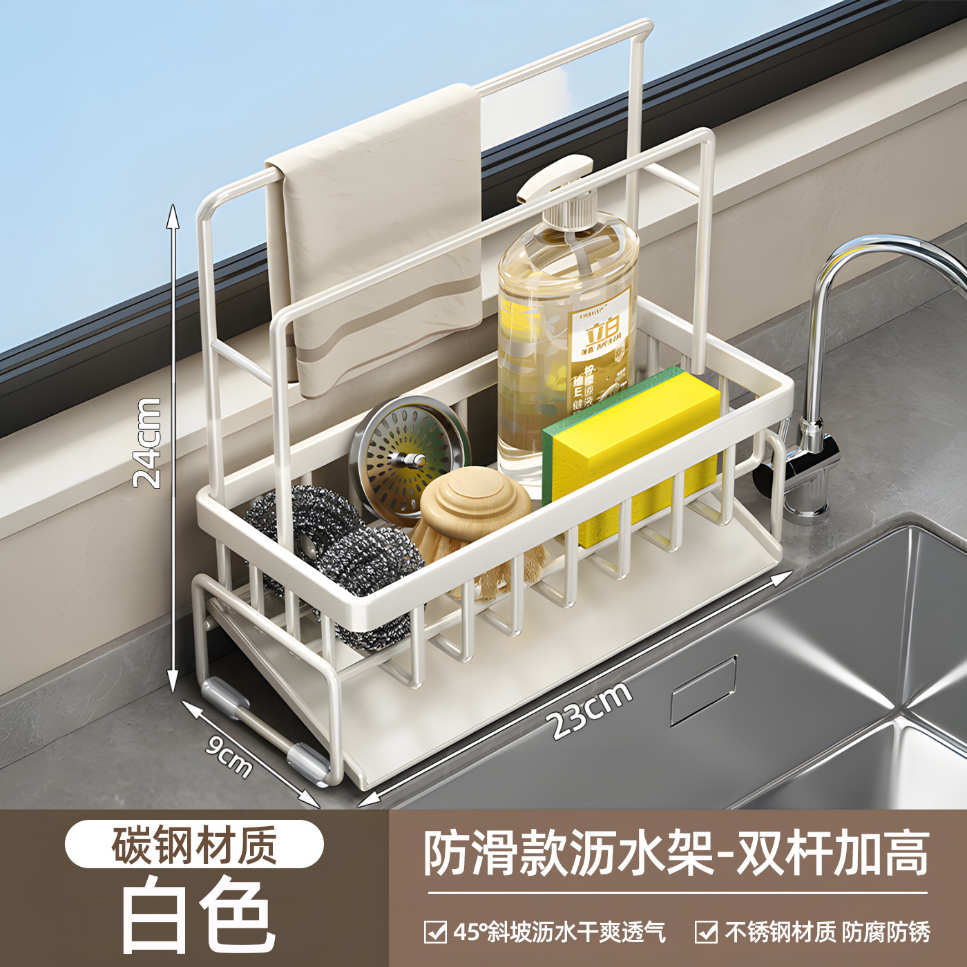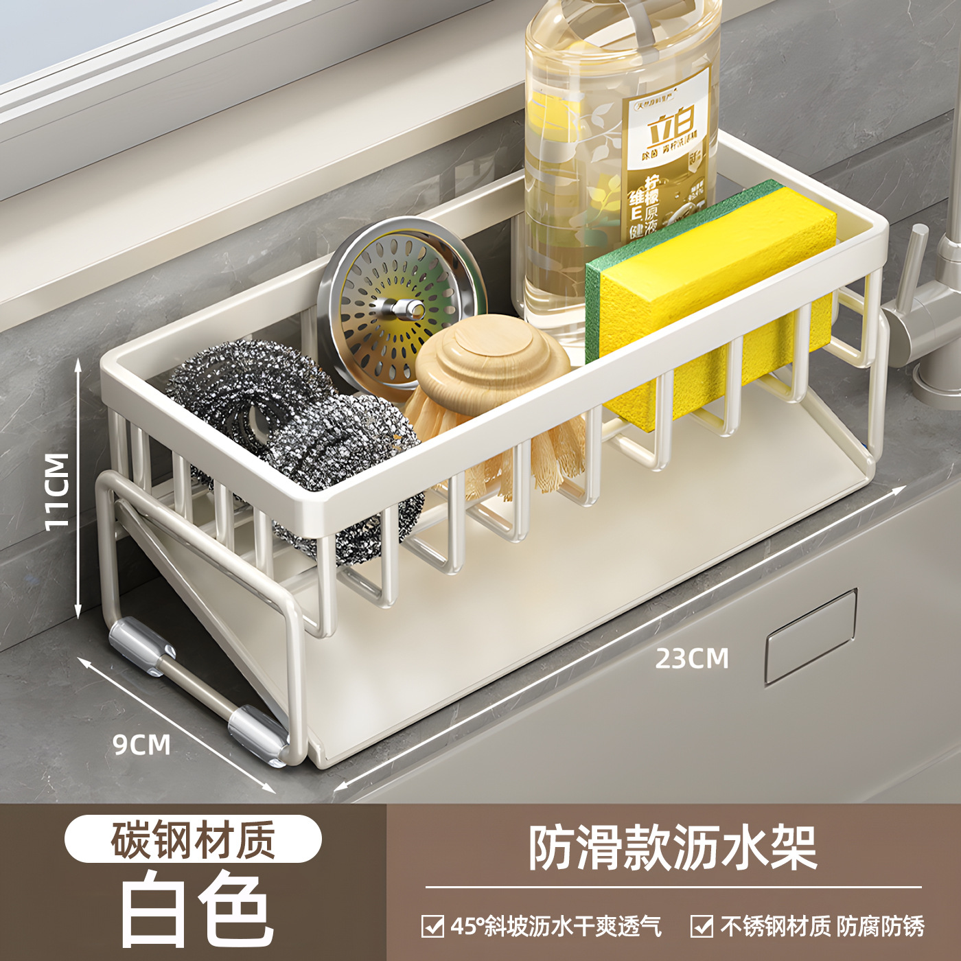 • [업그레이드된 탄소강 모델] 화이트★경사형 배수 바구니 + 미끄럼 방지 커버