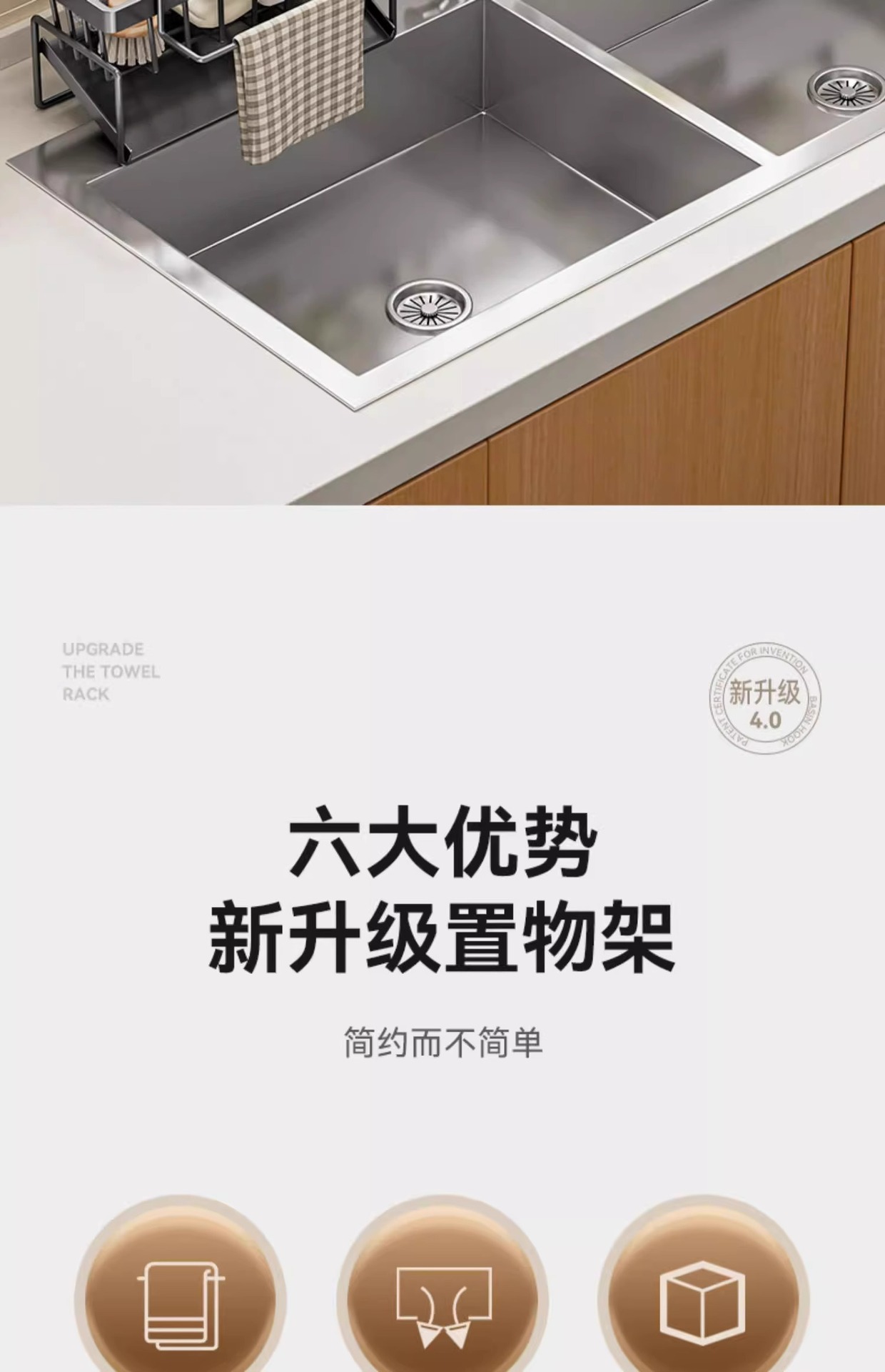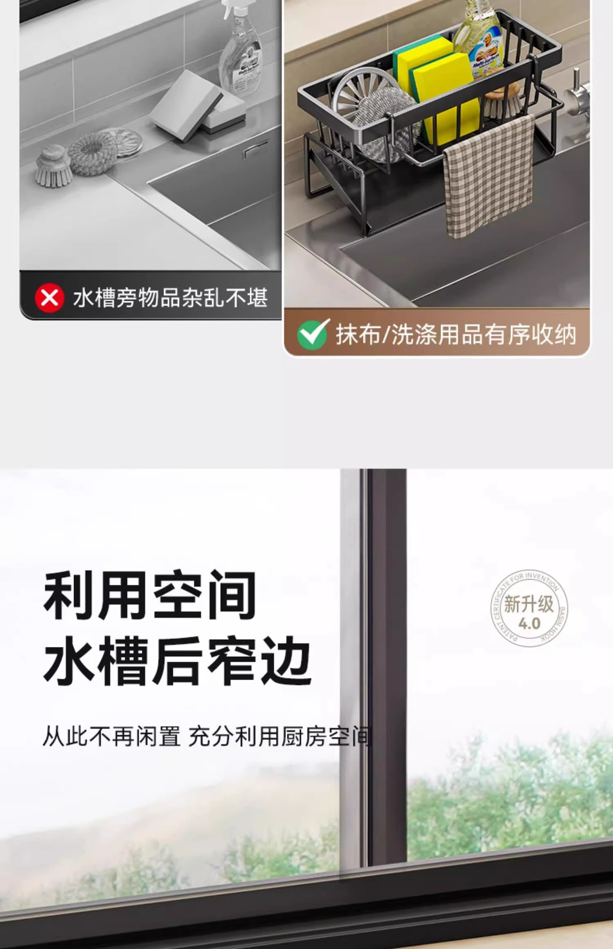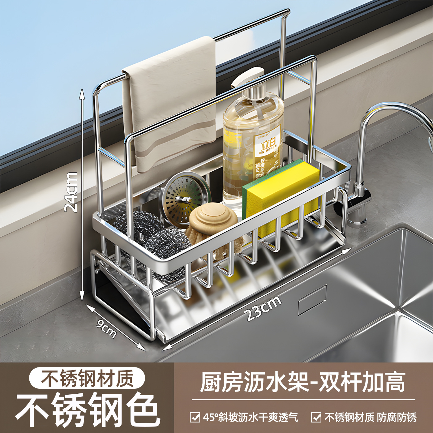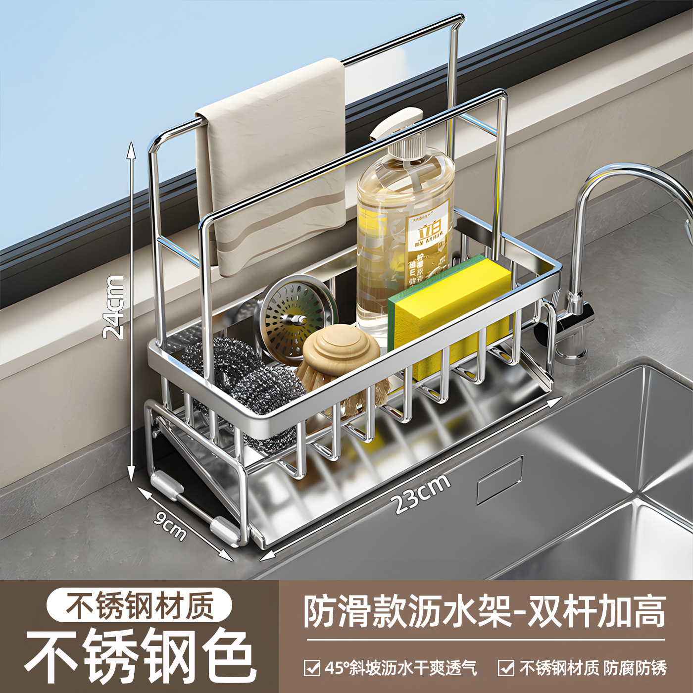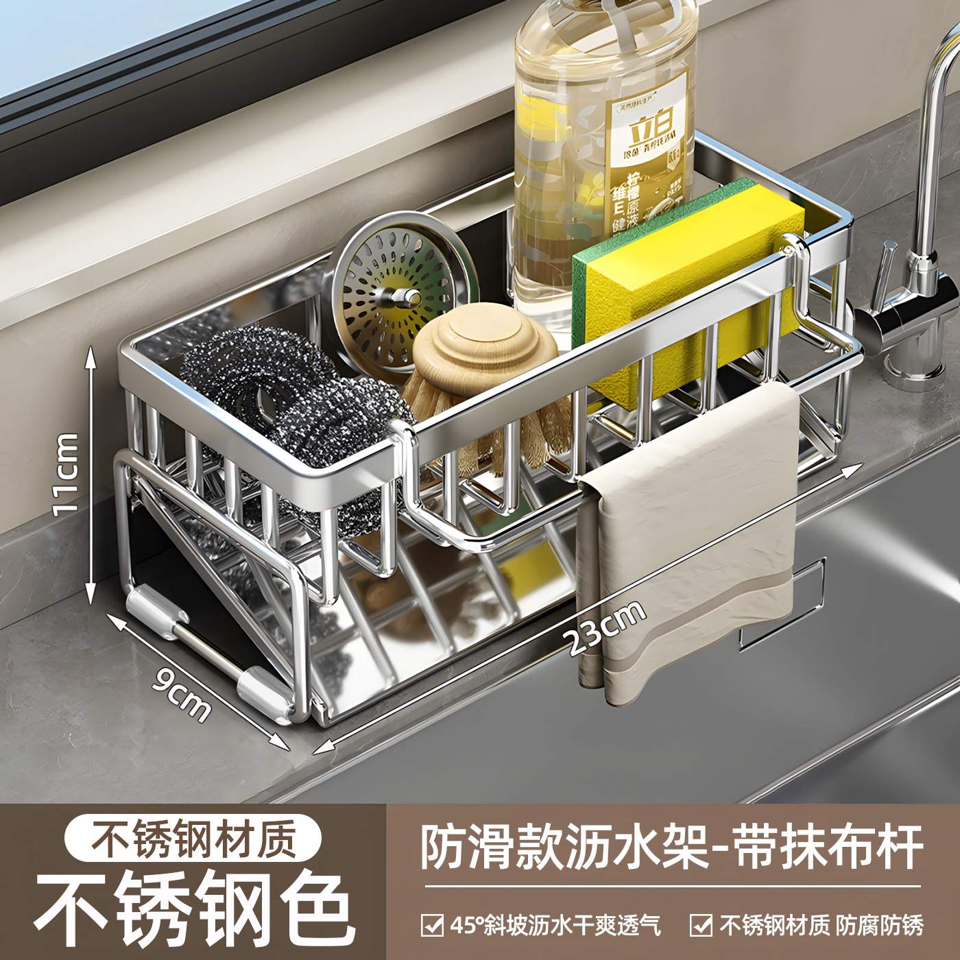 • 신규 업그레이드 [스테인리스 미끄럼 방지] 물기 제거 선반 + 행주 걸이 + 미끄럼 방지 커버