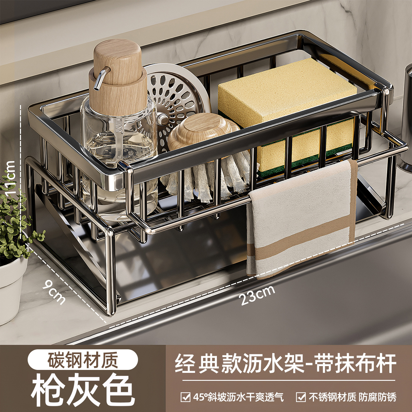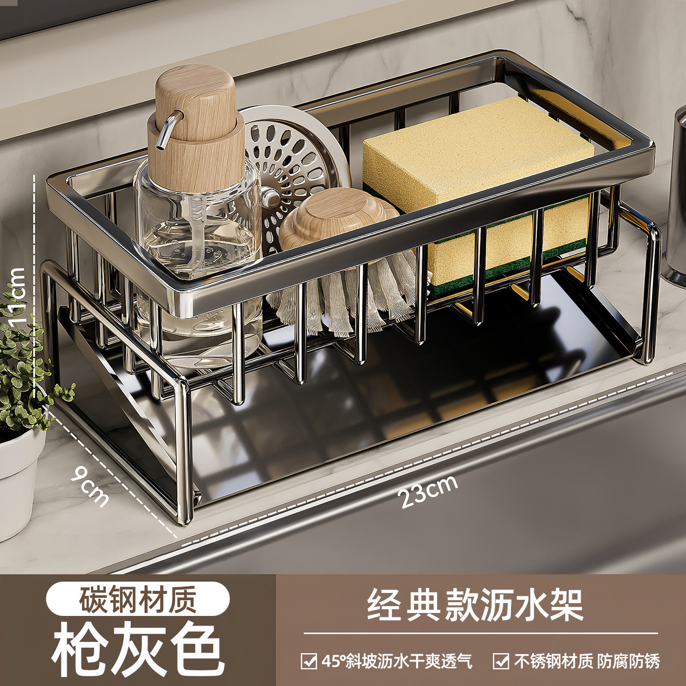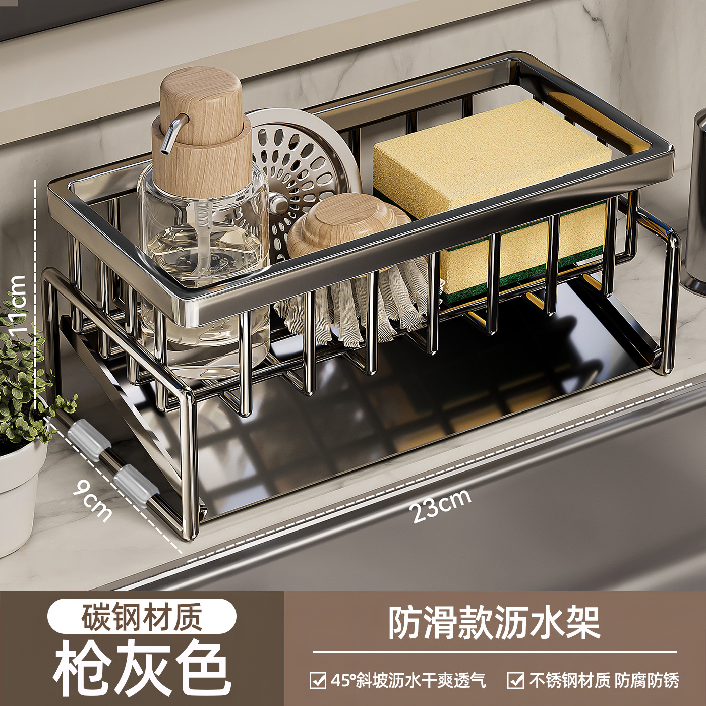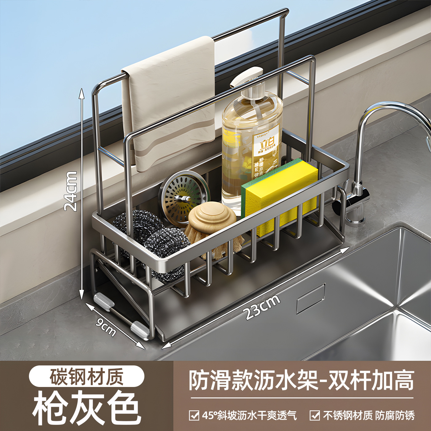 • [업그레이드된 탄소강 모델] 건 그레이★경사형 배수 바구니 + 미끄럼 방지 커버