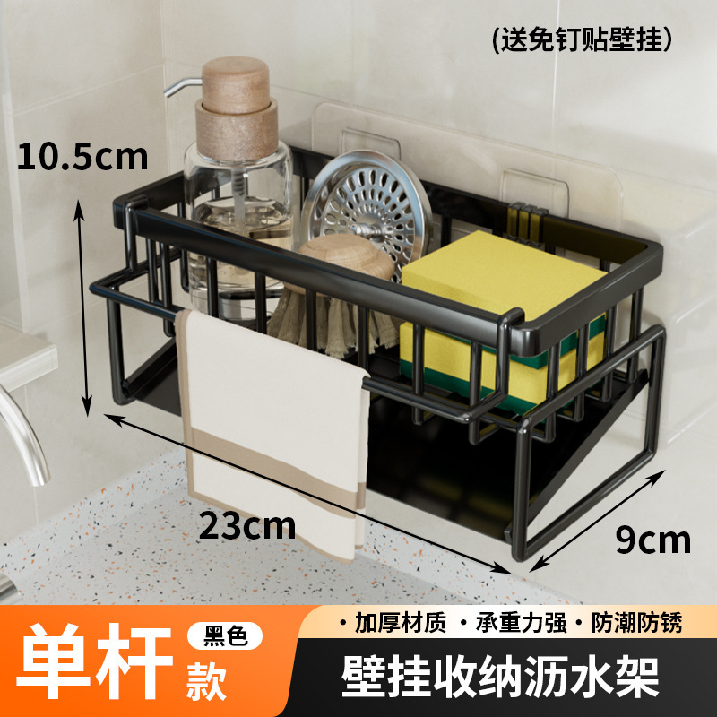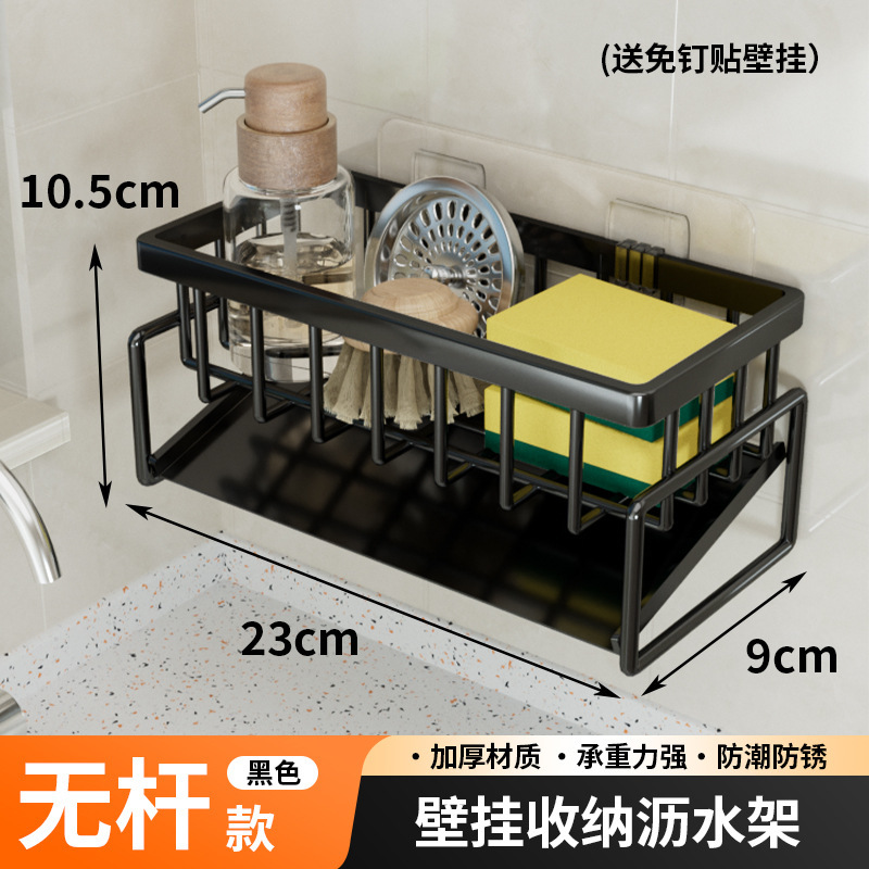 • 【접착식 벽걸이형 탄소강 모델】 블랙★경사형 배수 바구니