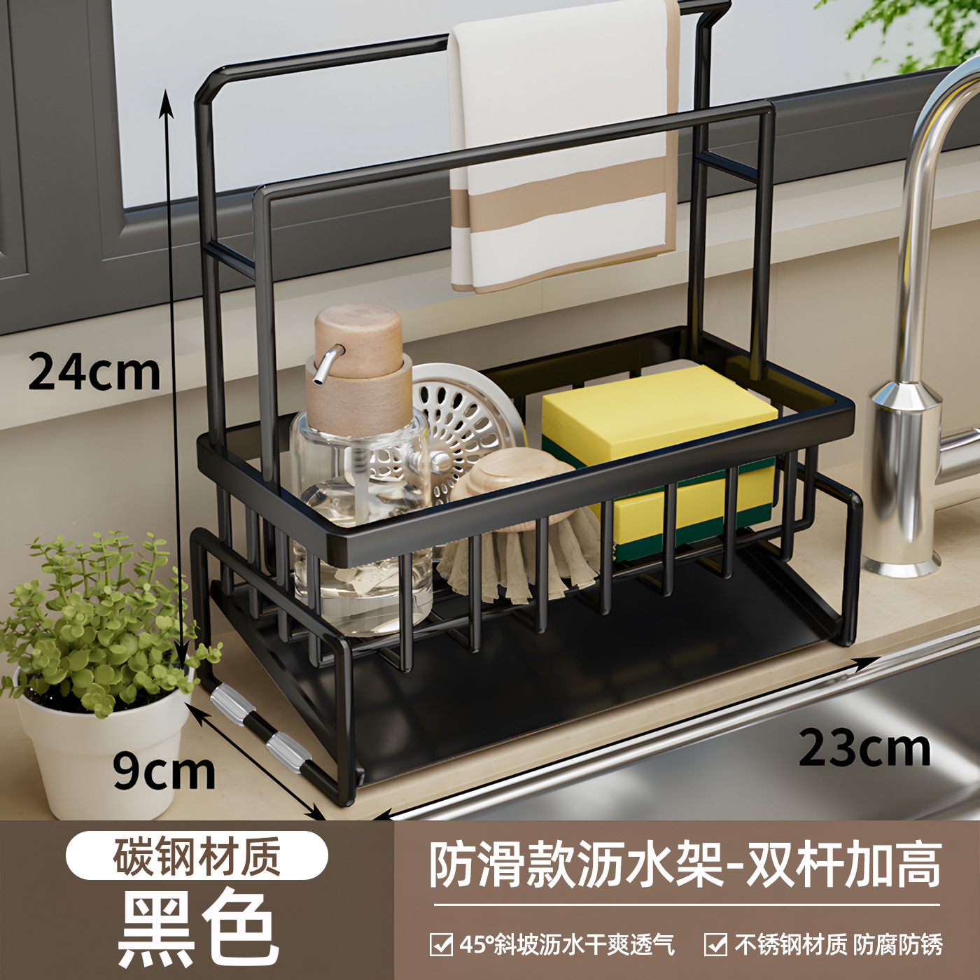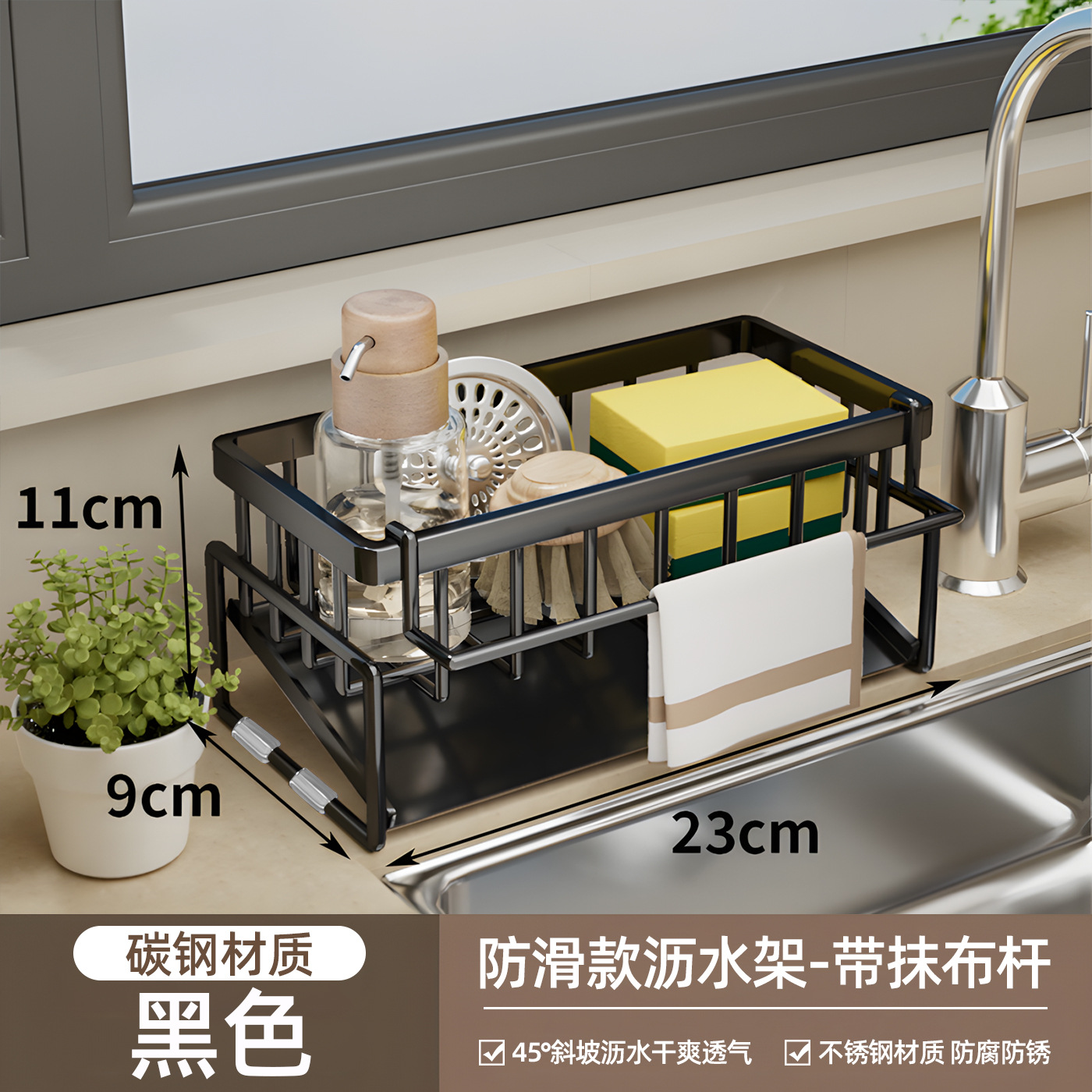• [업그레이드된 탄소강 모델] 블랙★경사형 배수 바구니 + 미끄럼 방지 커버
