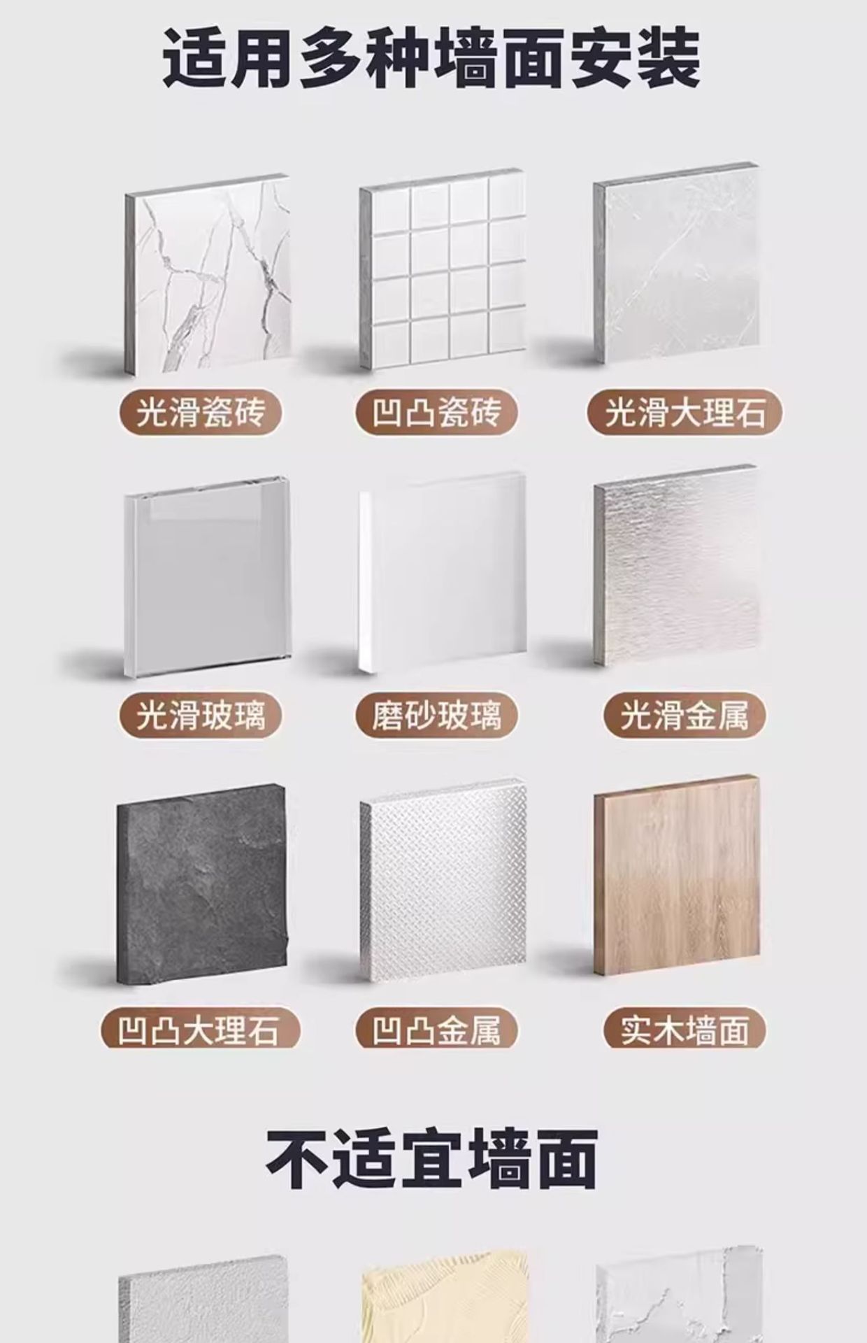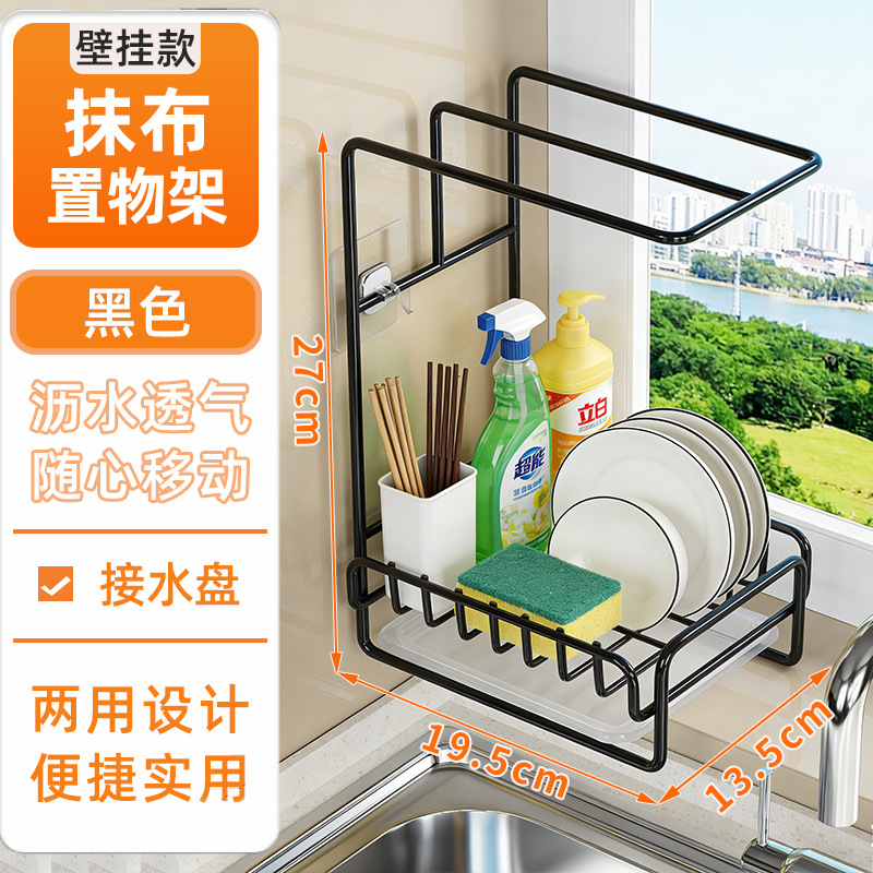 • 【접착식 벽걸이형 탄소강 모델】 블랙★경사형 배수 바구니 + 걸레 막대