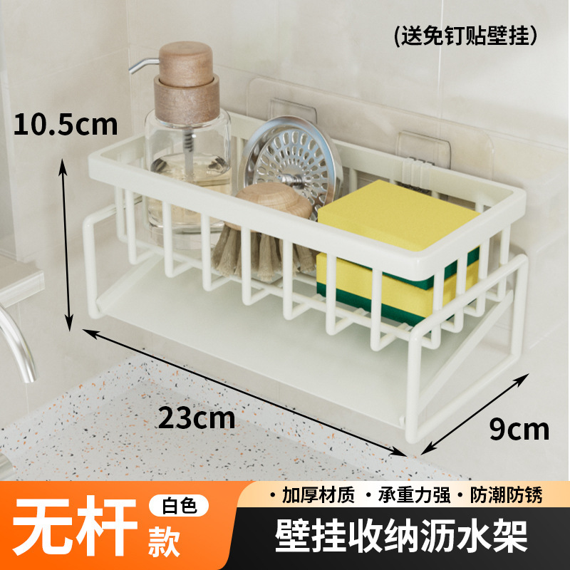 • 【접착식 벽걸이형 탄소강 모델】 화이트★경사형 배수 바구니