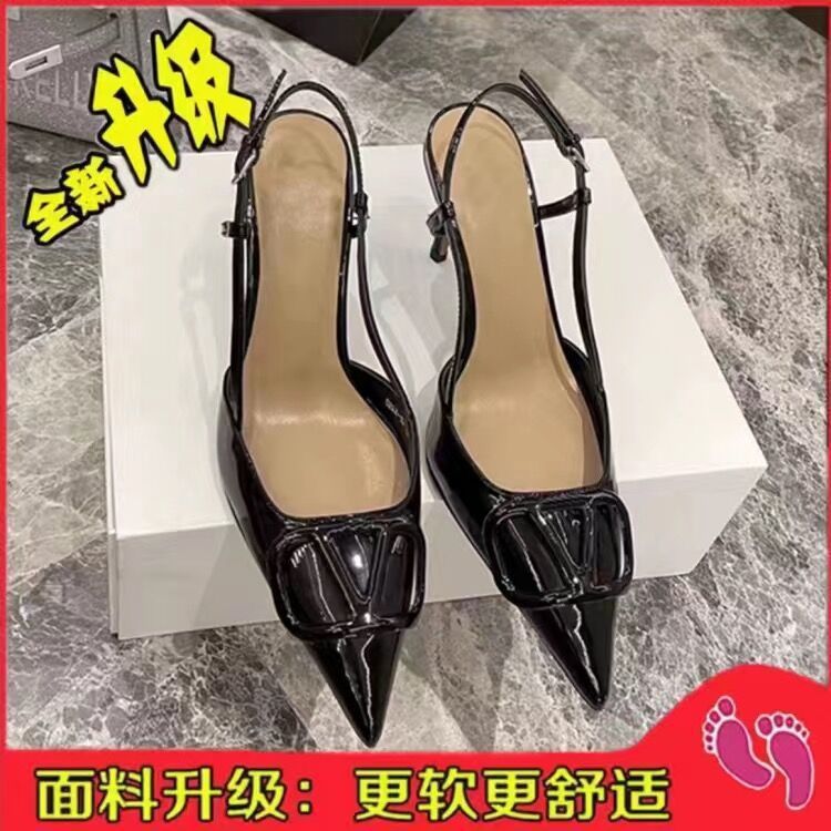 페어리 스타일 블랙 하이힐 2024 여름 새로운 닫힌 발가락 청키 힐 올 매치 뾰족한 섹시한 작업 신발 빈 싱글 레이어 신발스토어 가기