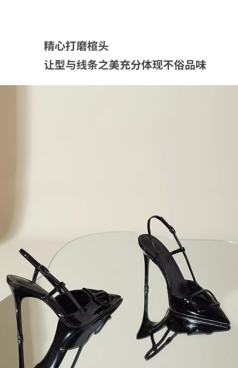 페어리 스타일 블랙 하이힐 2024 여름 새로운 닫힌 발가락 청키 힐 올 매치 뾰족한 섹시한 작업 신발 빈 싱글 레이어 신발